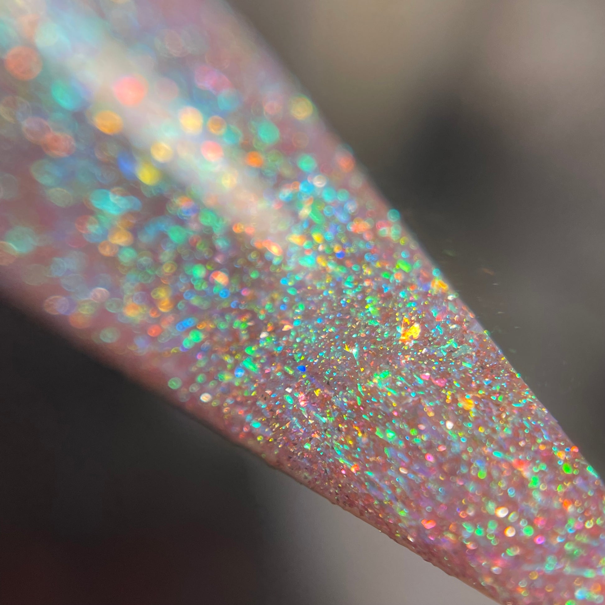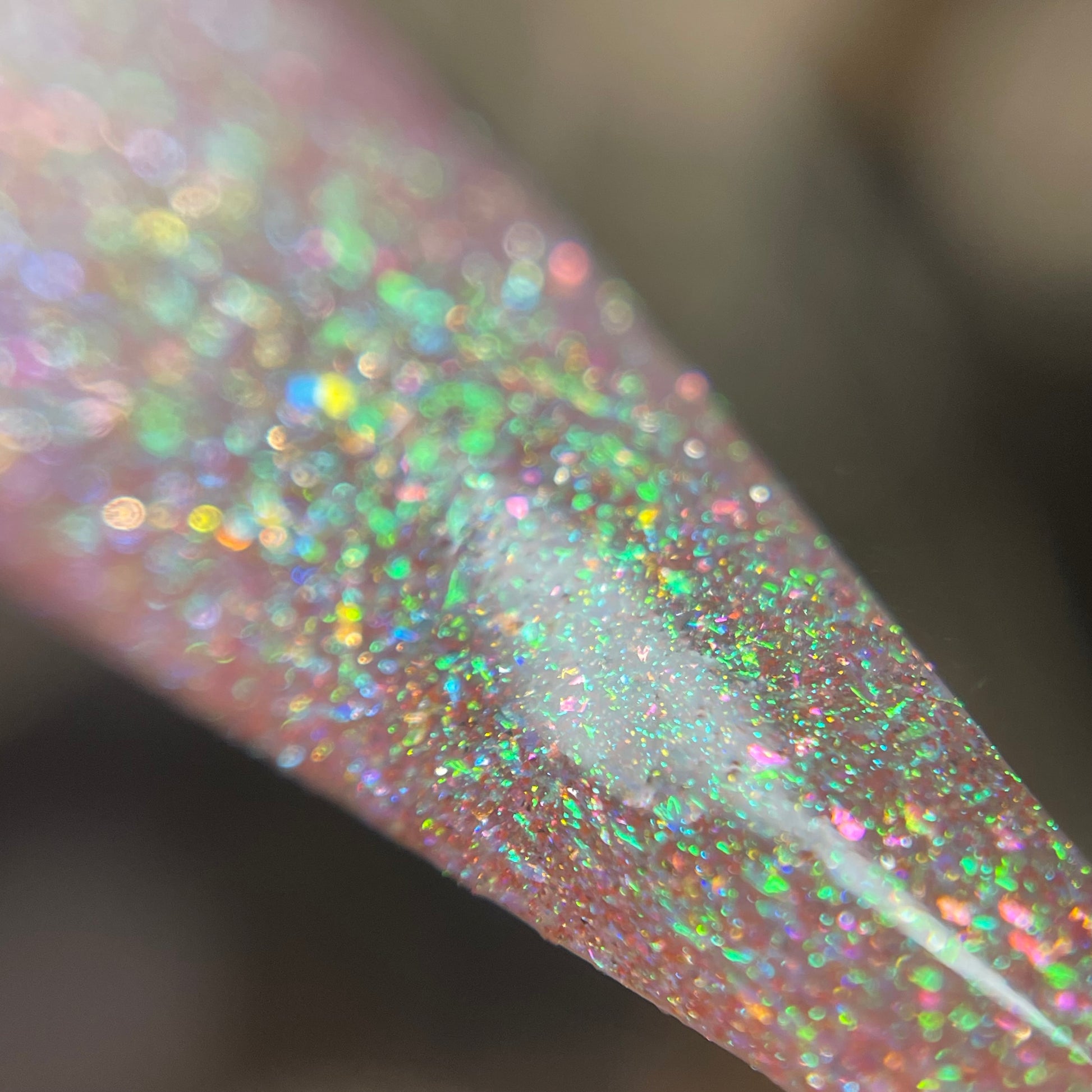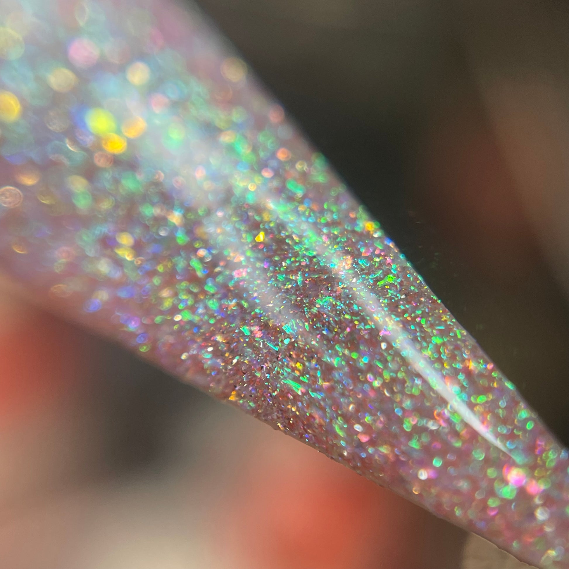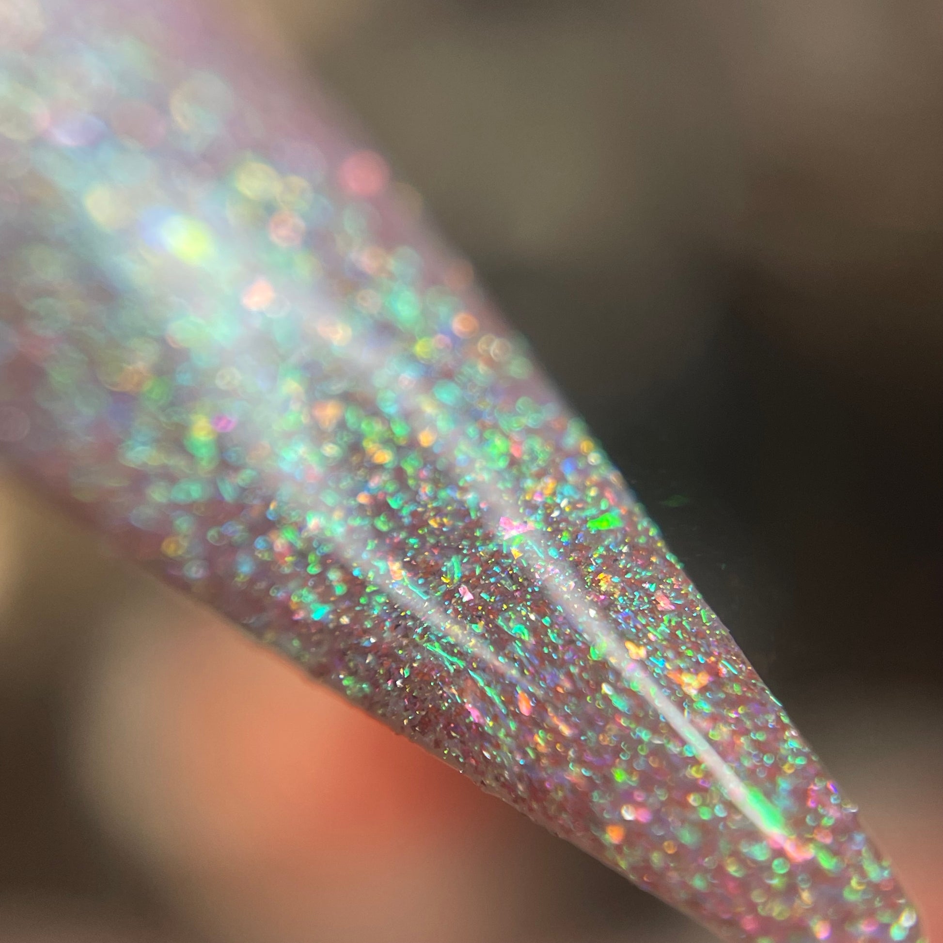 This enchanting shade features a delicate pink base that captures the softness of a sweet melody. A heavy green shift dances throughout this polish, with gold shimmer shining in perfect harmony. Enhanced with all-new reflective elements, this sparkly beauty will softly serenade you from your nails. 🎹 🐑