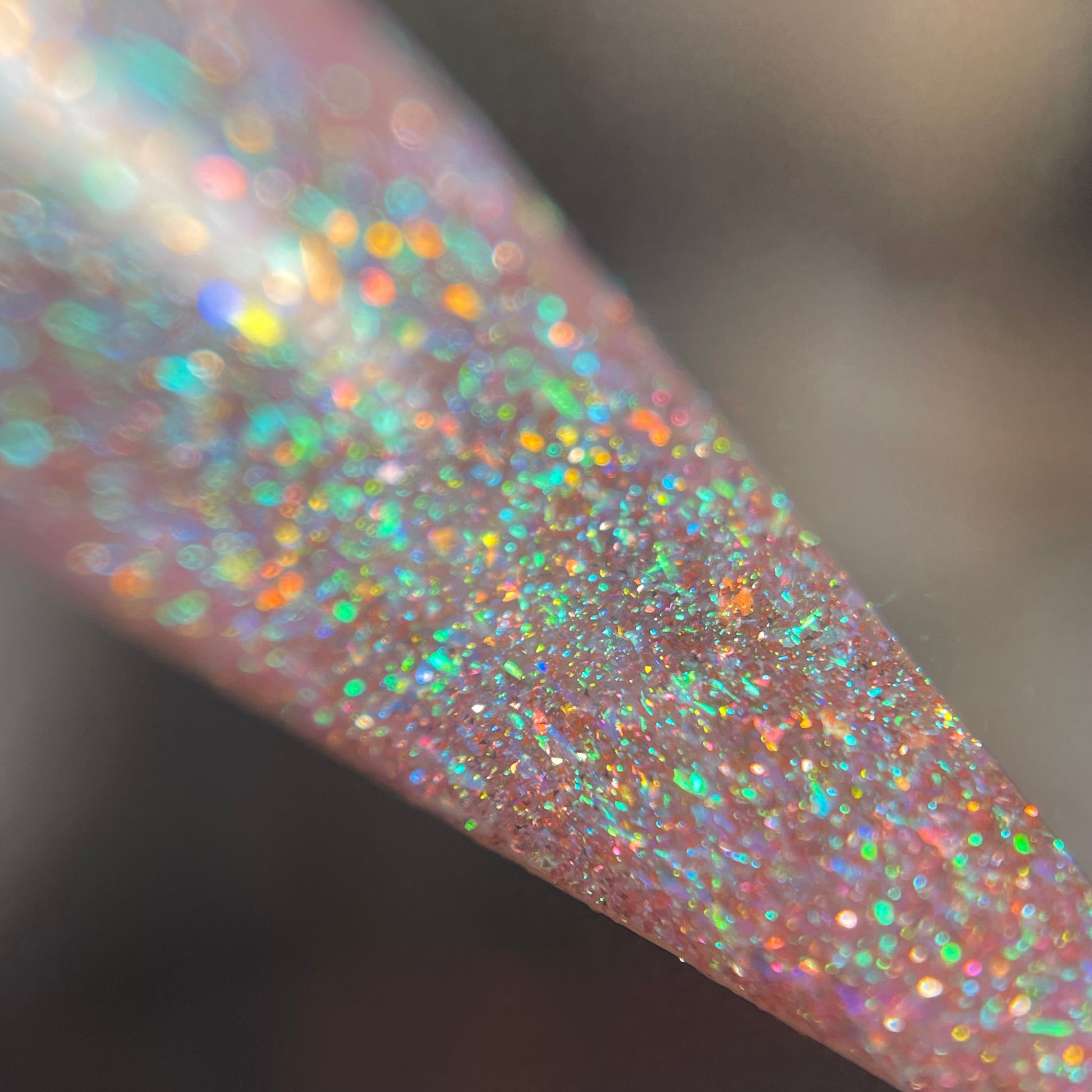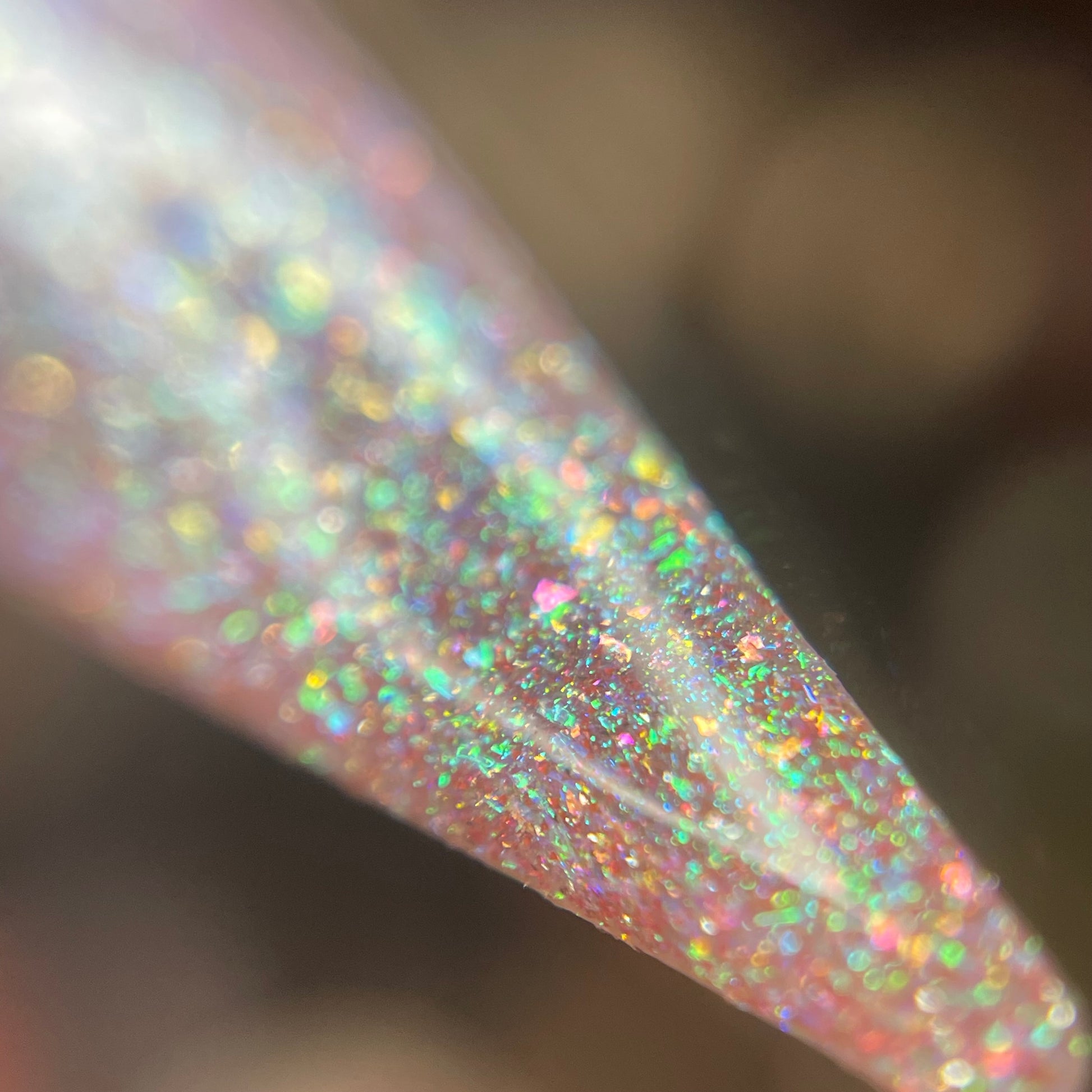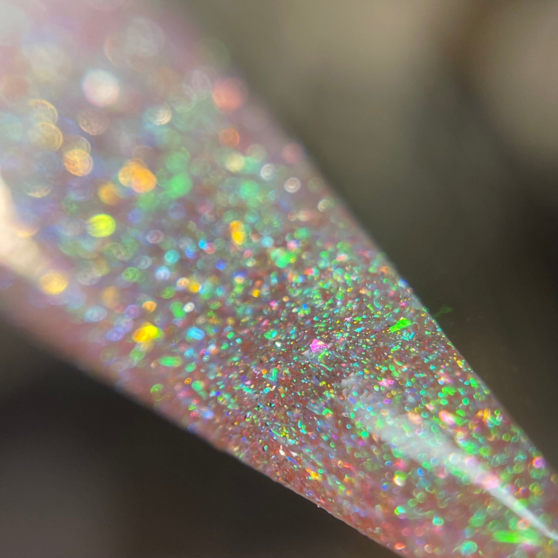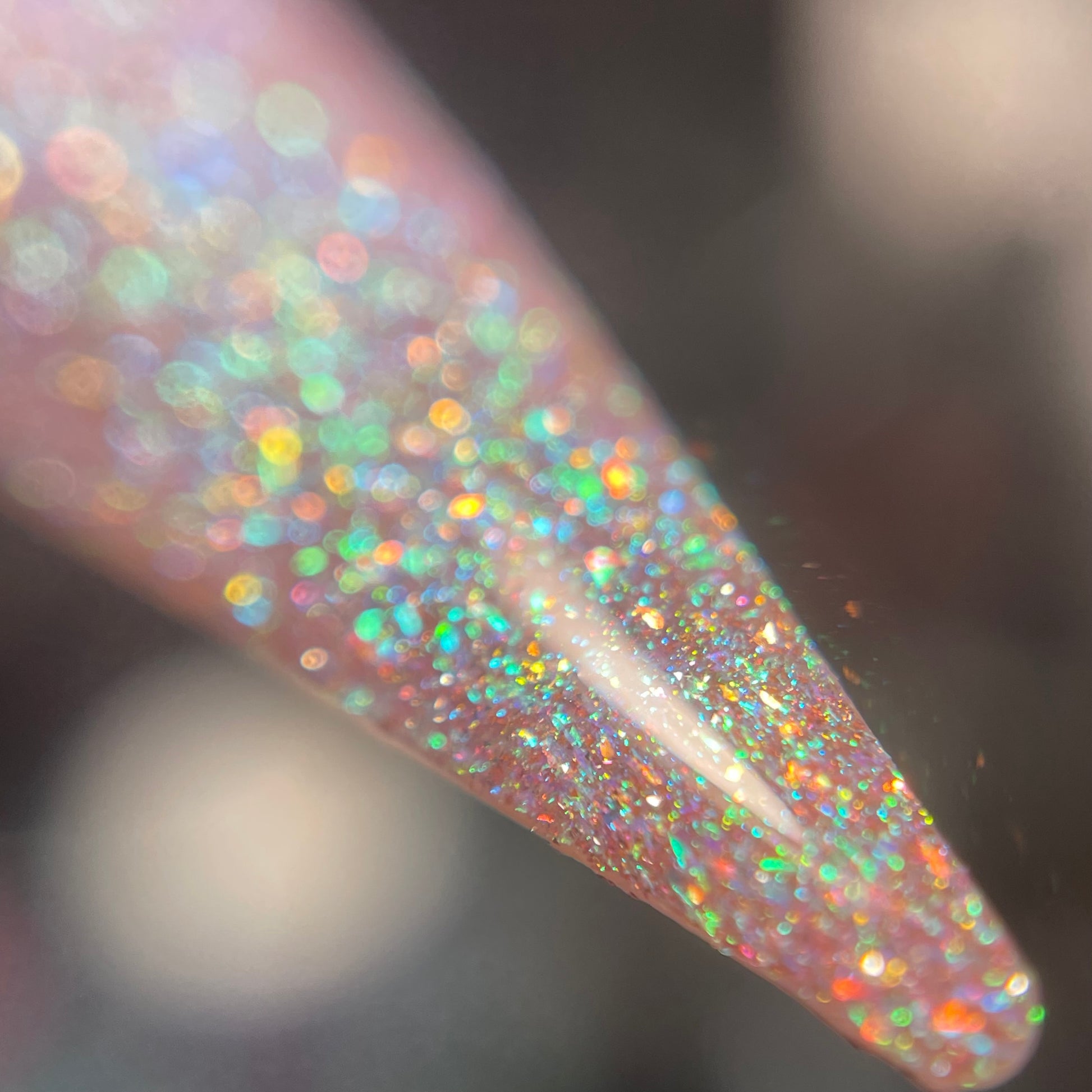 This enchanting shade features a delicate pink base that captures the softness of a sweet melody. A heavy green shift dances throughout this polish, with gold shimmer shining in perfect harmony. Enhanced with all-new reflective elements, this sparkly beauty will softly serenade you from your nails. 🎹 🐑