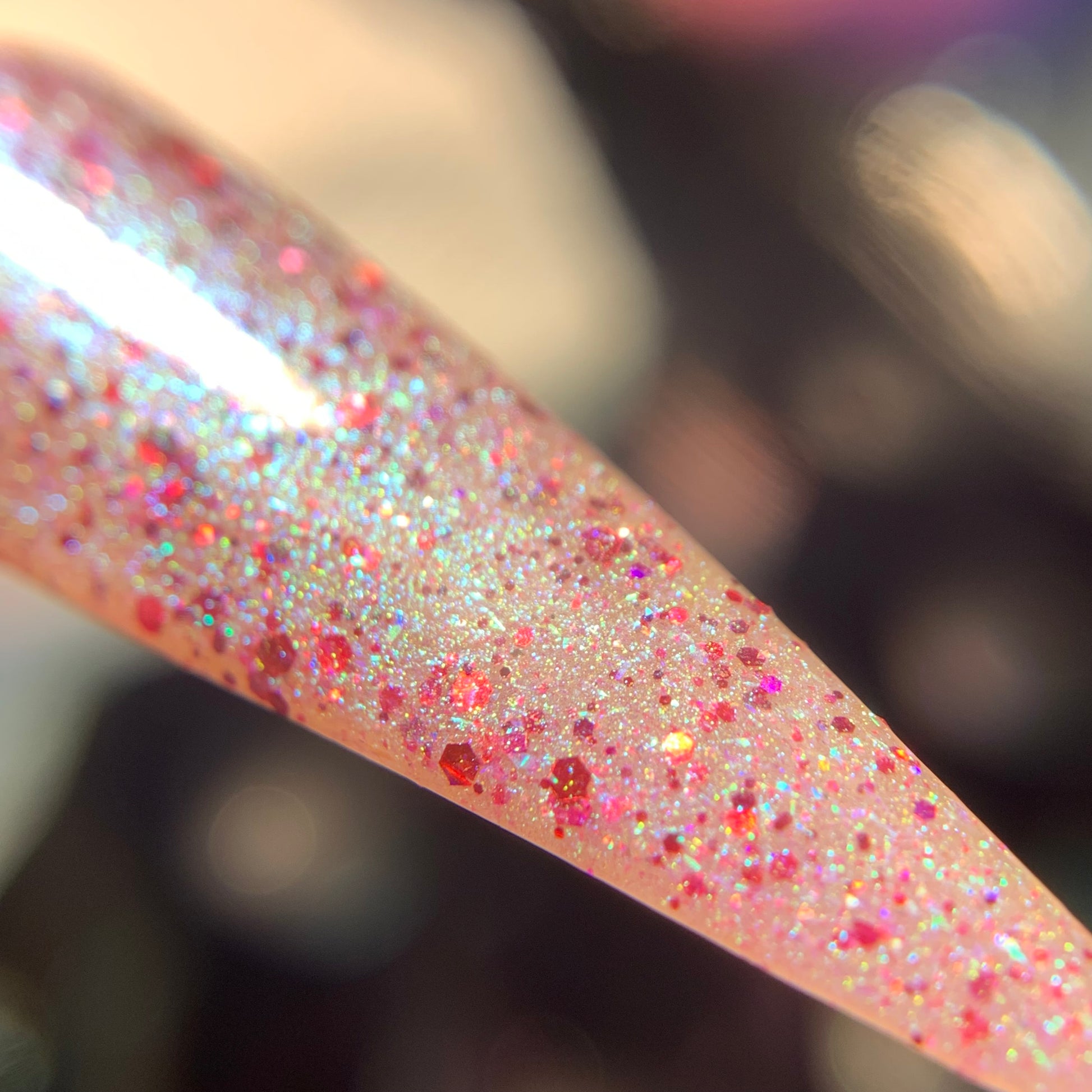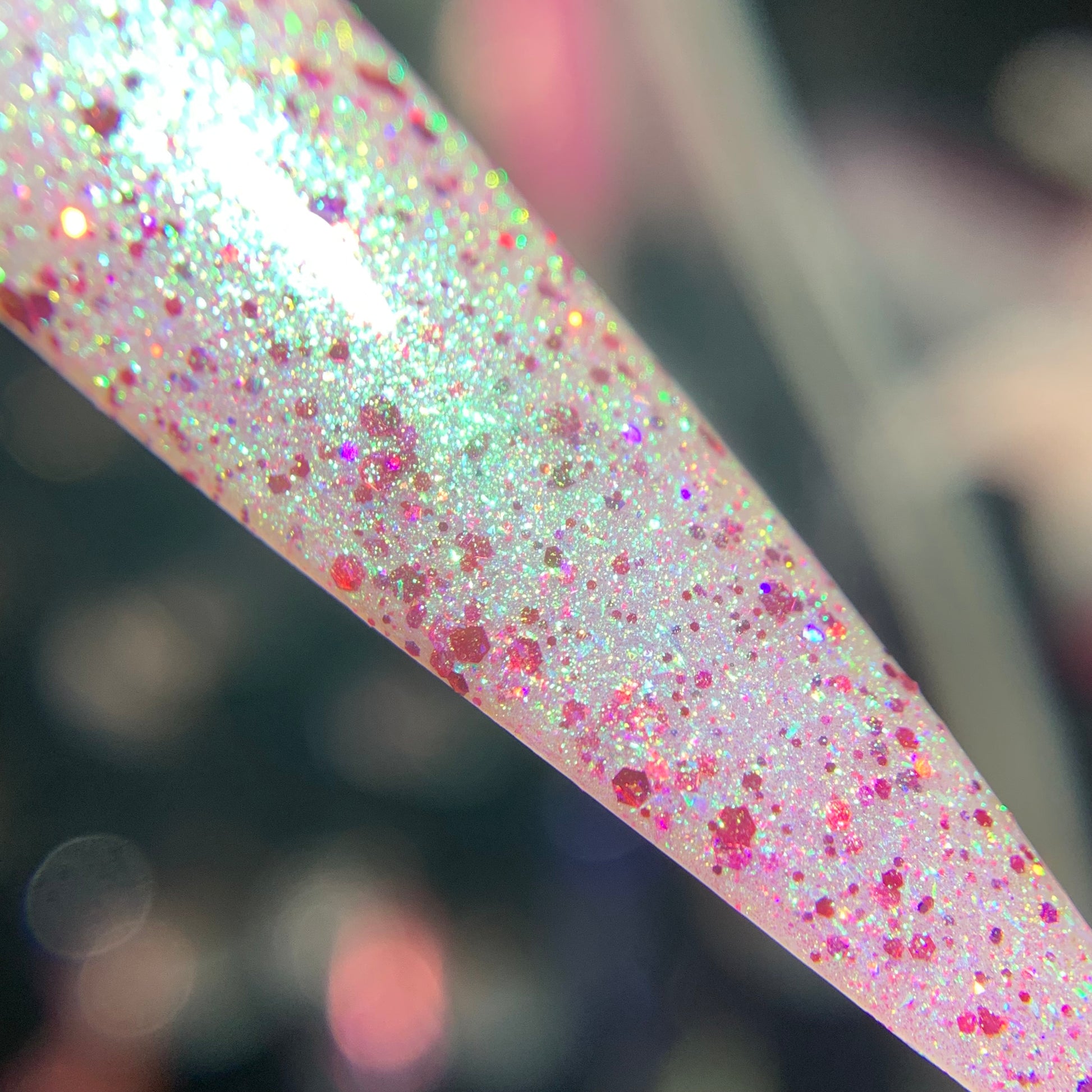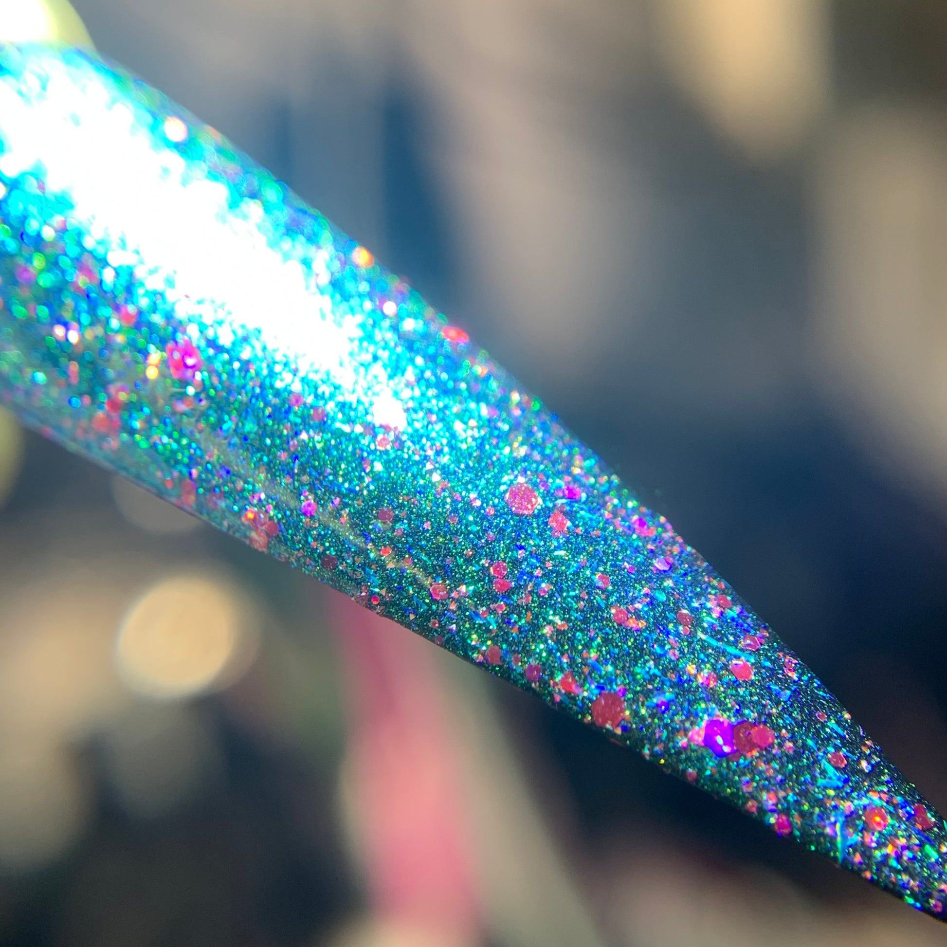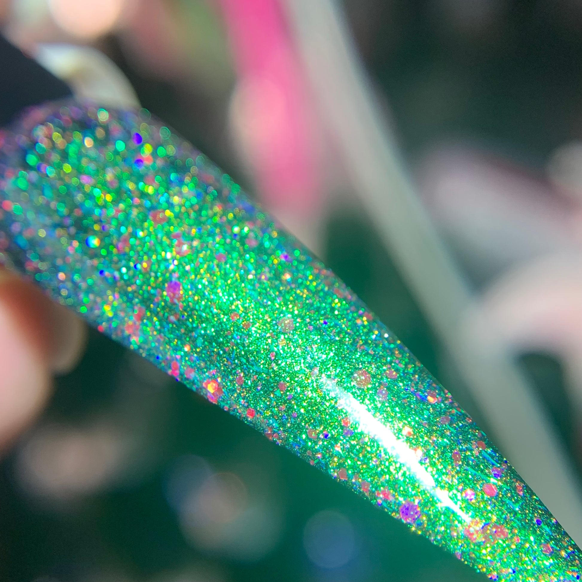 This dazzling polish blends a rich green and gold unicorn pigment with vibrant cherry hot pink glitters, creating a magical sparkle that catches every eye. Enhanced with double OGUP intensity, Bloody Drops of Love is sure to become your go-to for adding a playful pop of color and shimmer to your nails. Perfect for those who love bold, enchanting looks that stand out and shine!