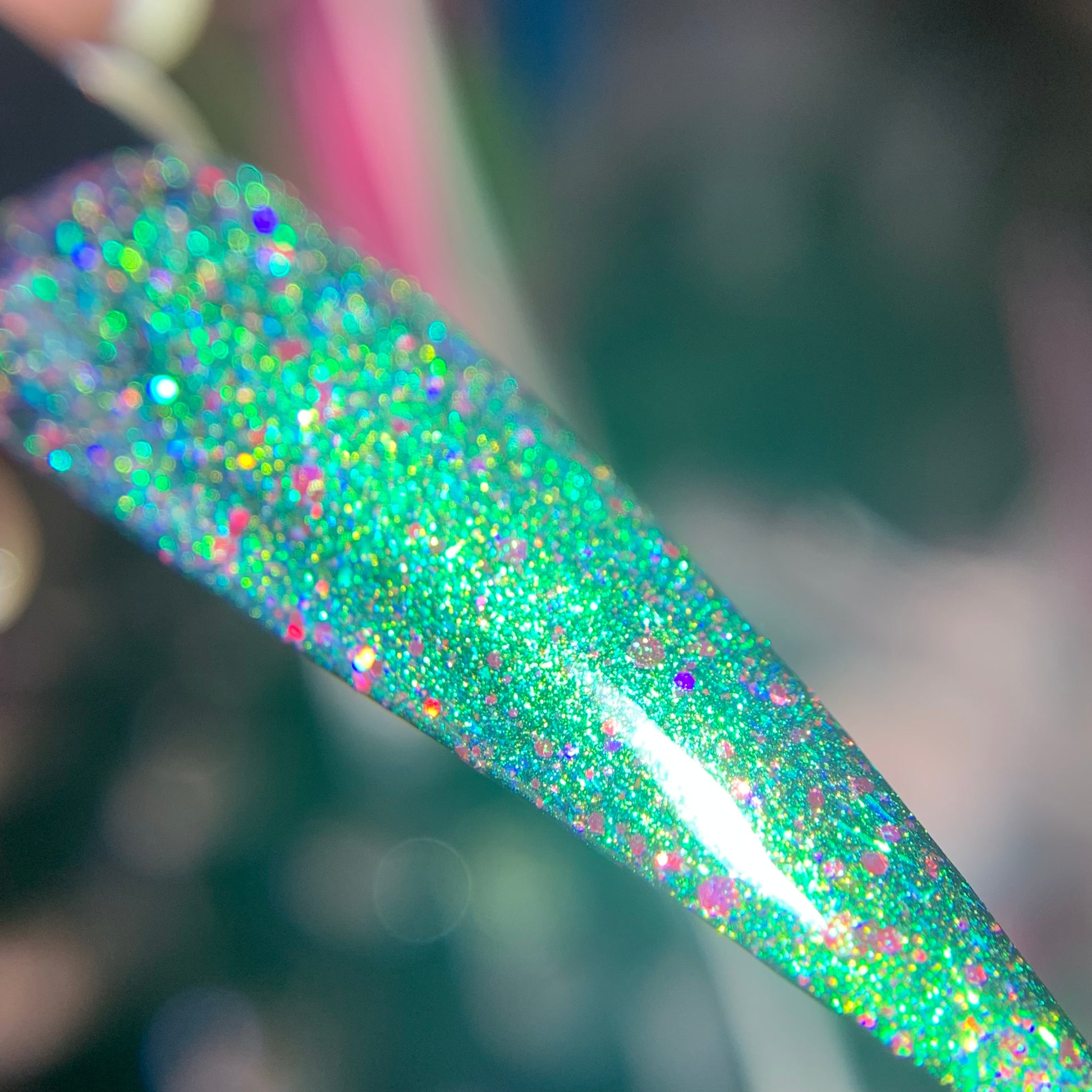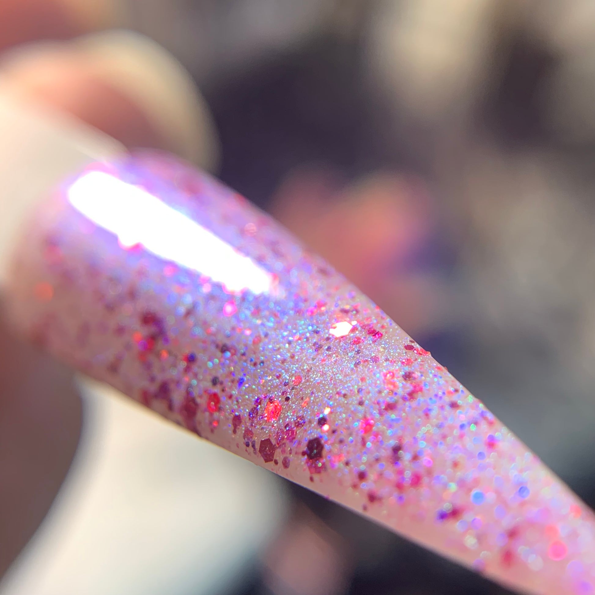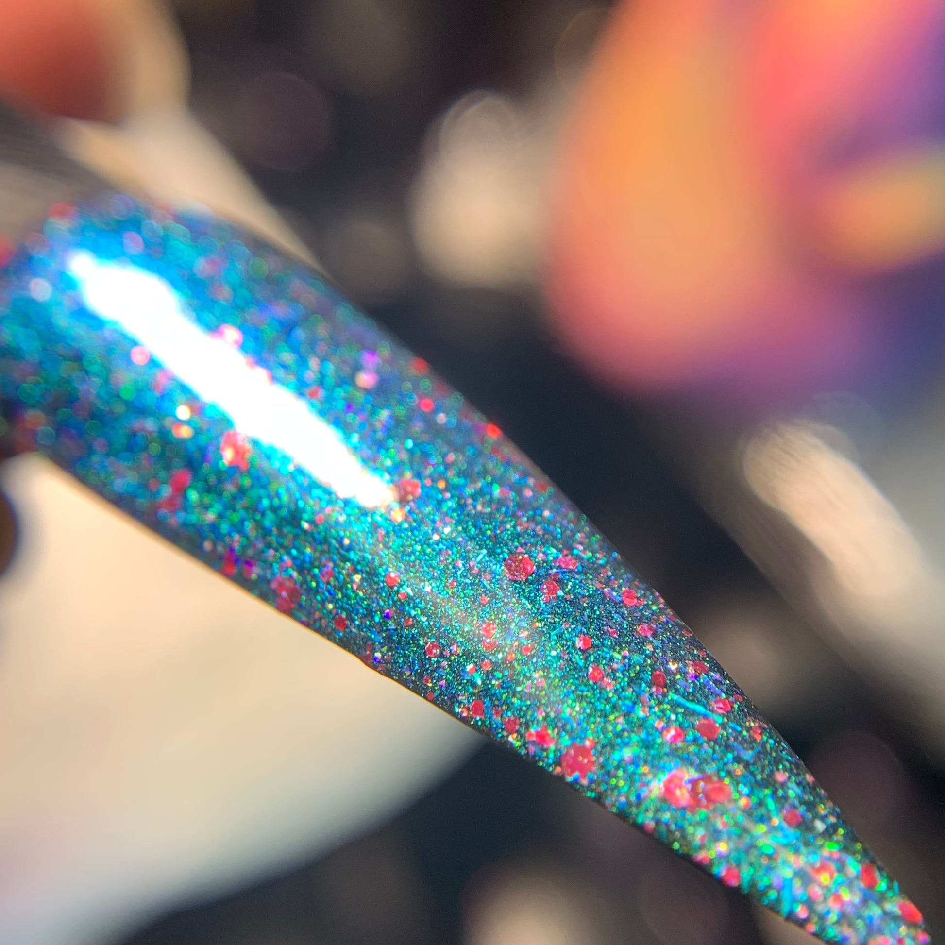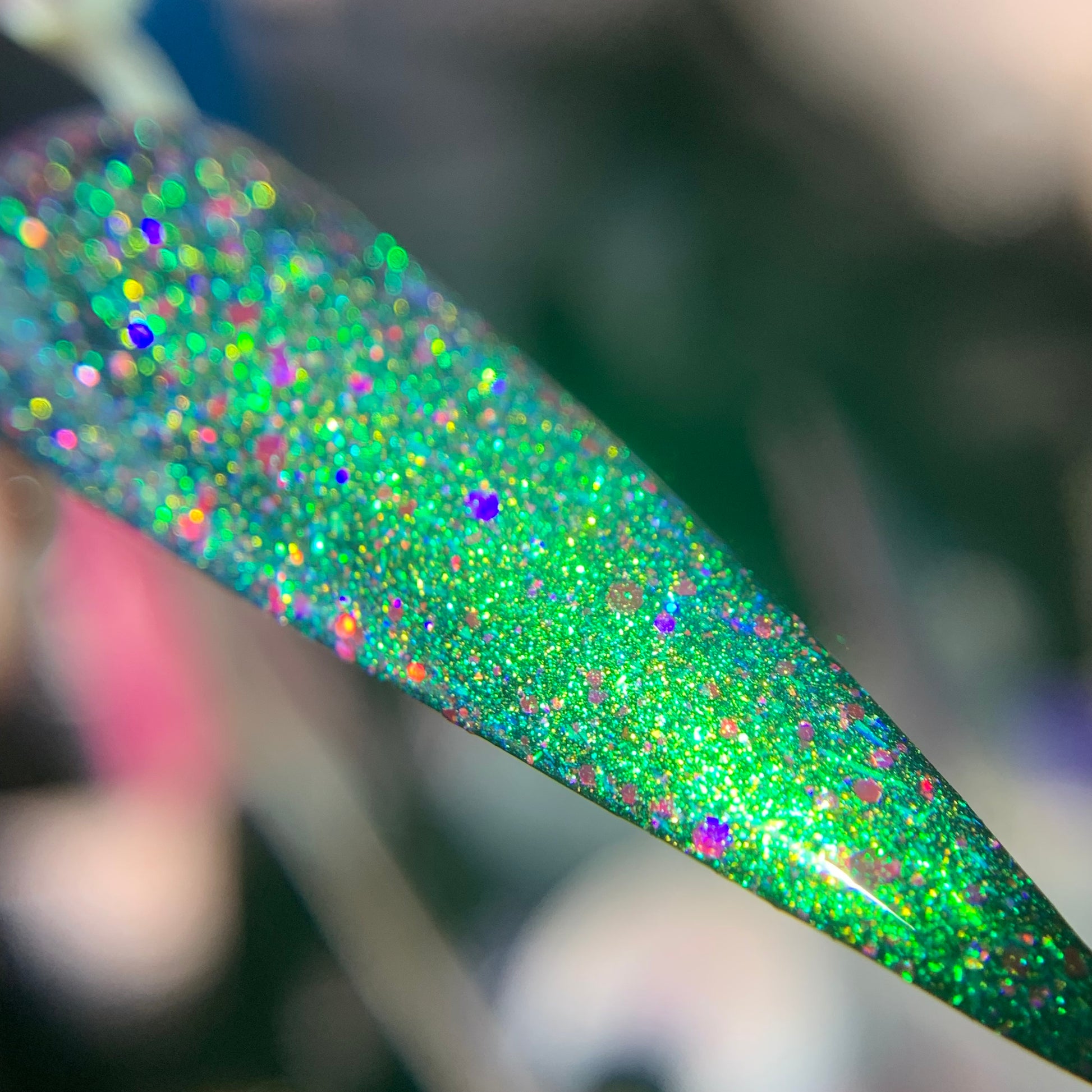 This dazzling polish blends a rich green and gold unicorn pigment with vibrant cherry hot pink glitters, creating a magical sparkle that catches every eye. Enhanced with double OGUP intensity, Bloody Drops of Love is sure to become your go-to for adding a playful pop of color and shimmer to your nails. Perfect for those who love bold, enchanting looks that stand out and shine!