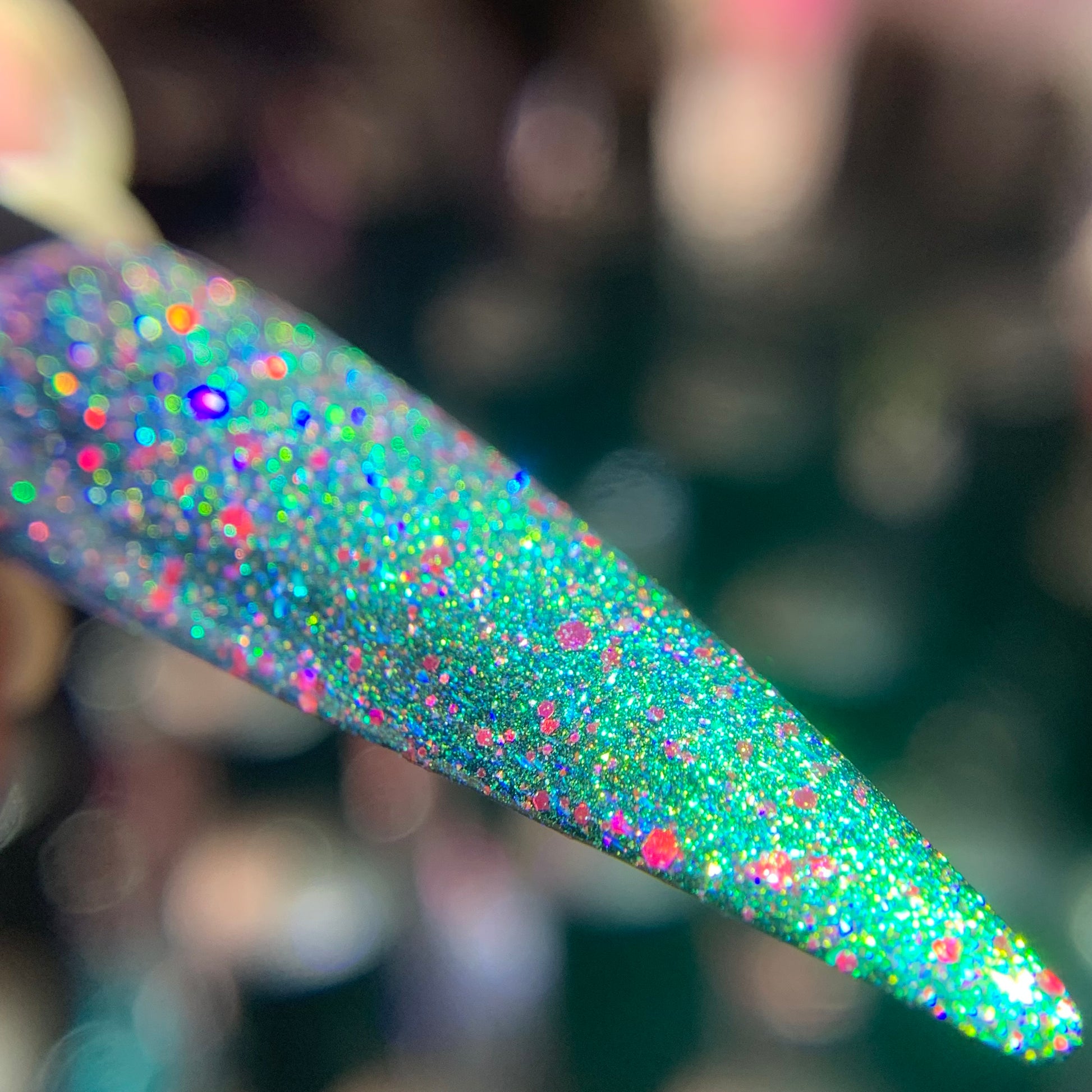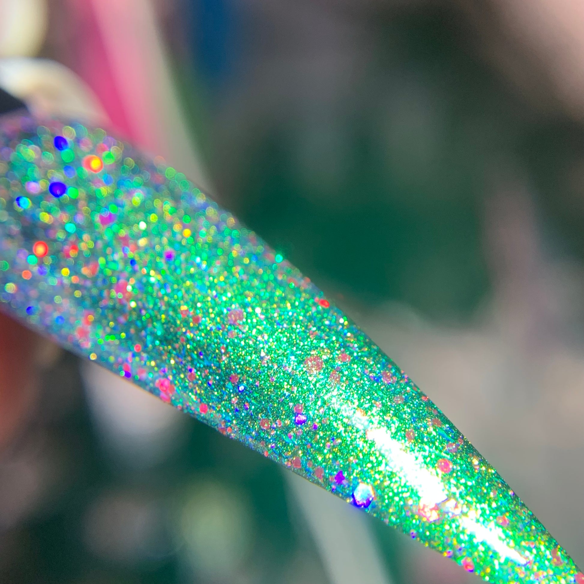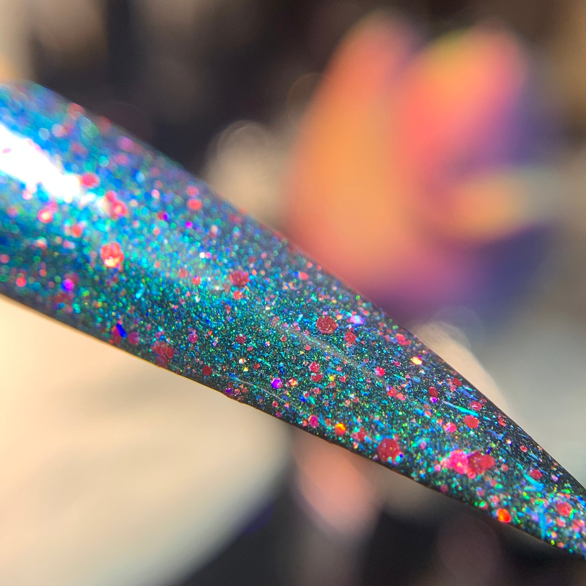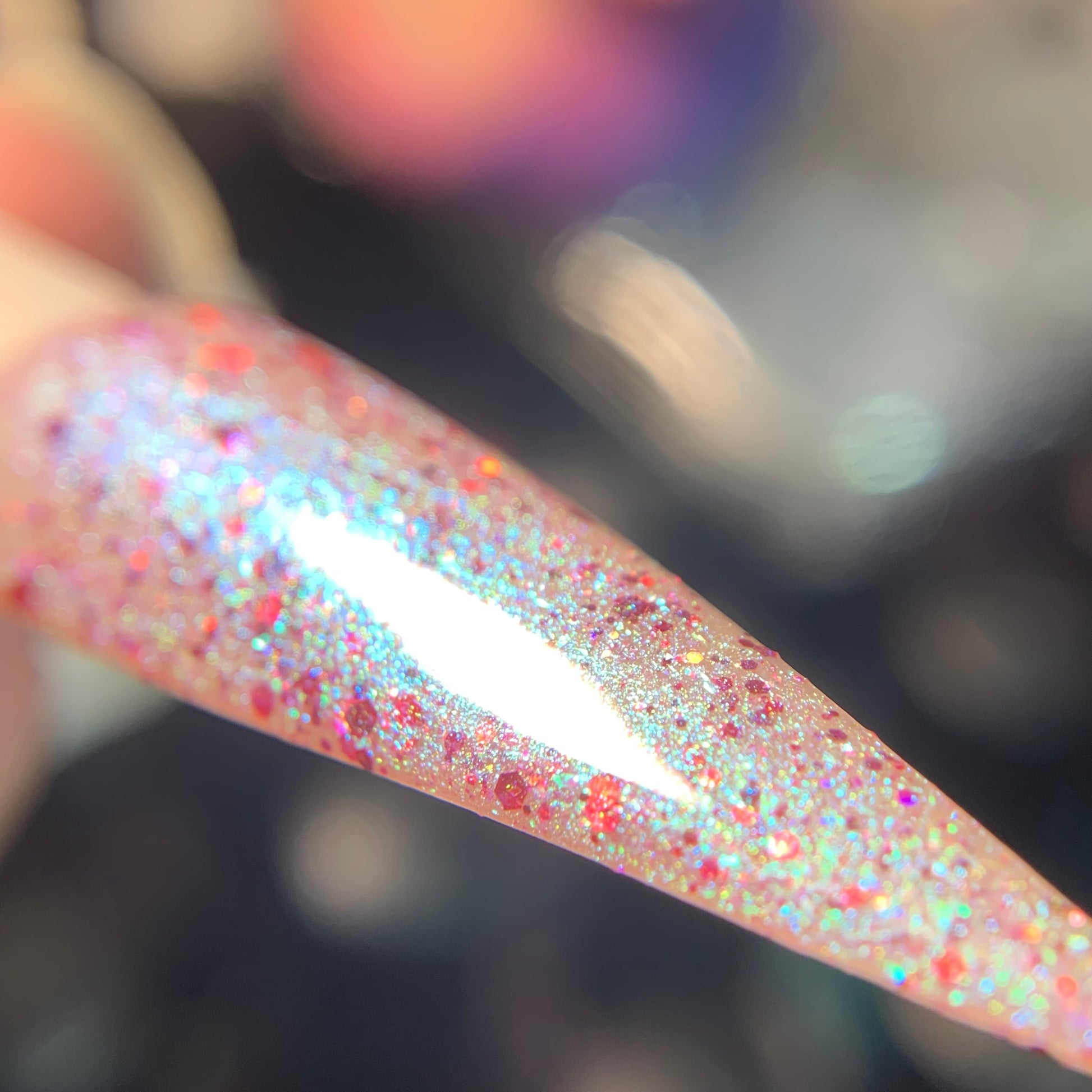 This dazzling polish blends a rich green and gold unicorn pigment with vibrant cherry hot pink glitters, creating a magical sparkle that catches every eye. Enhanced with double OGUP intensity, Bloody Drops of Love is sure to become your go-to for adding a playful pop of color and shimmer to your nails. Perfect for those who love bold, enchanting looks that stand out and shine!