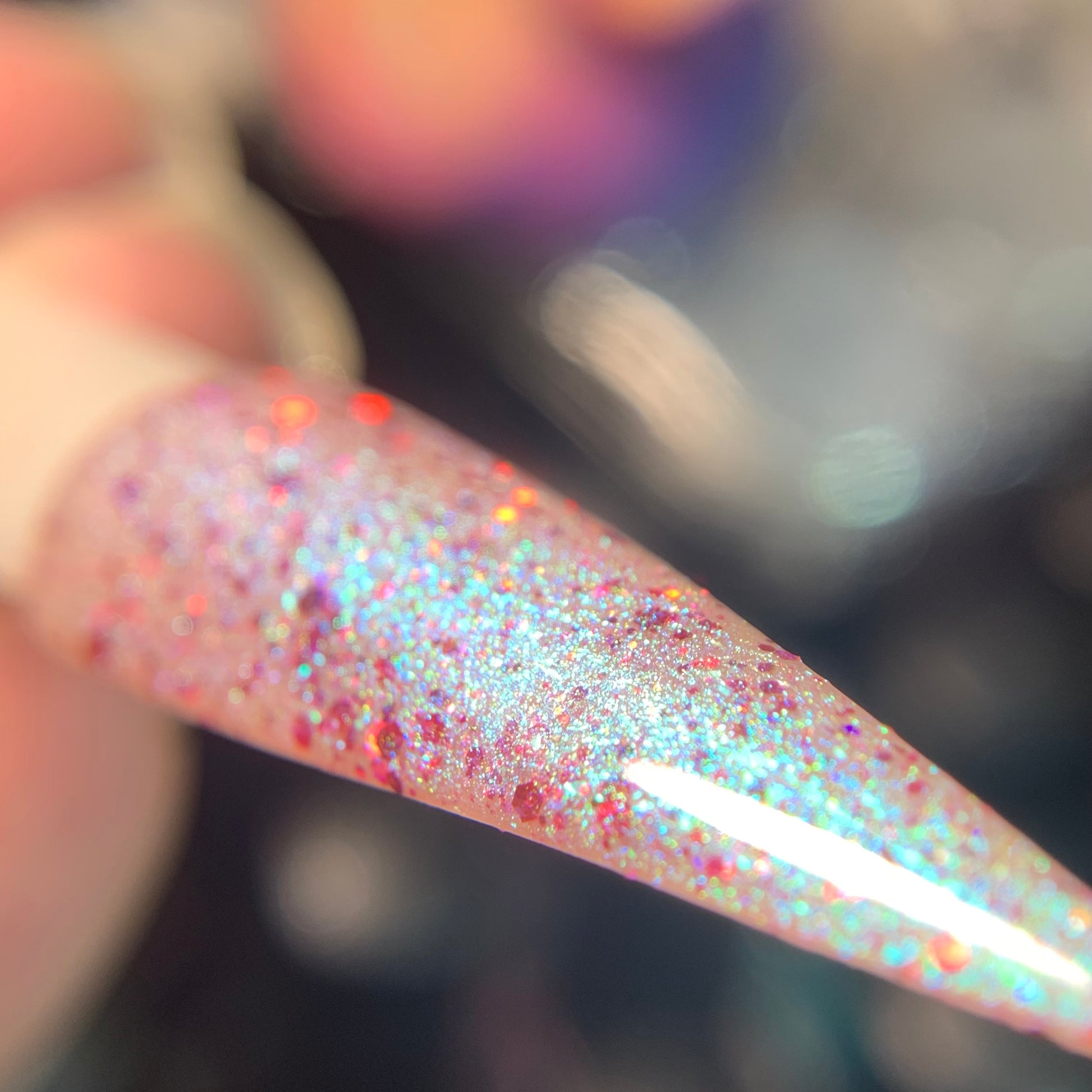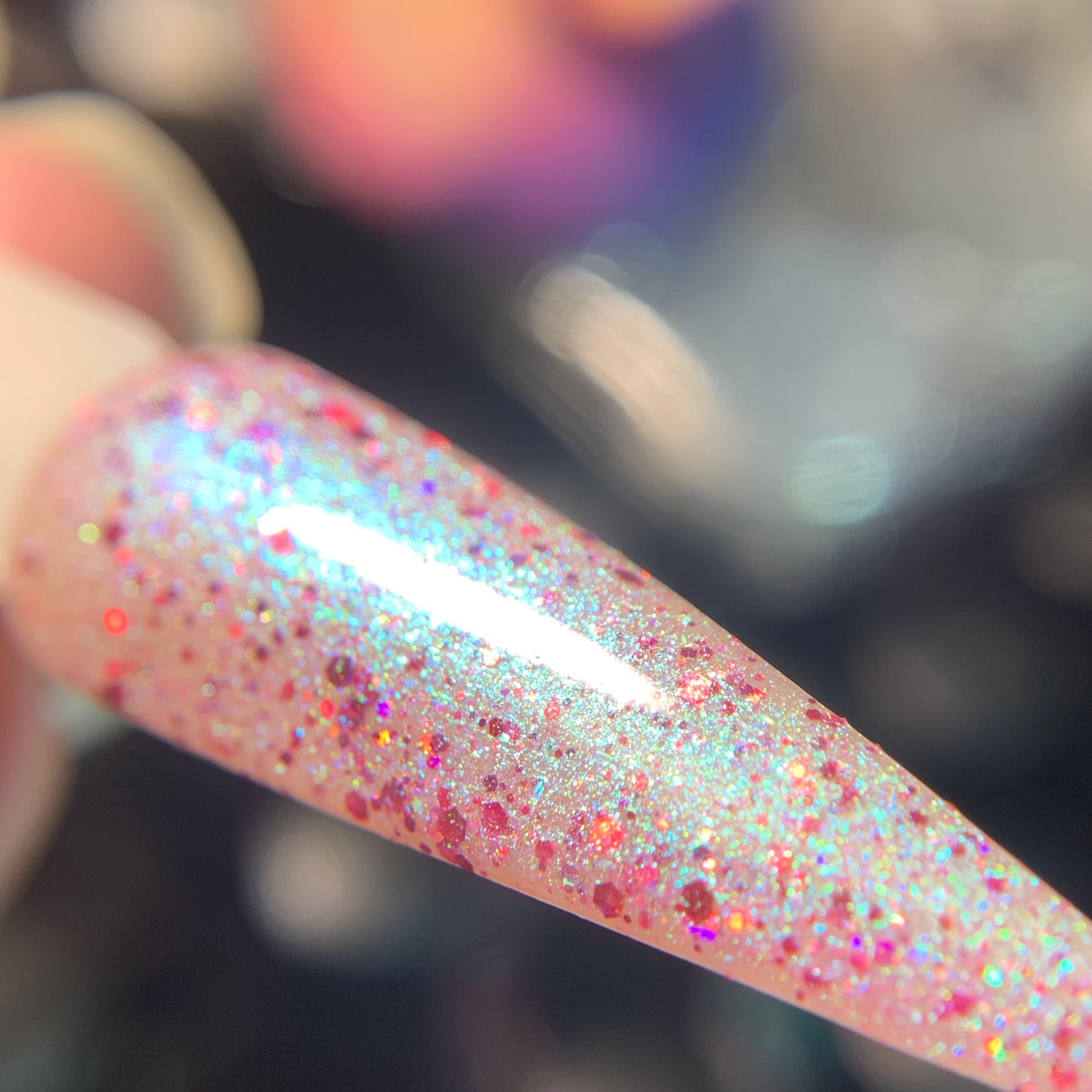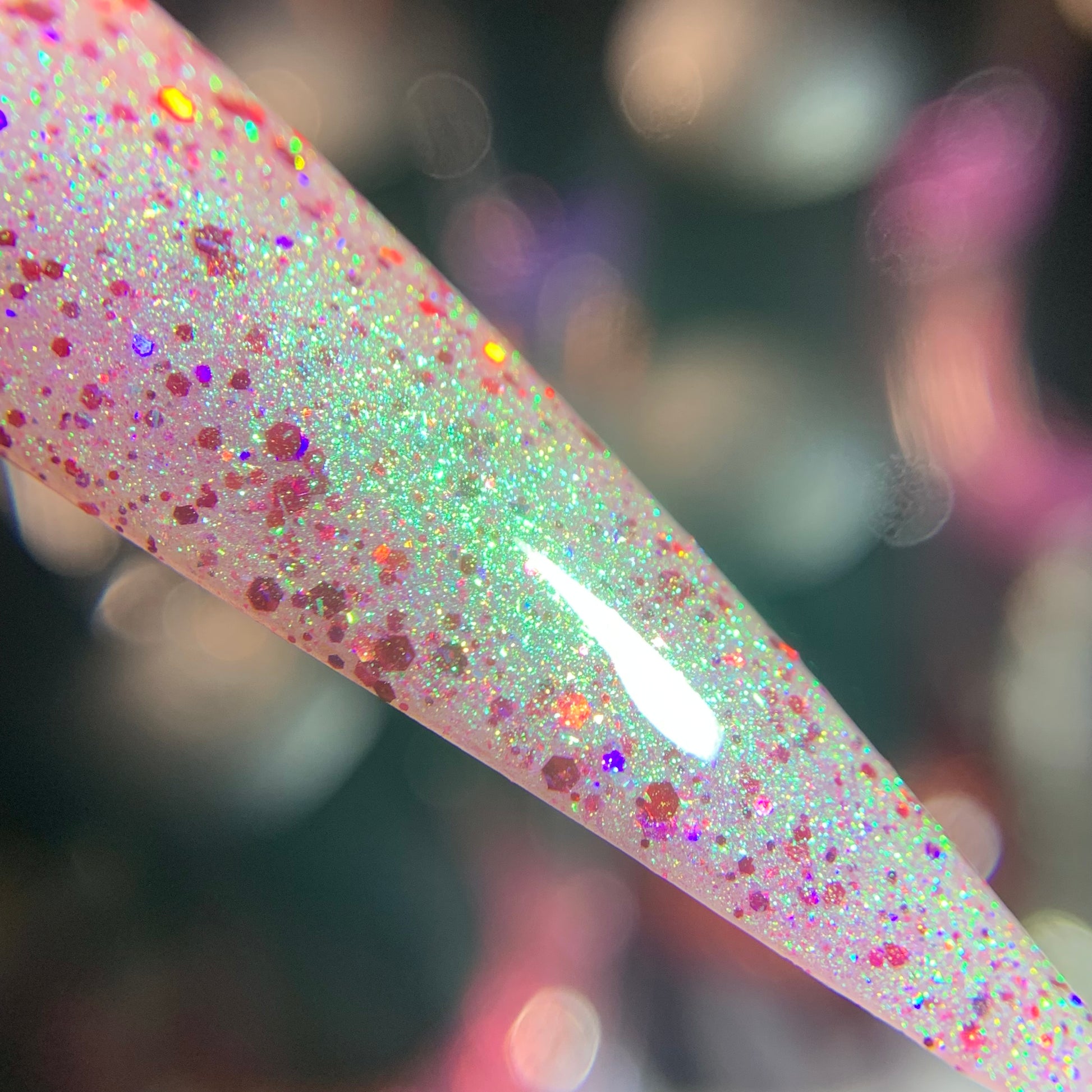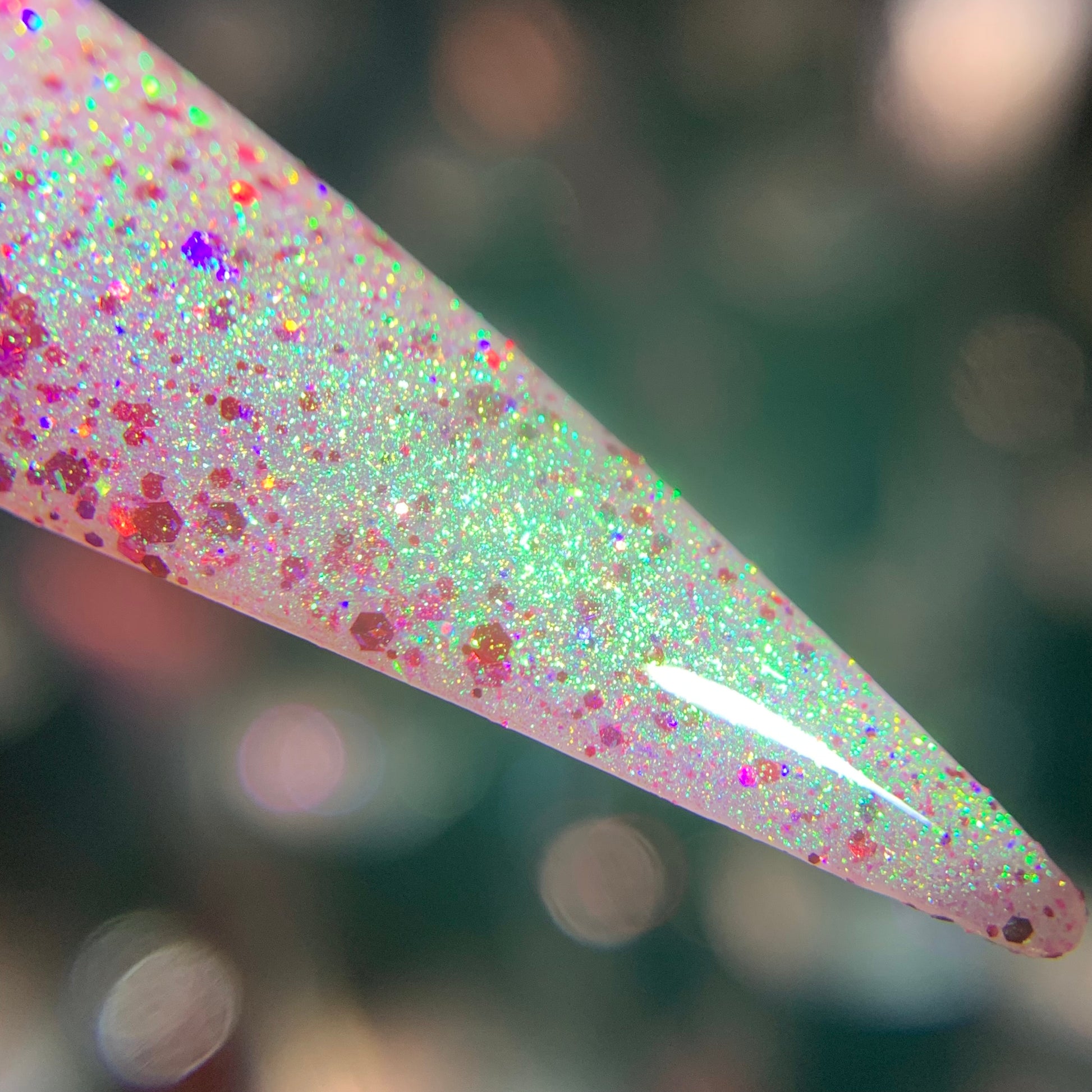 This dazzling polish blends a rich green and gold unicorn pigment with vibrant cherry hot pink glitters, creating a magical sparkle that catches every eye. Enhanced with double OGUP intensity, Bloody Drops of Love is sure to become your go-to for adding a playful pop of color and shimmer to your nails. Perfect for those who love bold, enchanting looks that stand out and shine!