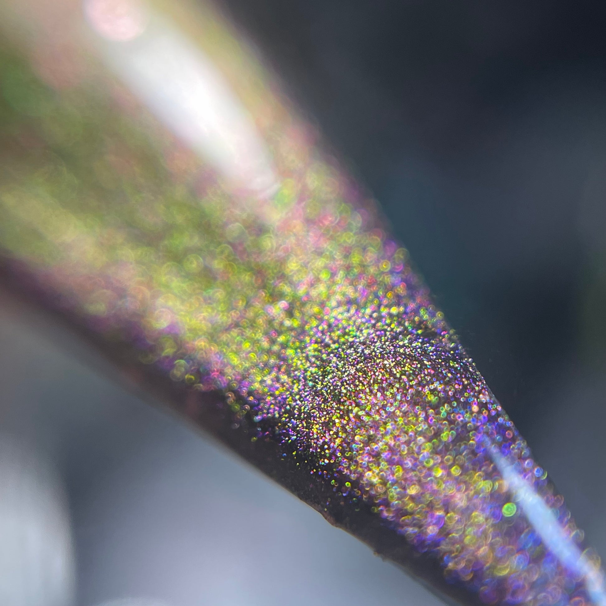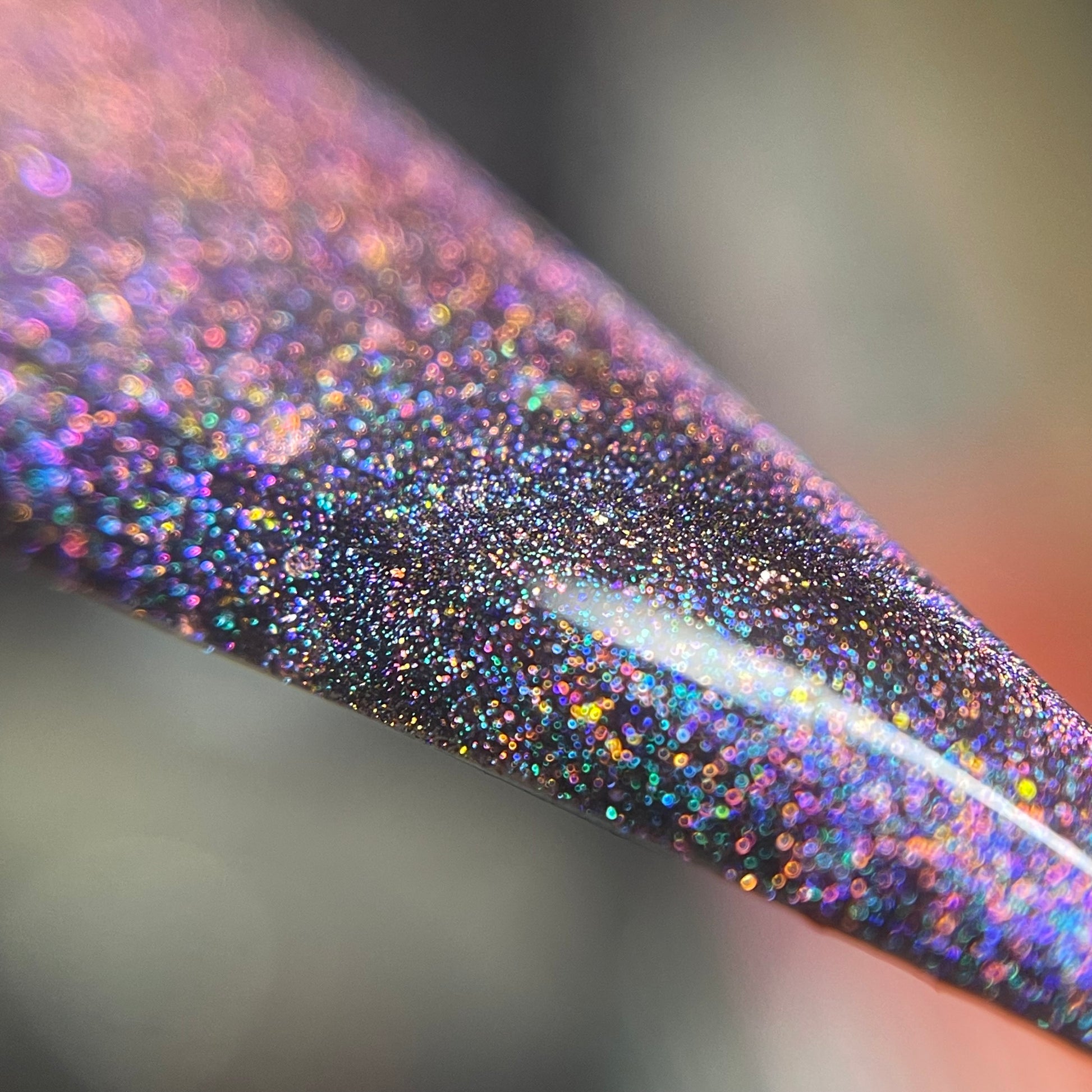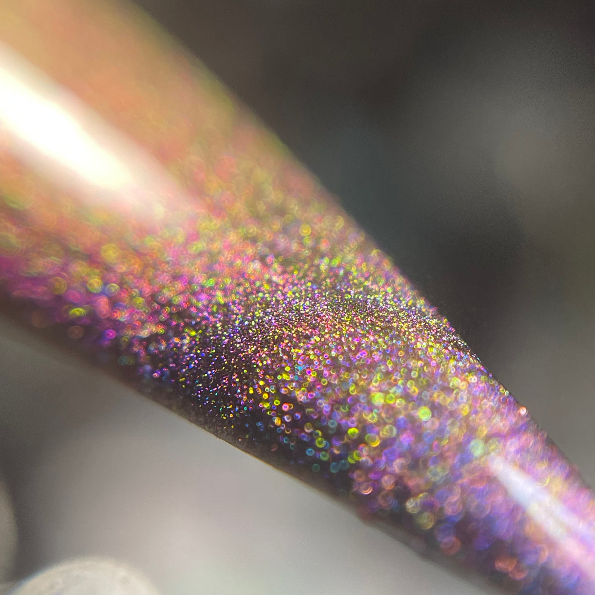Cherry Coke-Magnetic bursts with a rich cherry cola base, intensified by striking blue and magenta magnetic tones. Glitter and loaded shimmer create a dazzling effect, while rose gold hexes add a fiery sparkle. This shade commands attention and is the ultimate summer must-have for those ready to stand out and be lovestruck.