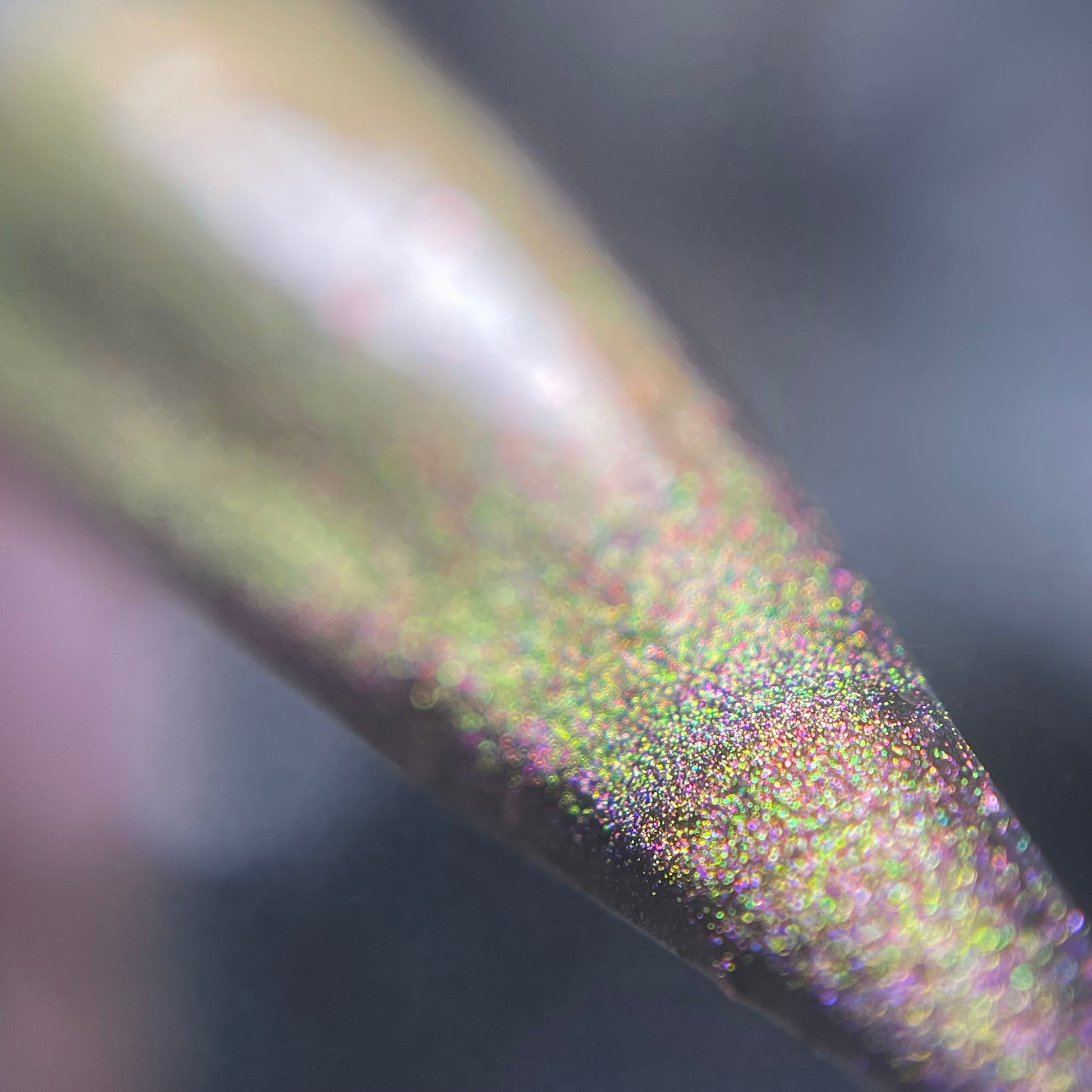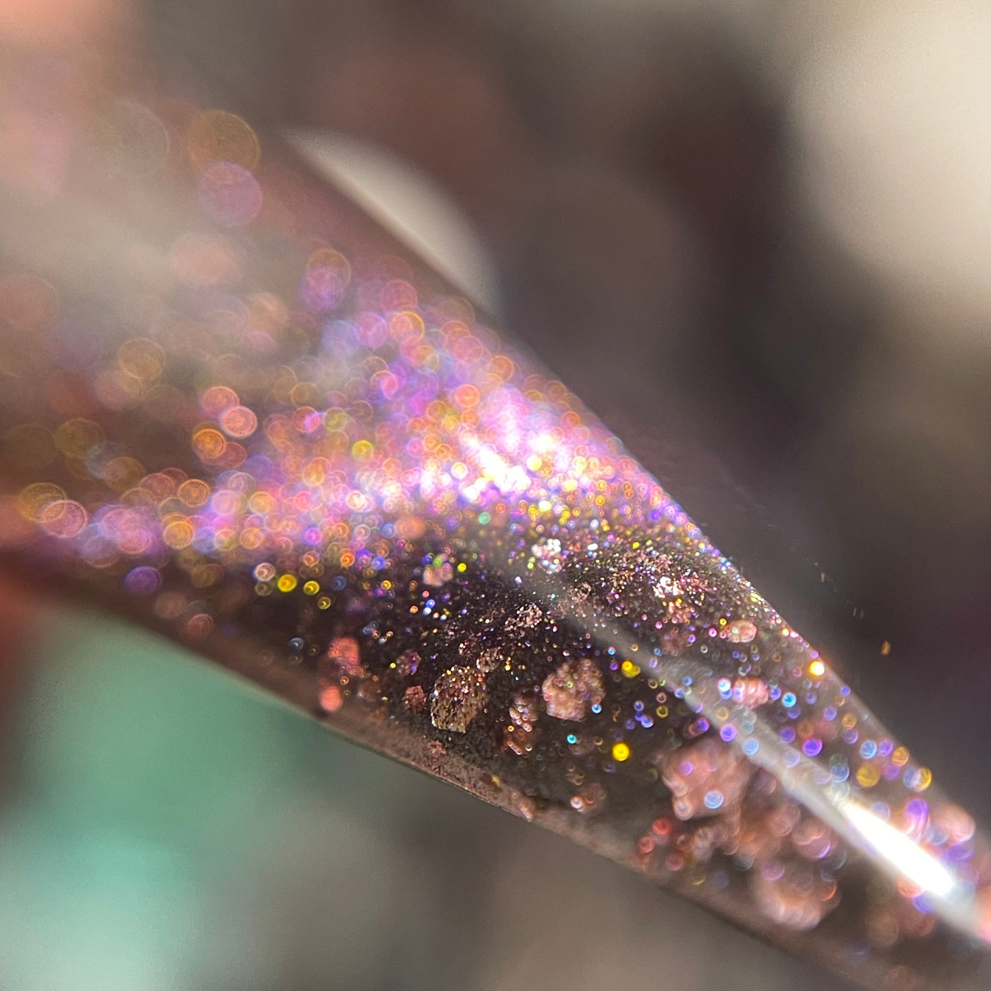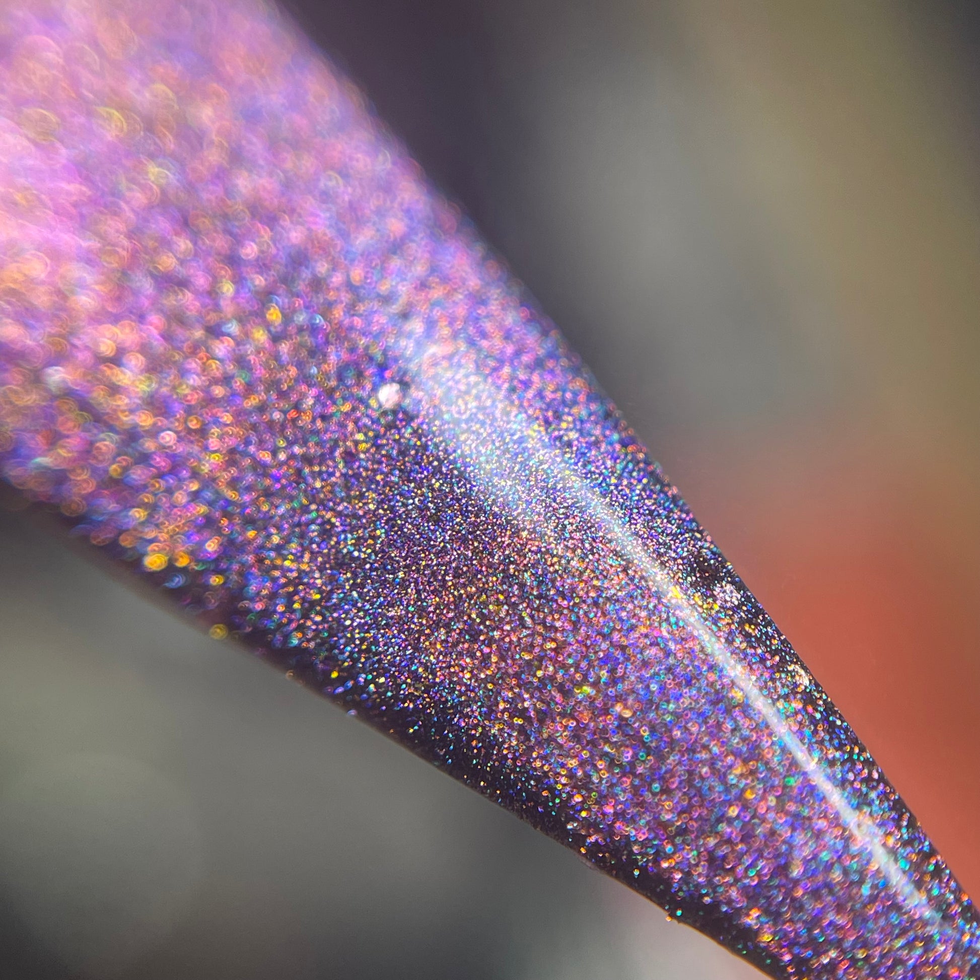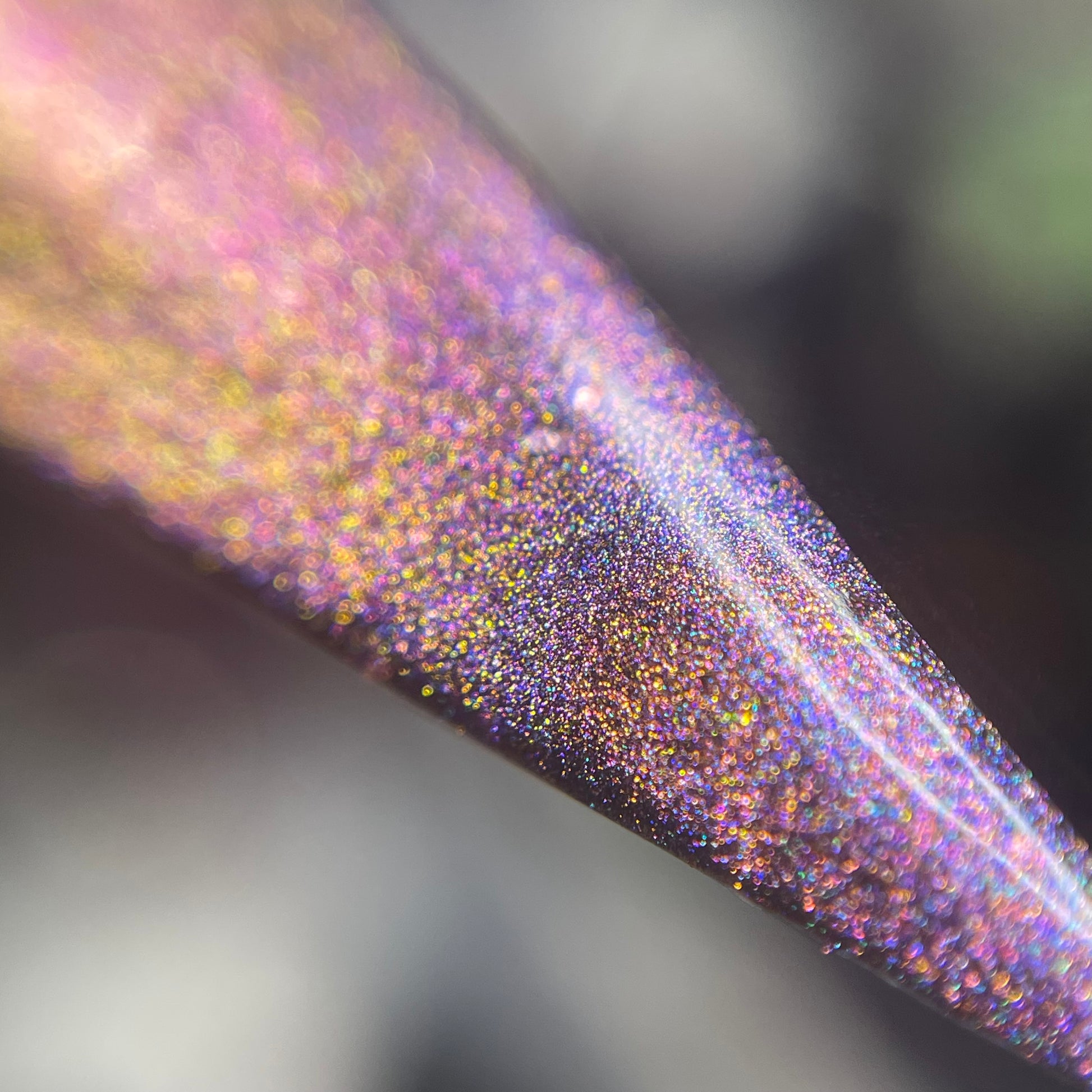 Cherry Coke-Magnetic bursts with a rich cherry cola base, intensified by striking blue and magenta magnetic tones. Glitter and loaded shimmer create a dazzling effect, while rose gold hexes add a fiery sparkle. This shade commands attention and is the ultimate summer must-have for those ready to stand out and be lovestruck.
