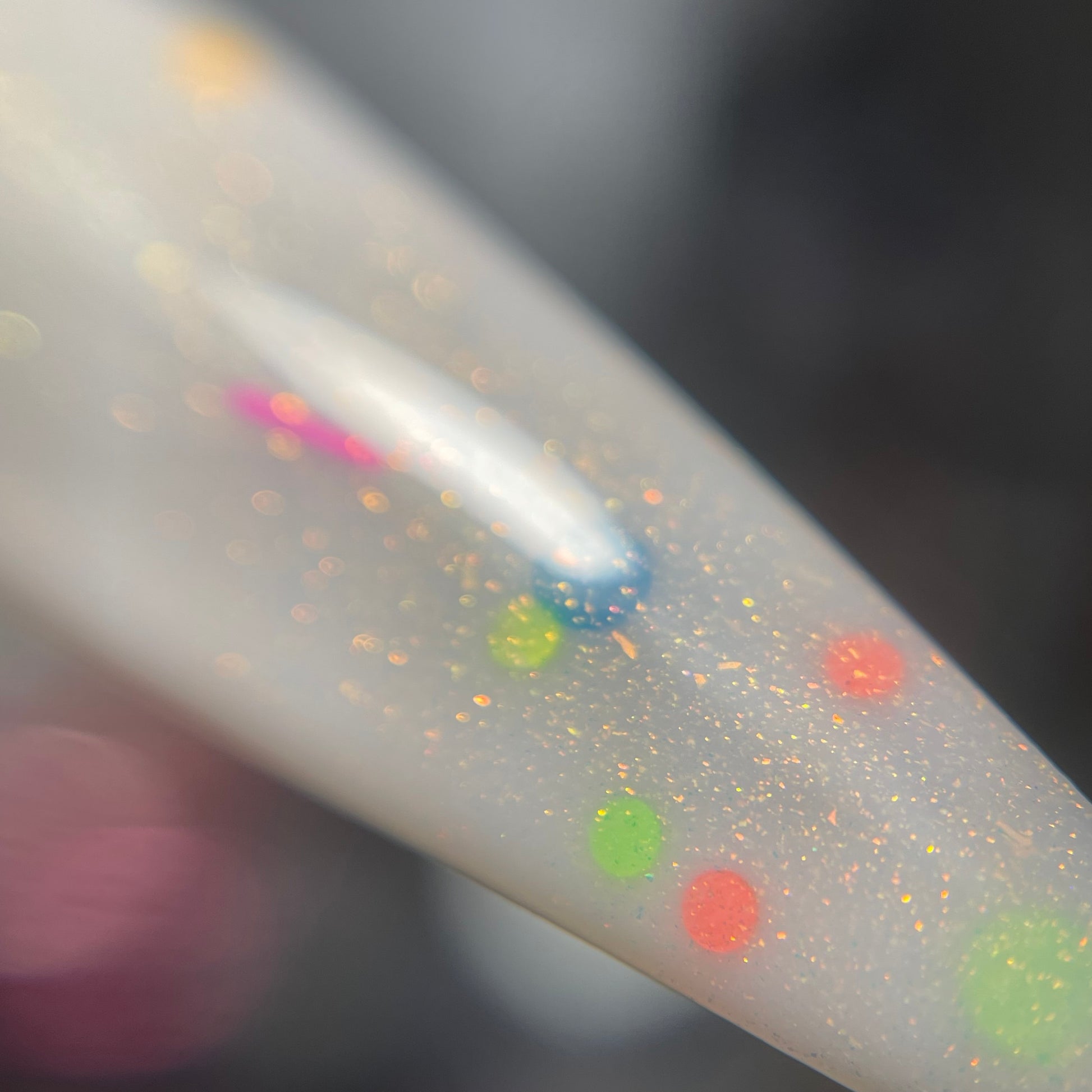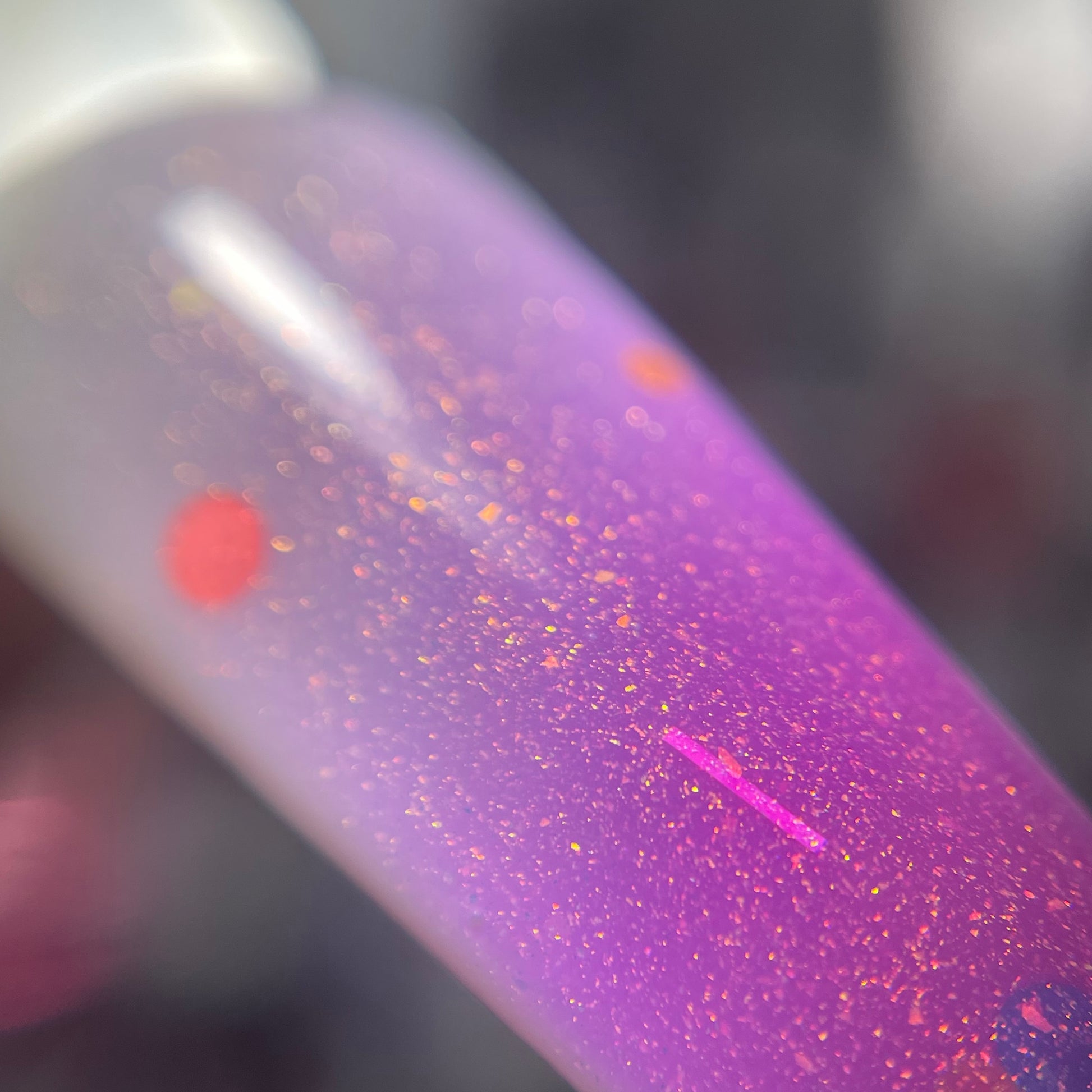 a beautiful pink to magenta purple with neon glitters and green unicorn pigment