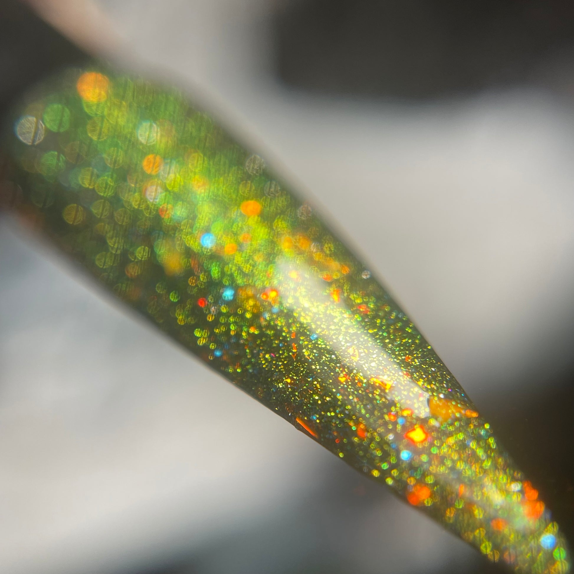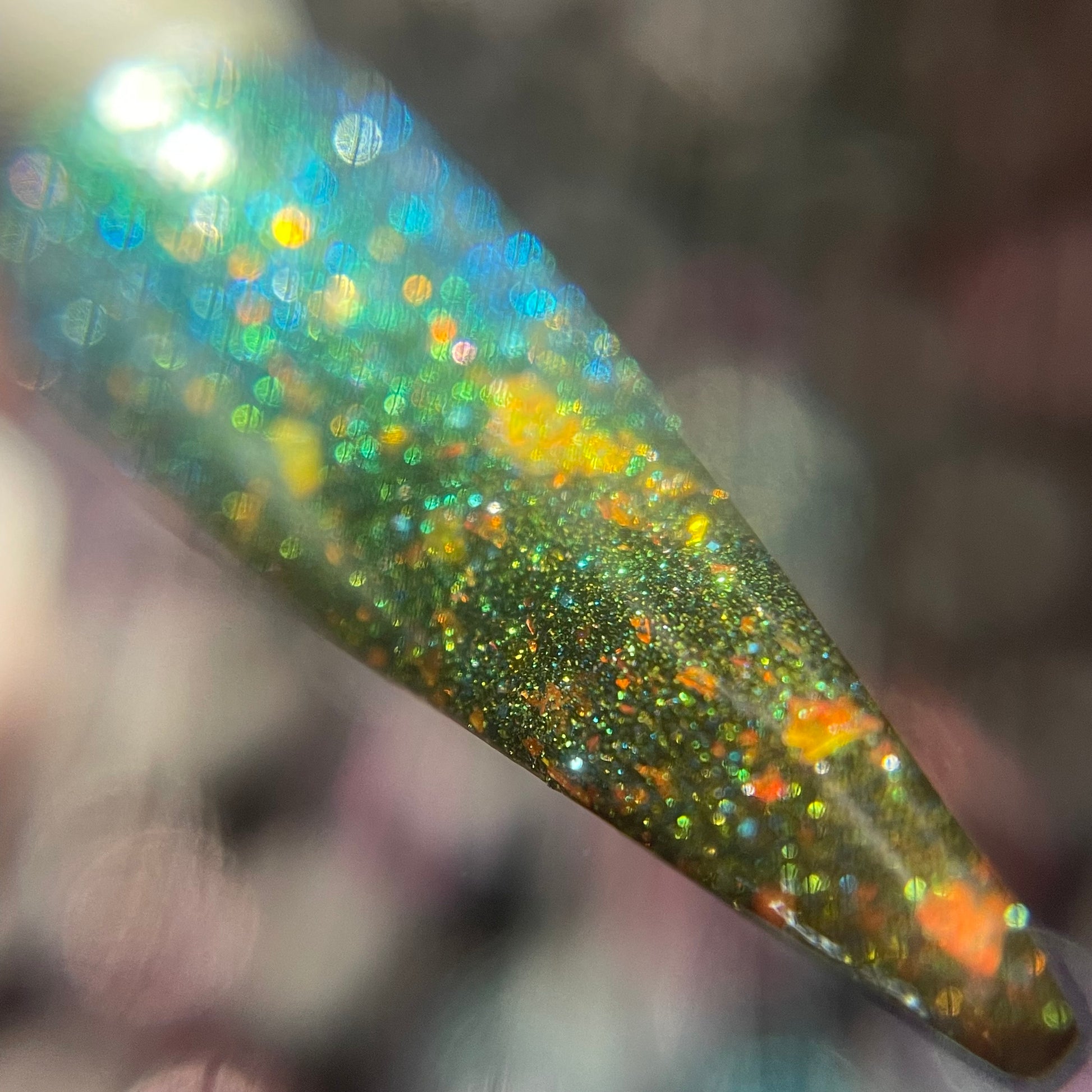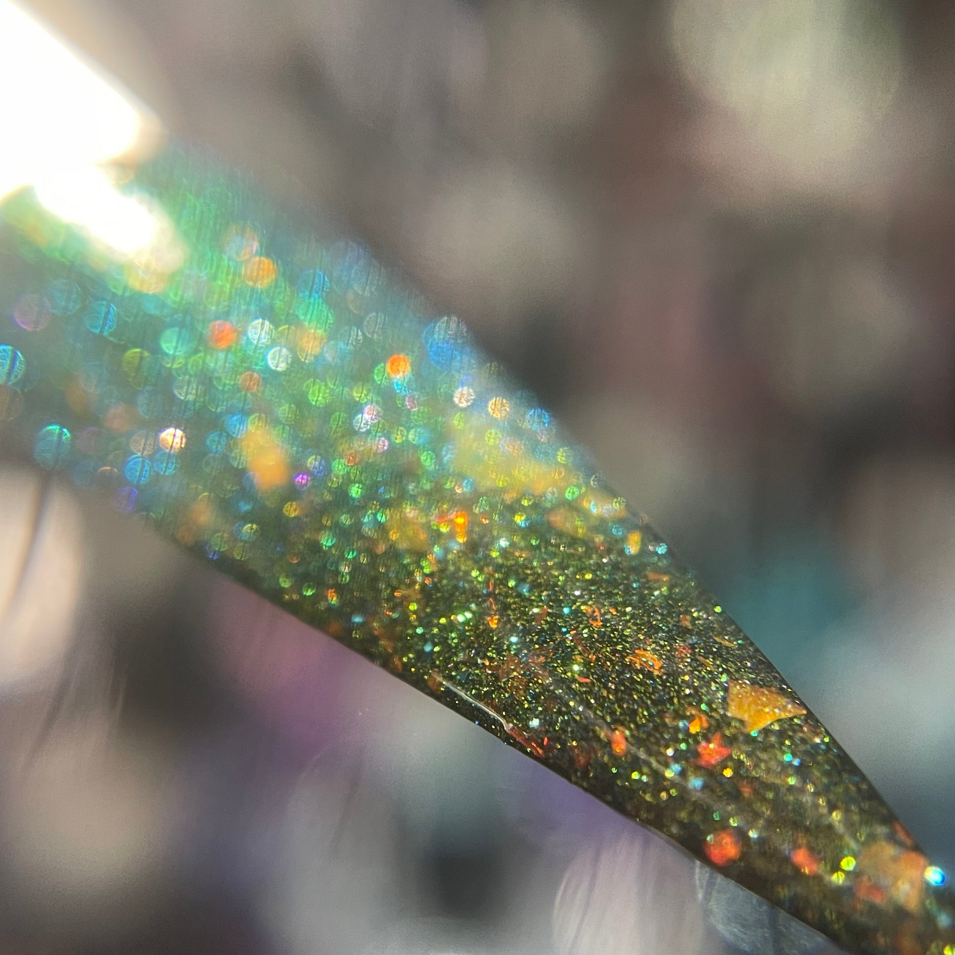 Bao Babex2-OGUP is a stunning shade bursting with gold to copper flakes and a rich green-gold shift that dances with every move. Its vibrant sparkle brings a magical glow that’s bound to turn heads and brighten any look with playful shimmer. Perfect for those who love a bit of extra sparkle and unique color play.