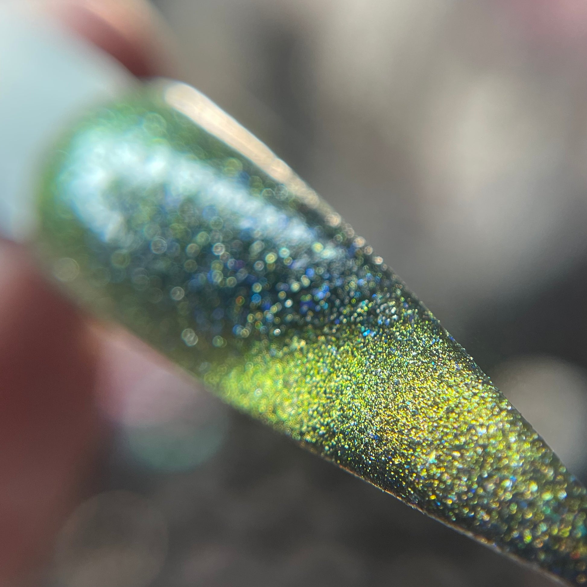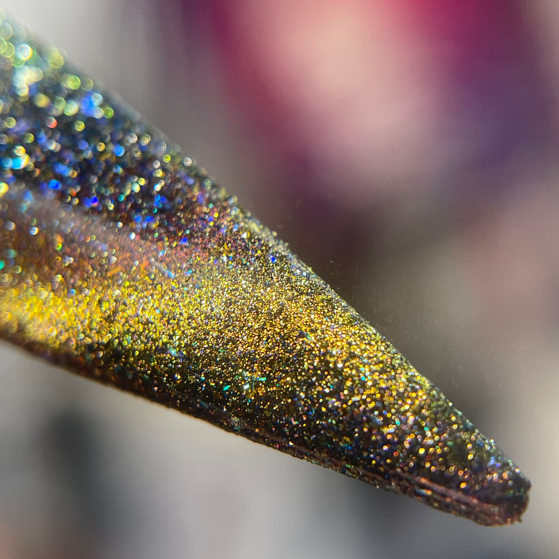 Heavy chrome magnetic shift…pink gold and magenta with flakes and holo and other elements