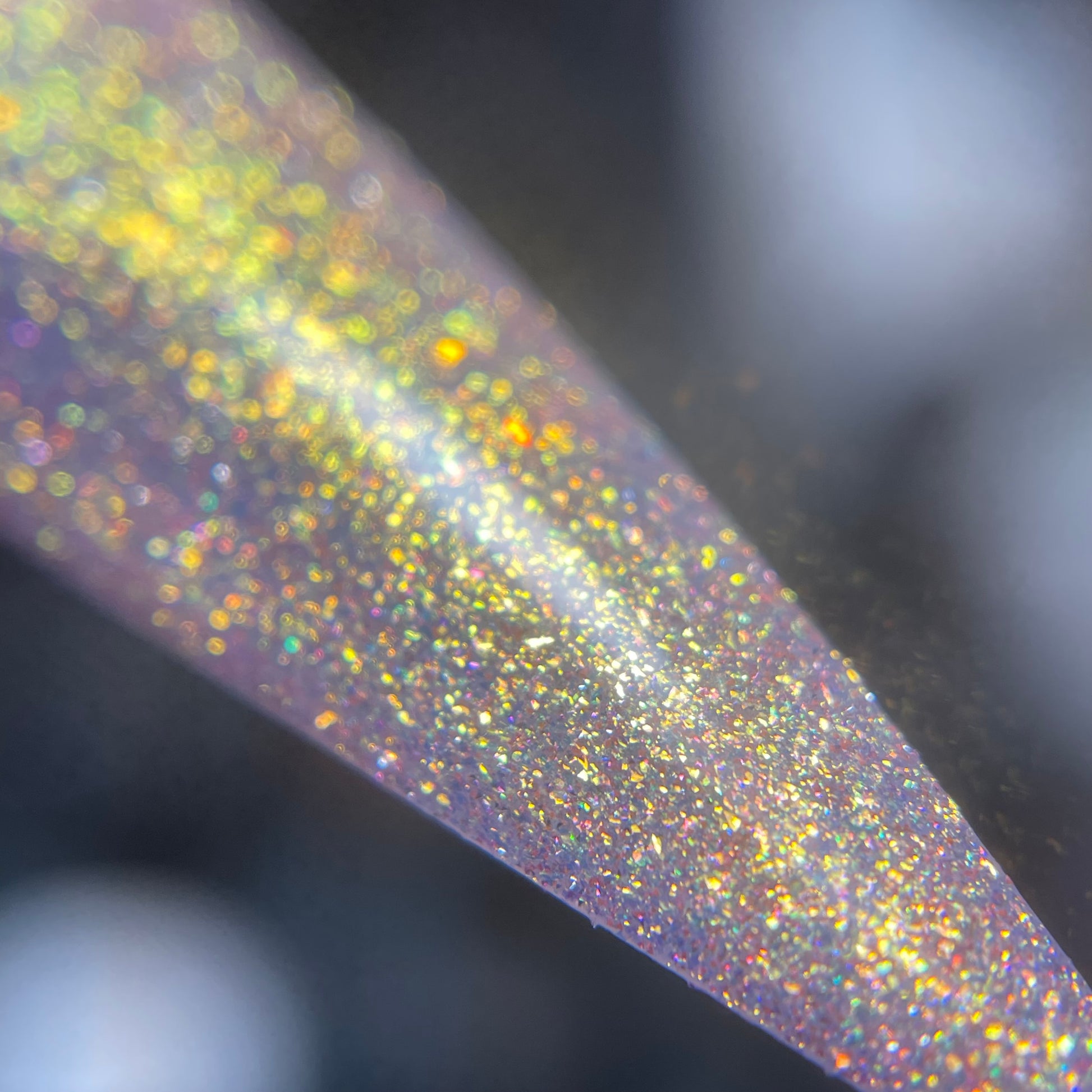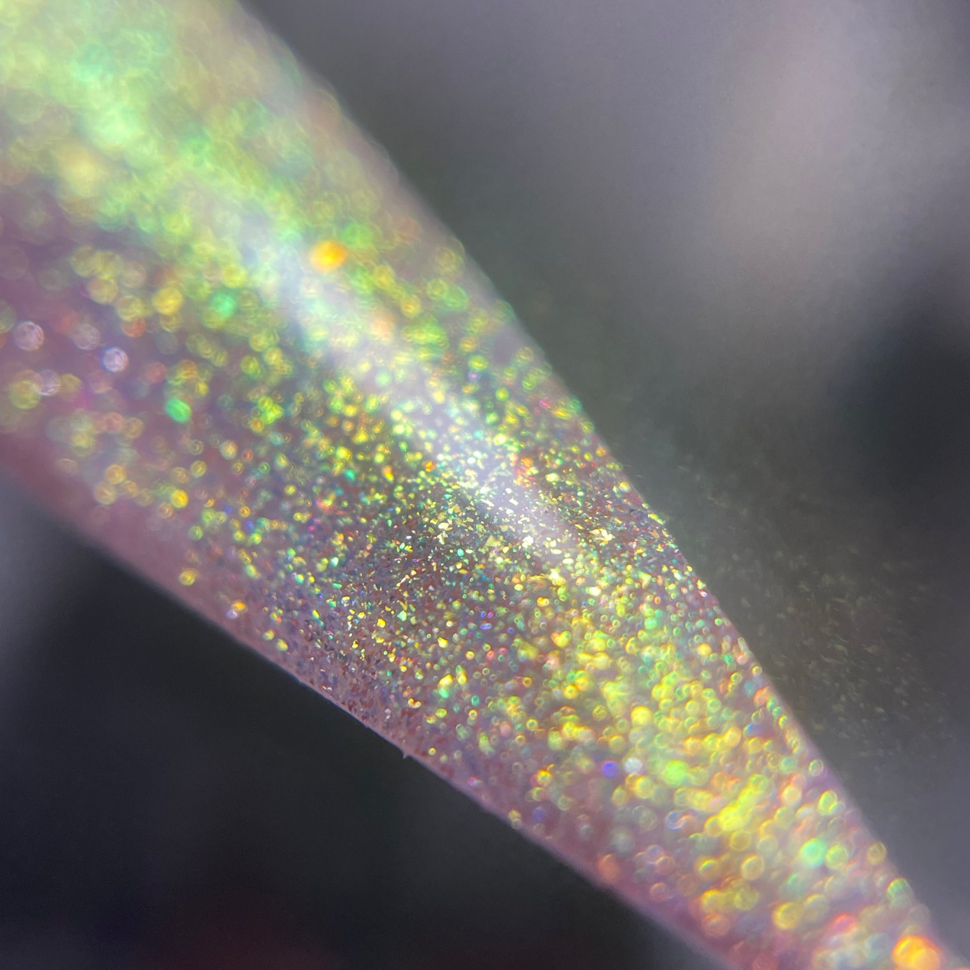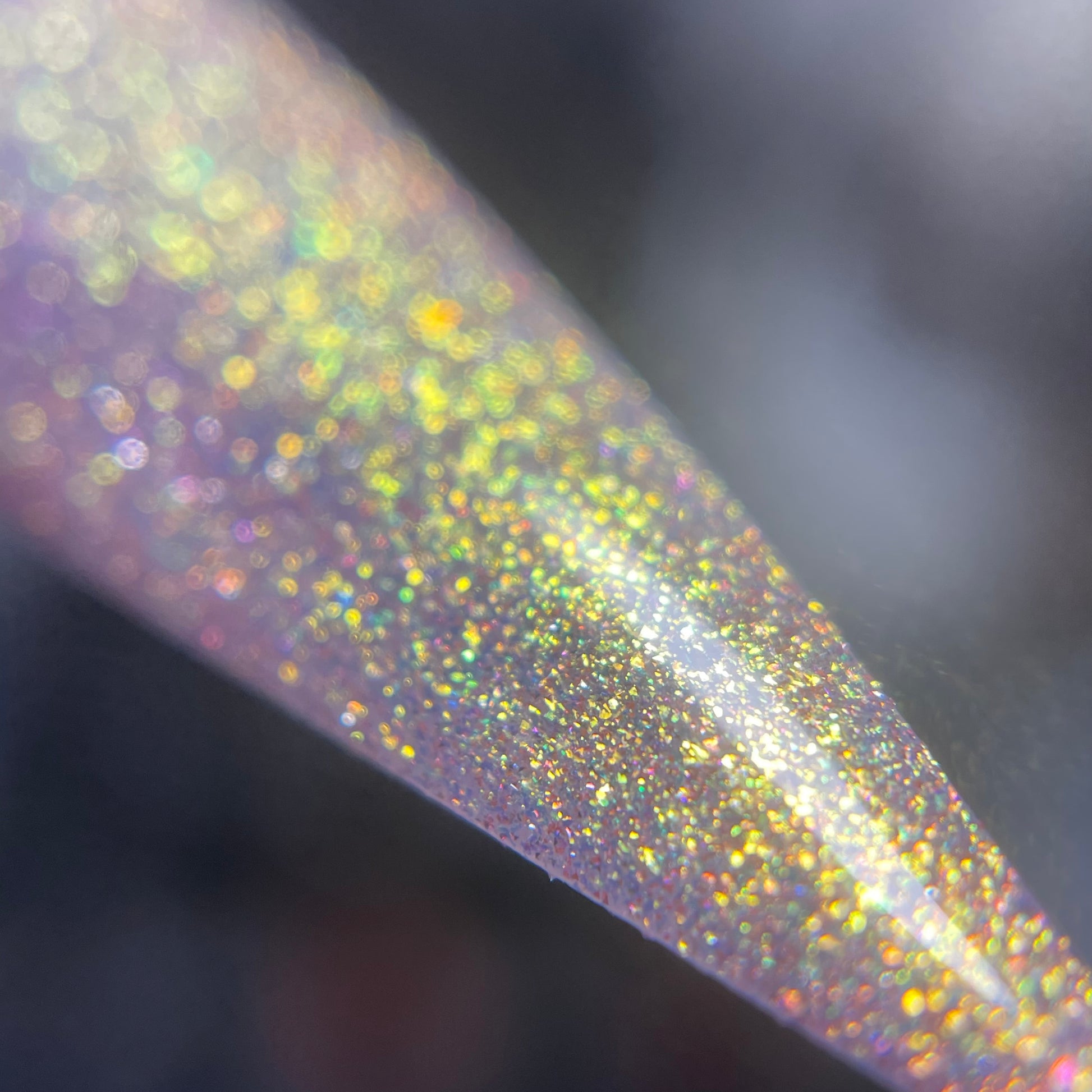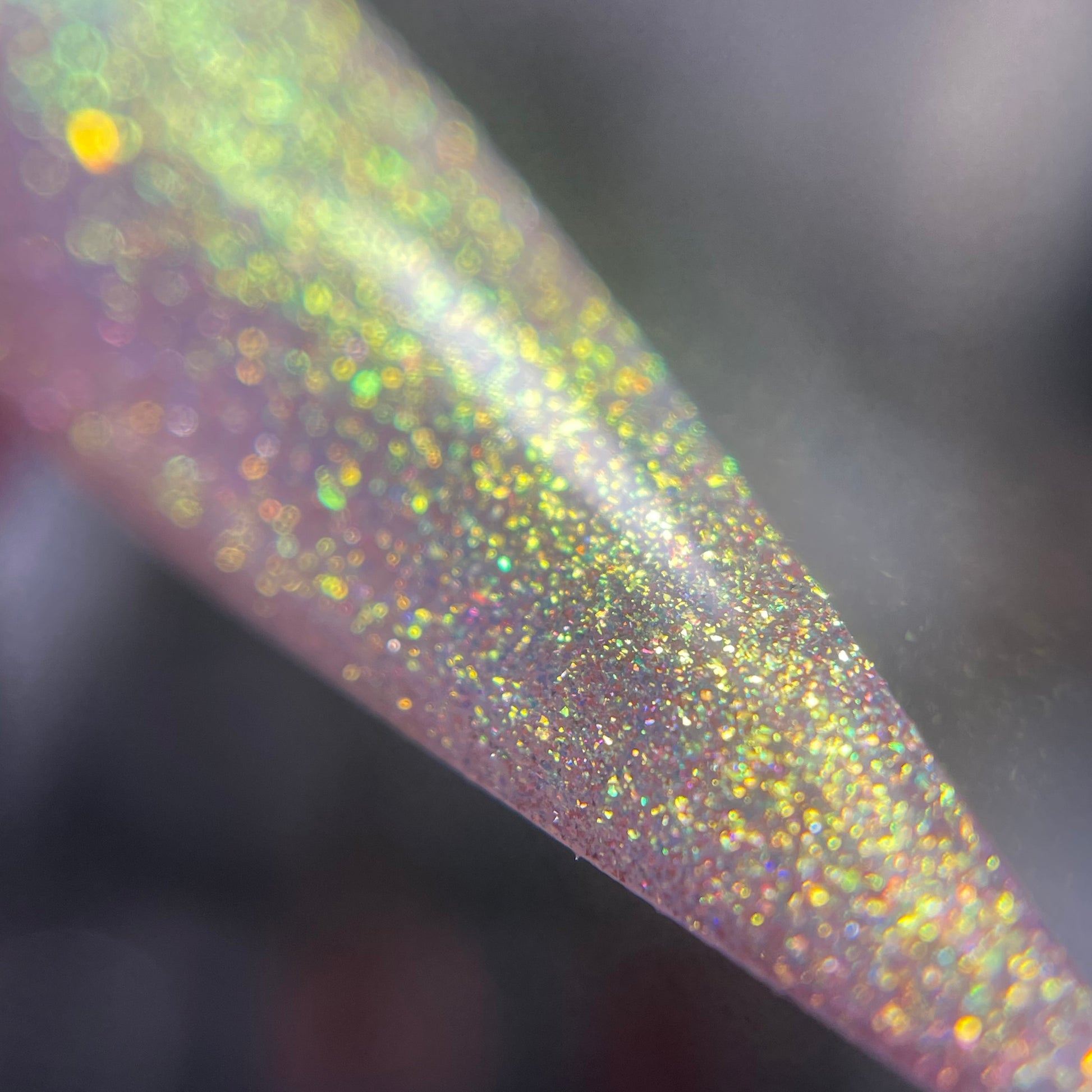 A purple/pink reflective with heavy gold shifts and copper flakes