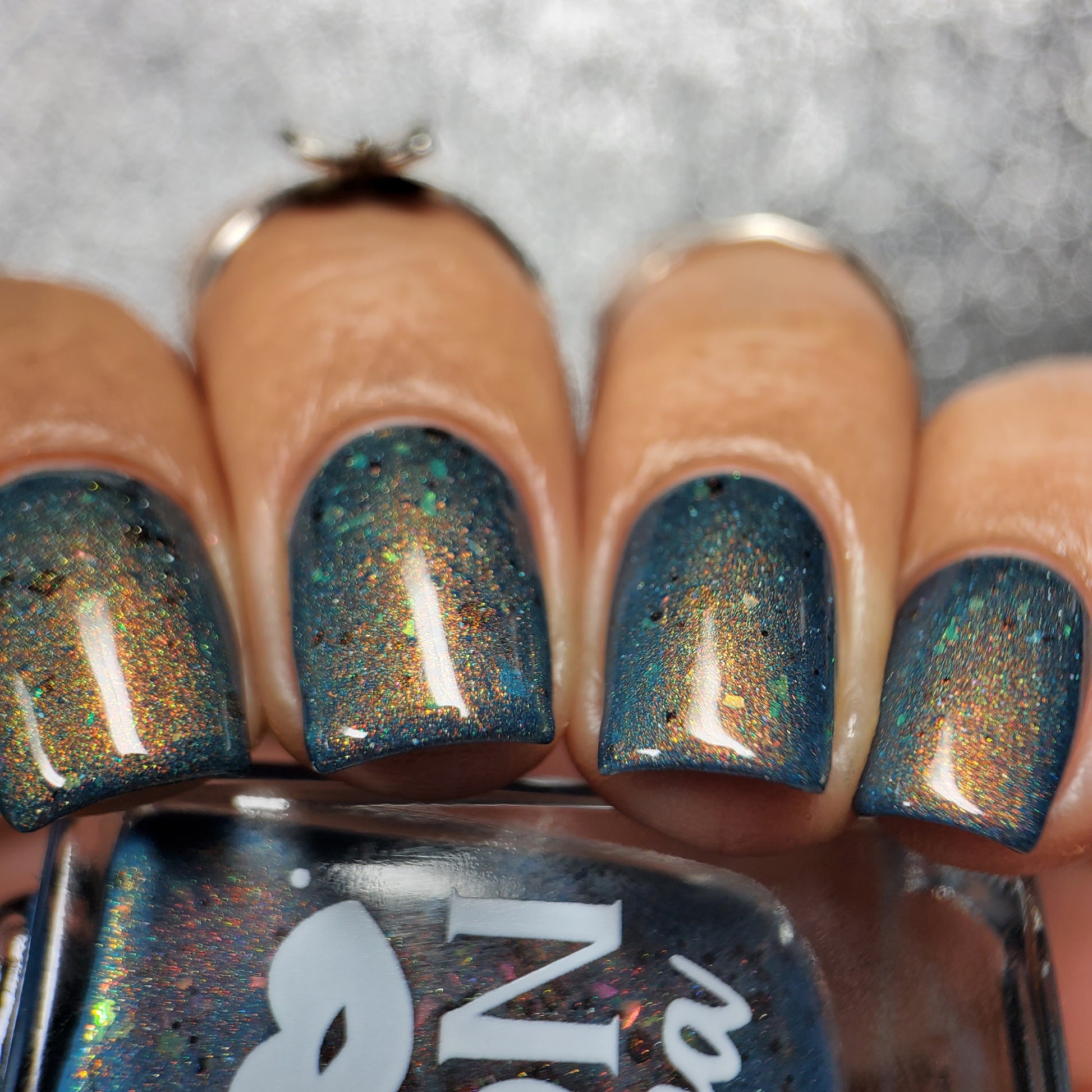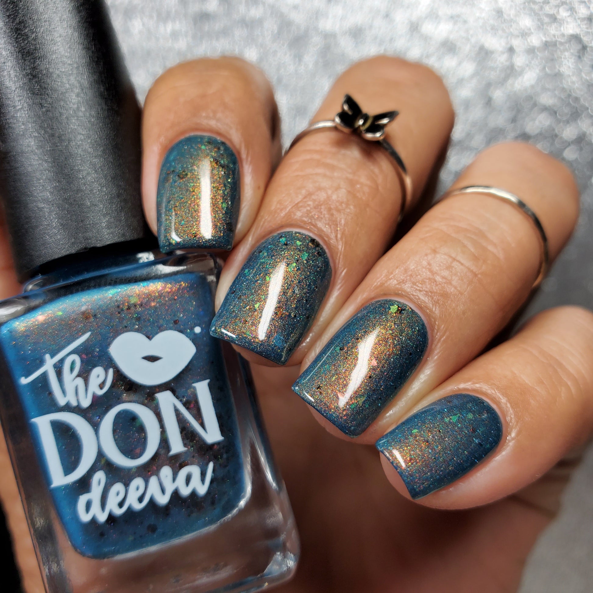 Conquer the night like the devil with this daring polish inspired by 'American Horror Story'. Revel in the dusty blue hue with shimmer and glitters - take the plunge and make a statement!
