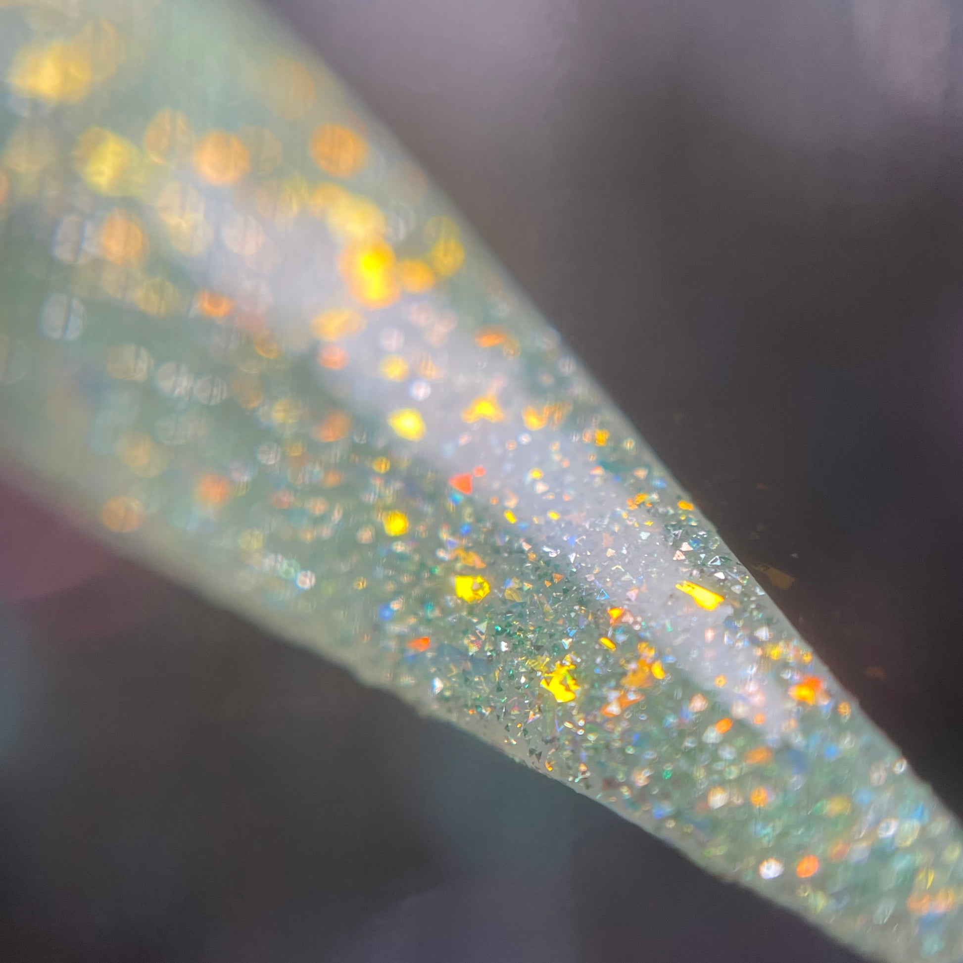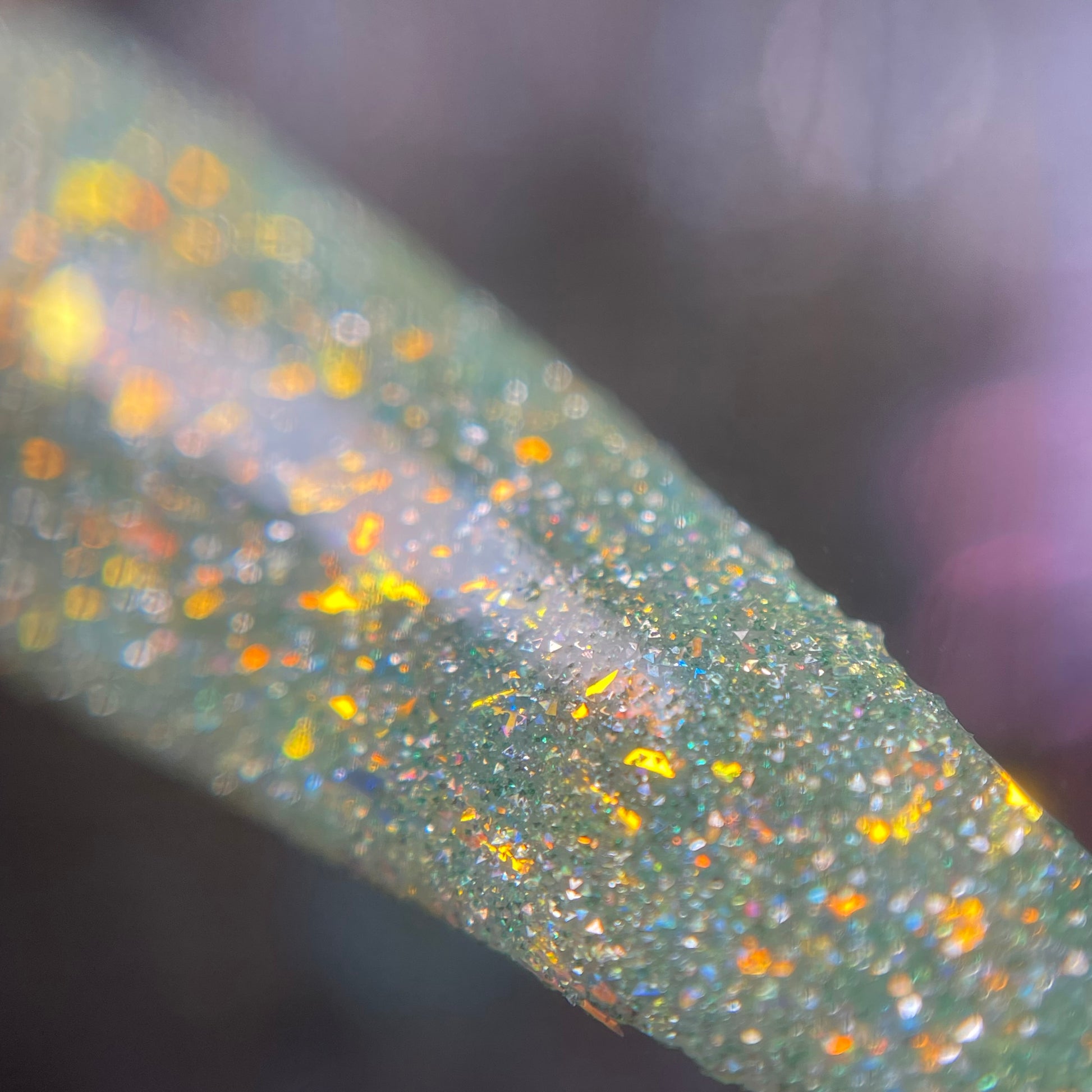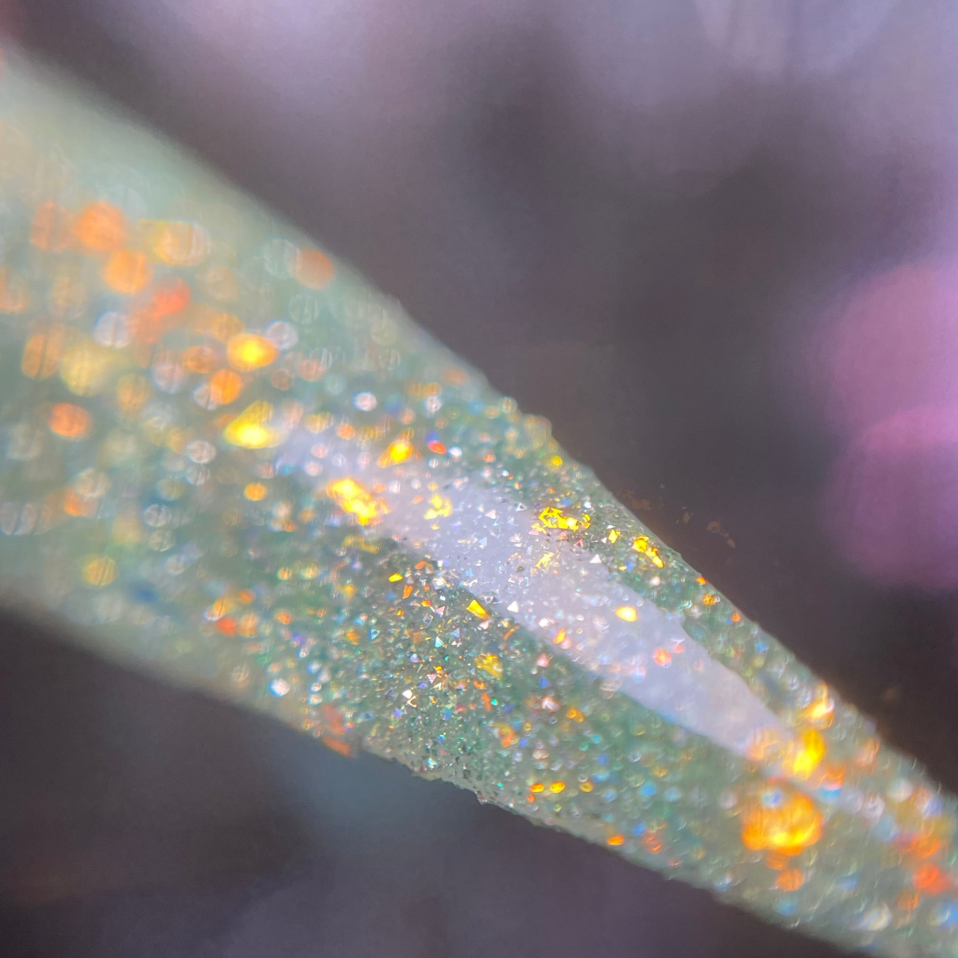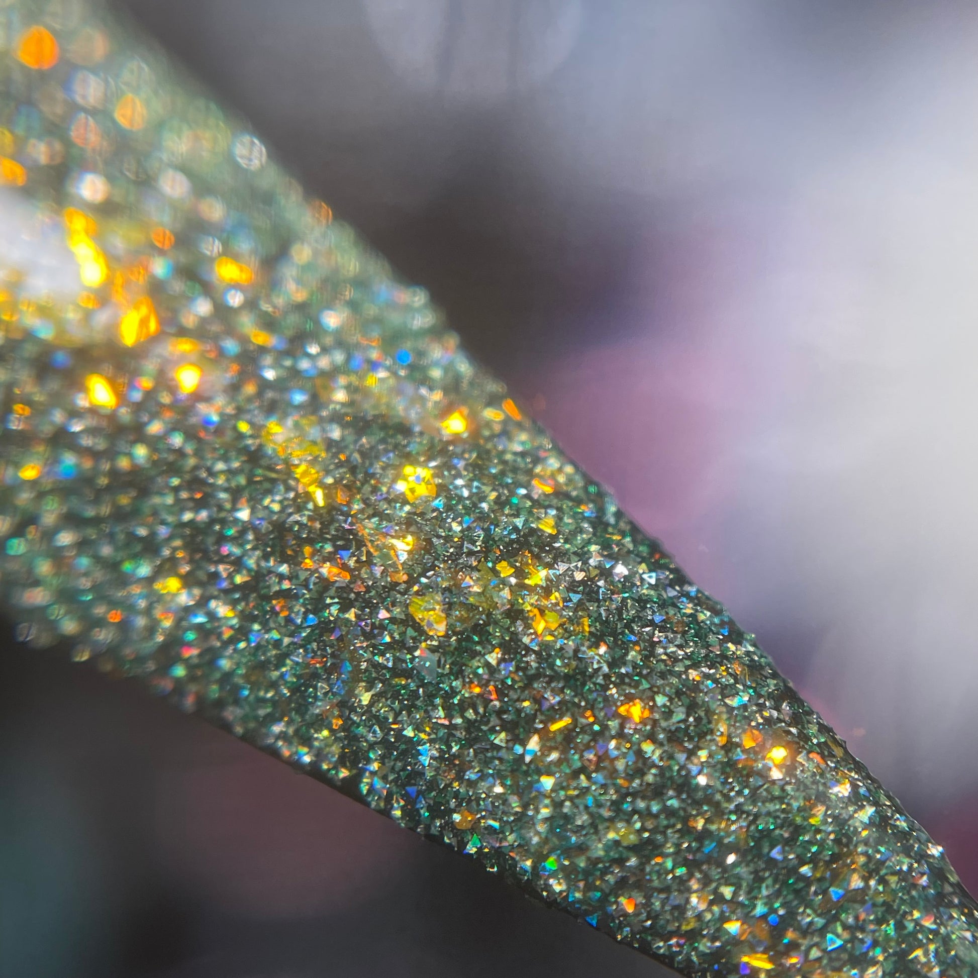 lime green reflective with all kinda elements and beautiful flakes, our non gel formula will give you good wear time without the harmful nailĀ