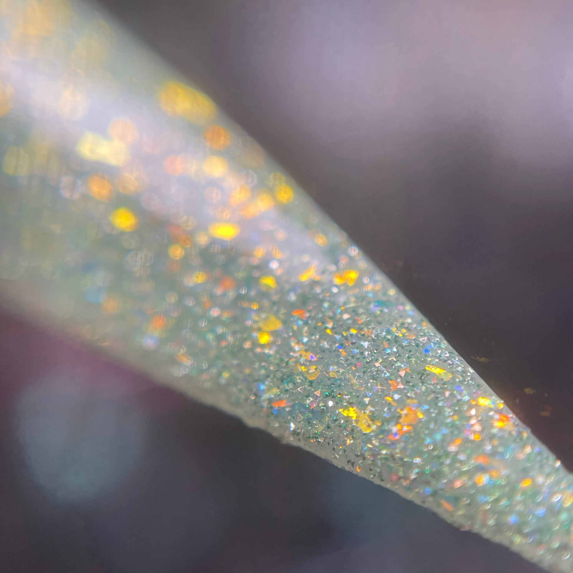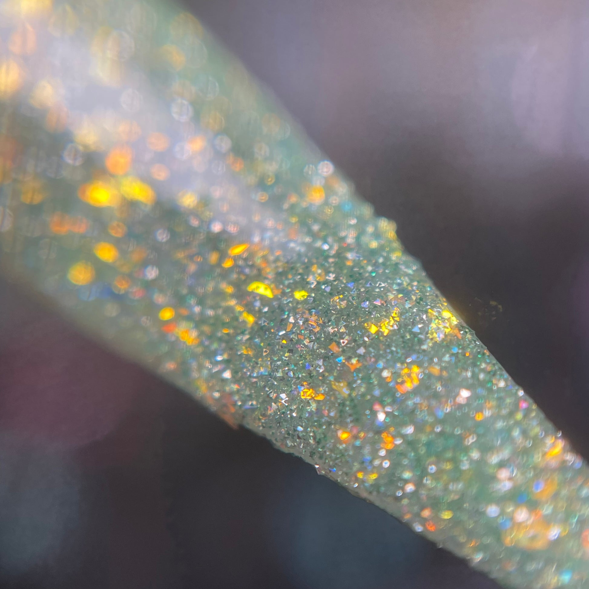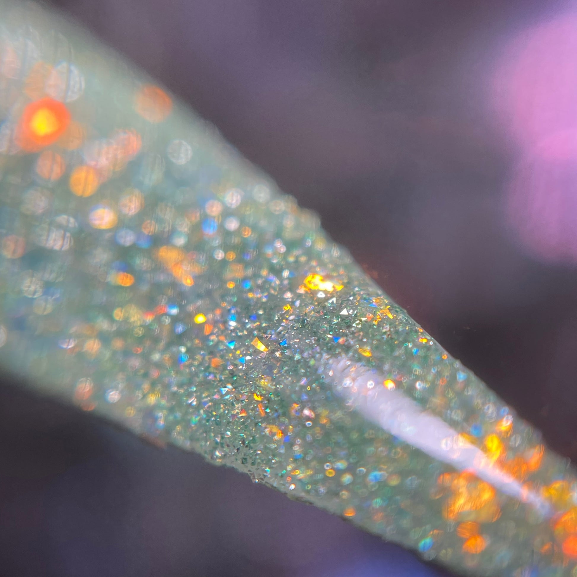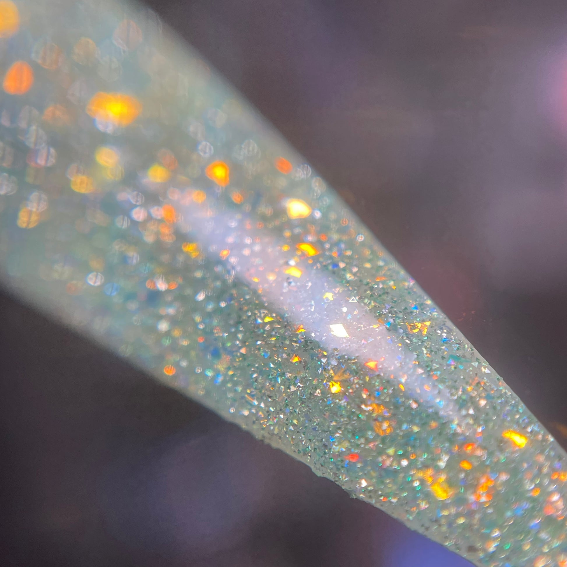 lime green reflective with all kinda elements and beautiful flakes, our non gel formula will give you good wear time without the harmful nailĀ