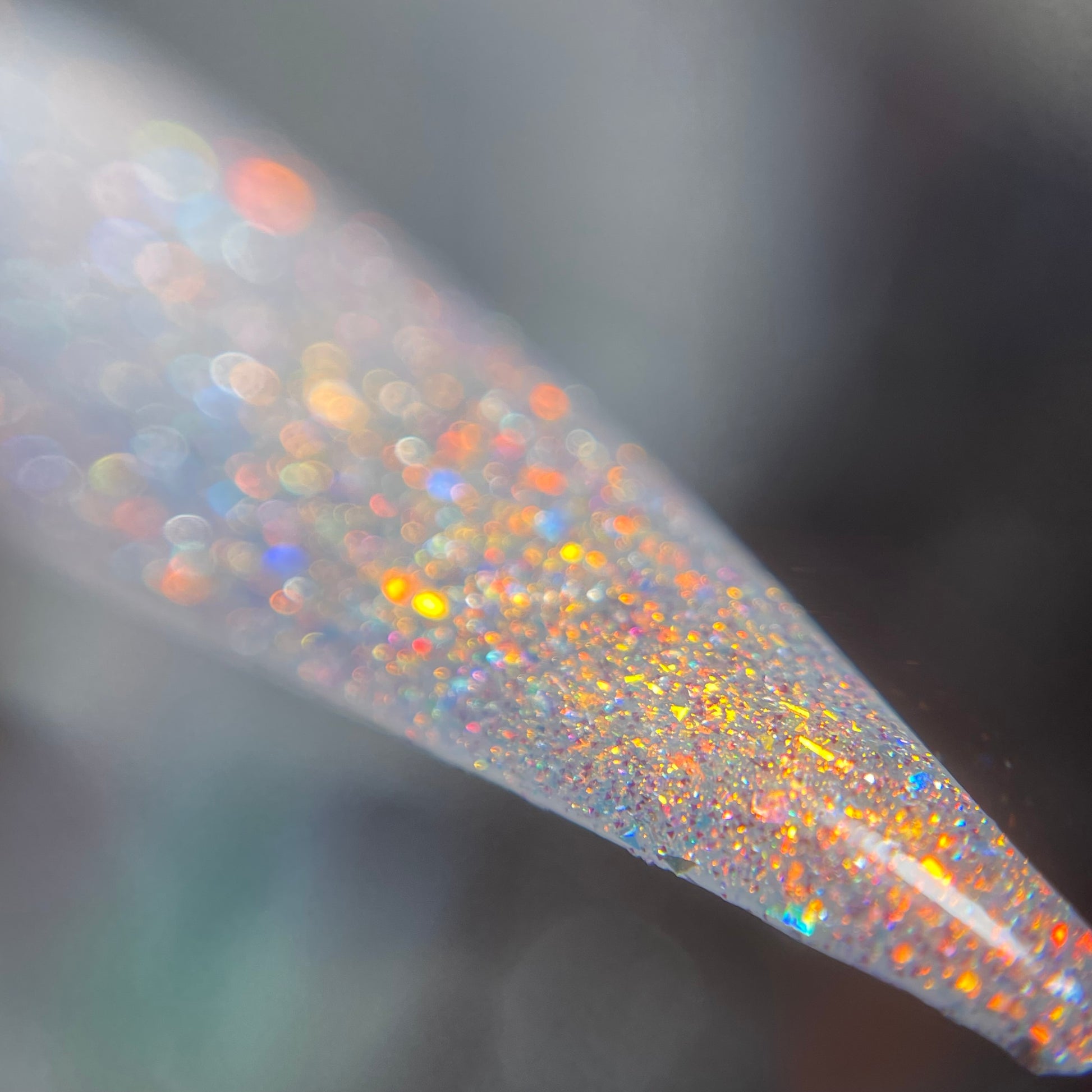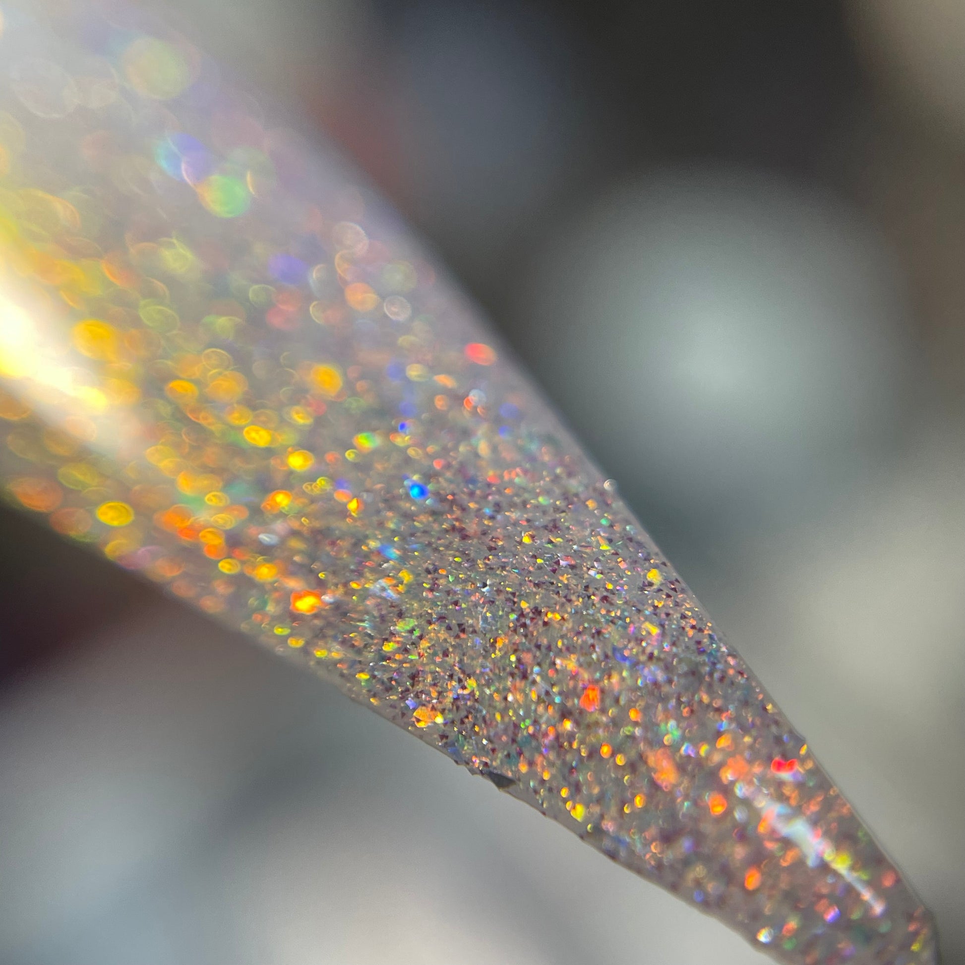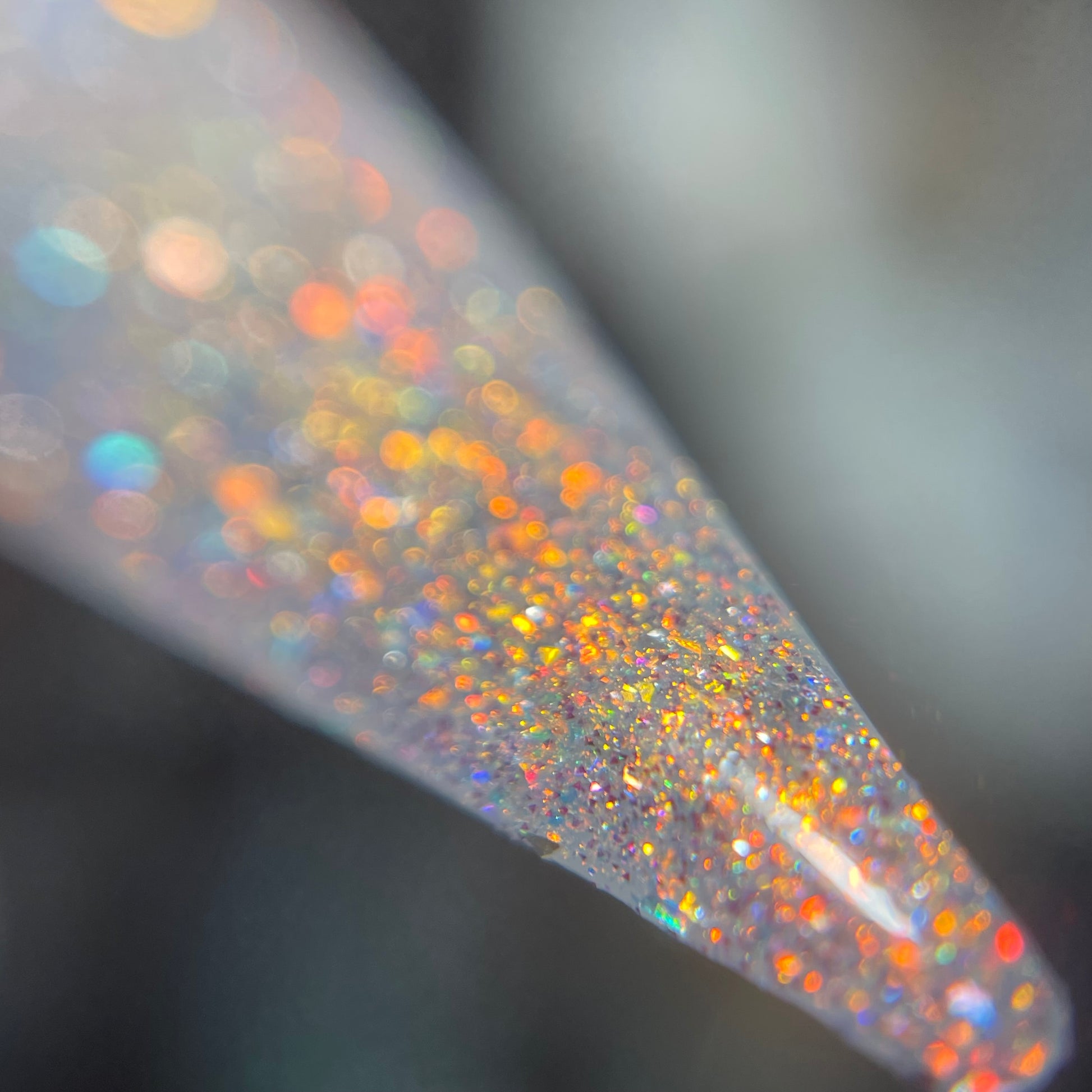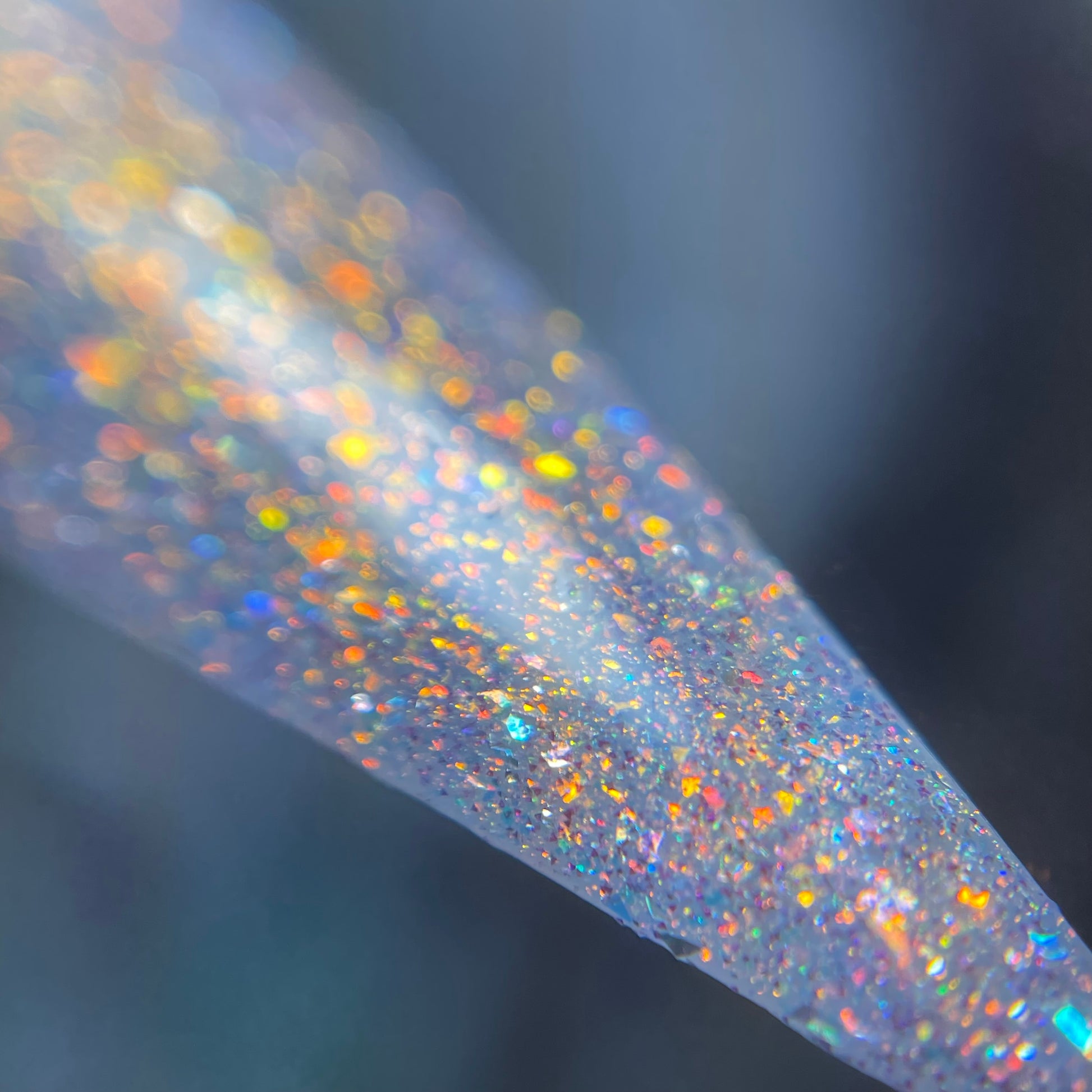 a beautiful translucent shade with purple elements and unicorn pee in red to green and a bunch of sparkly elements