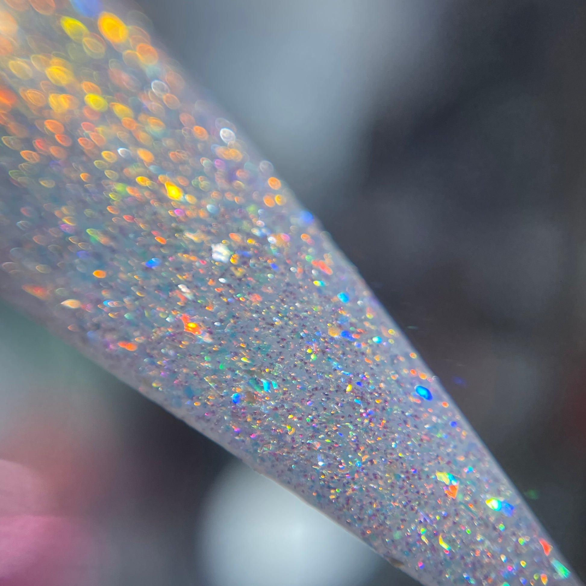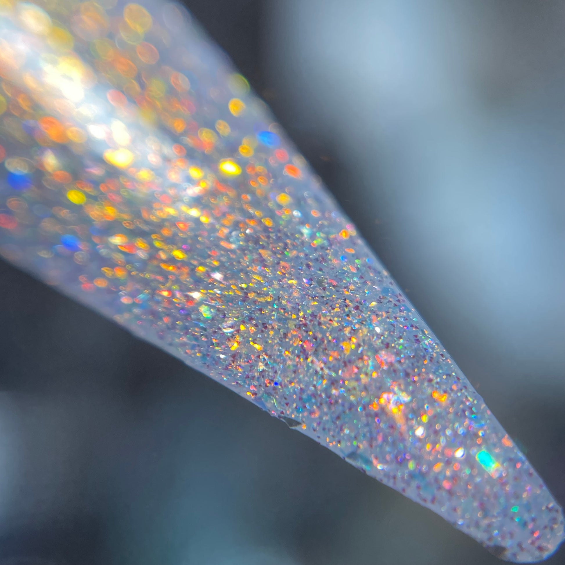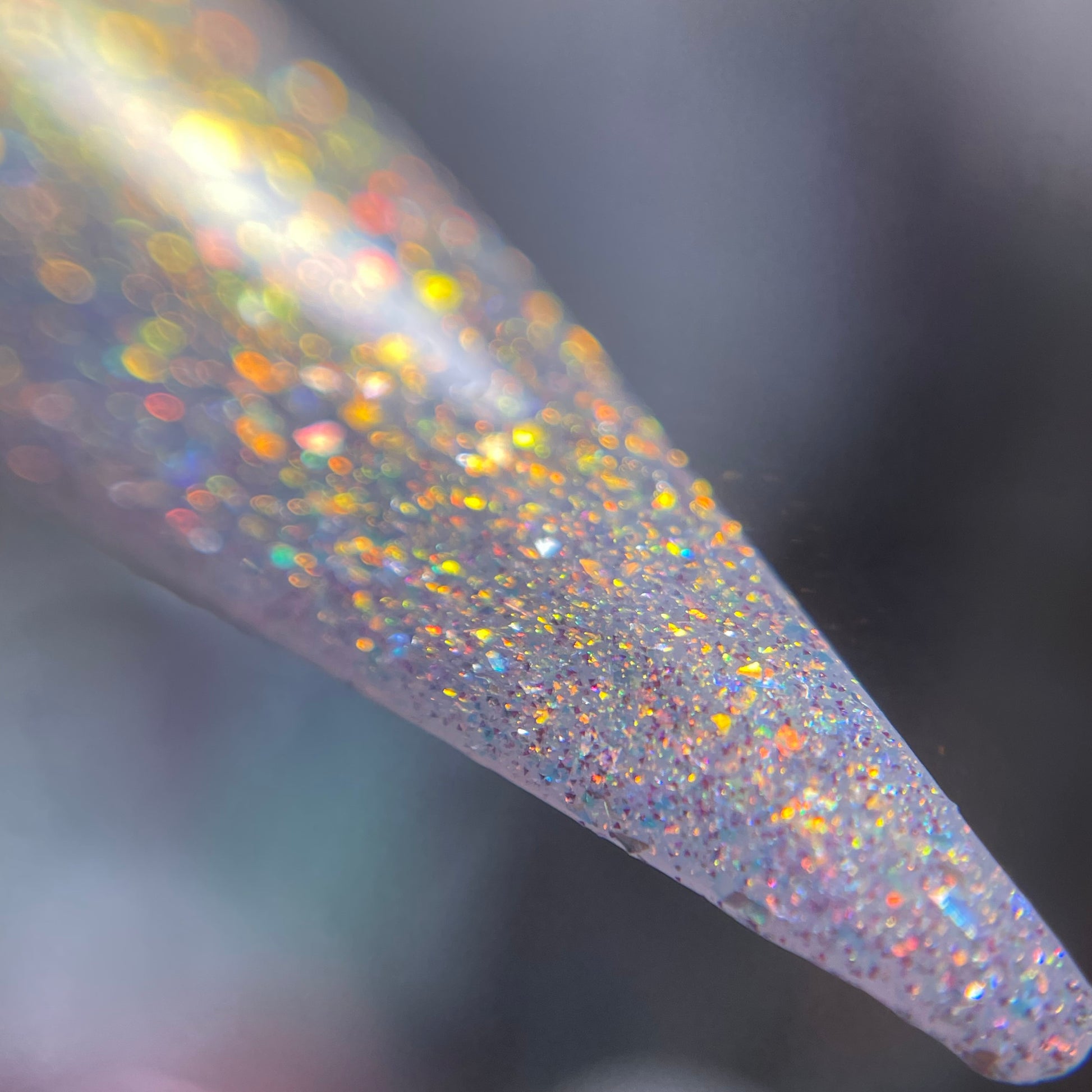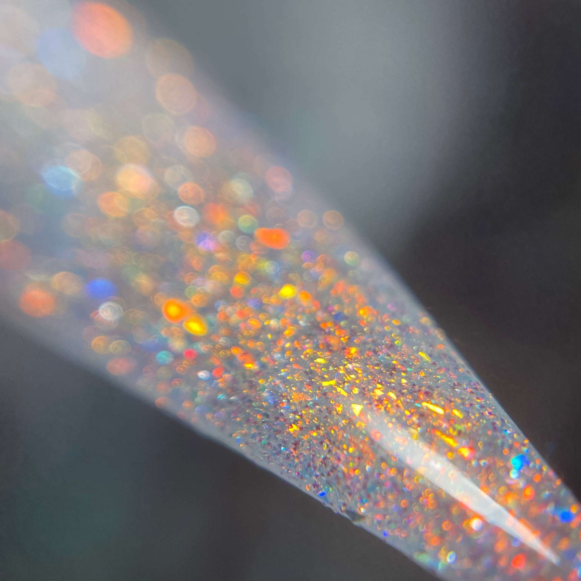 a beautiful translucent shade with purple elements and unicorn pee in red to green and a bunch of sparkly elements