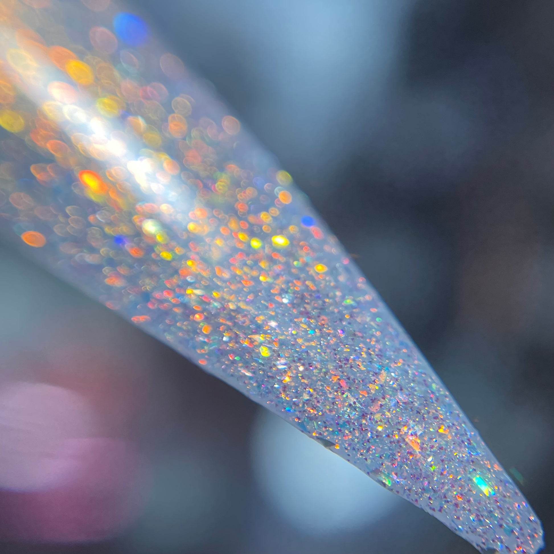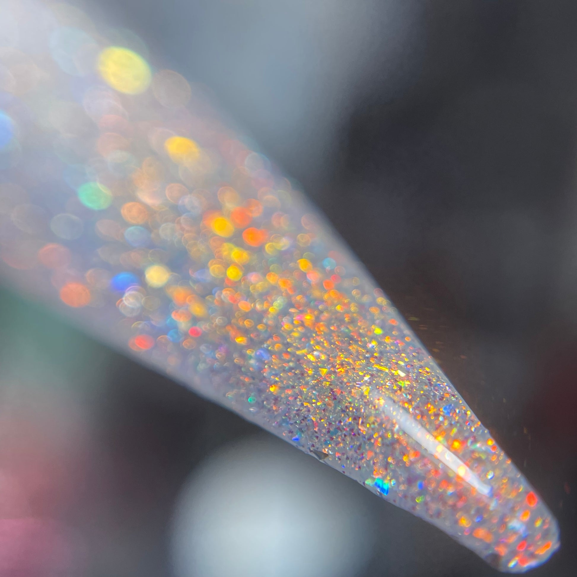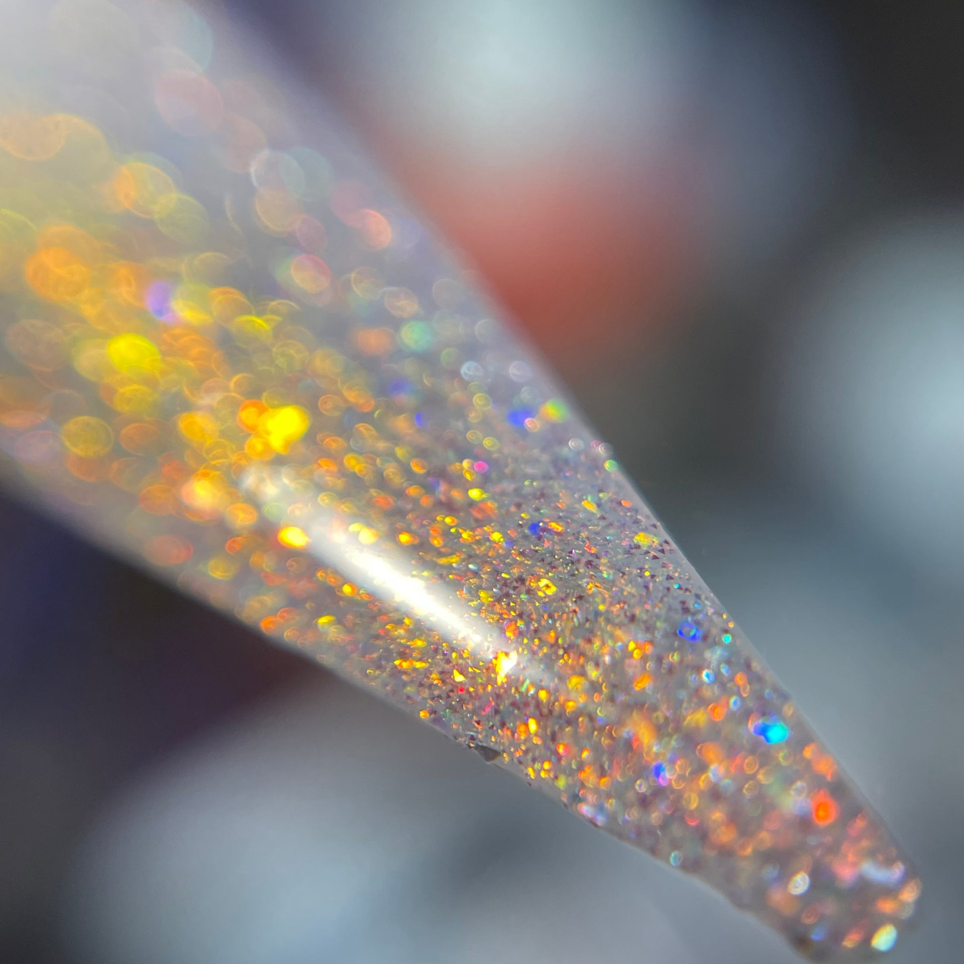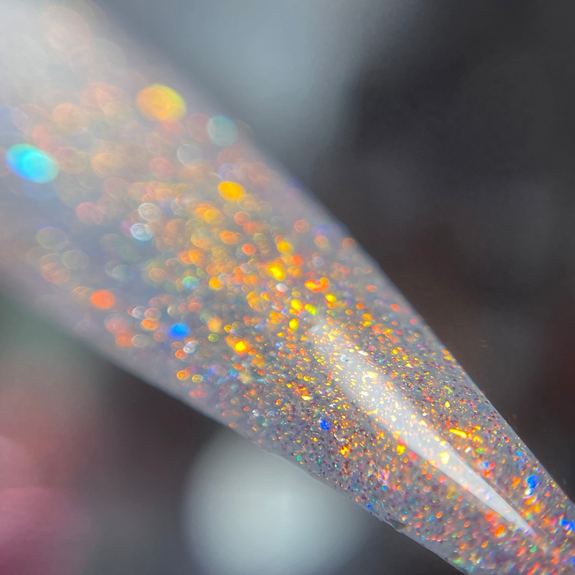 a beautiful translucent shade with purple elements and unicorn pee in red to green and a bunch of sparkly elements