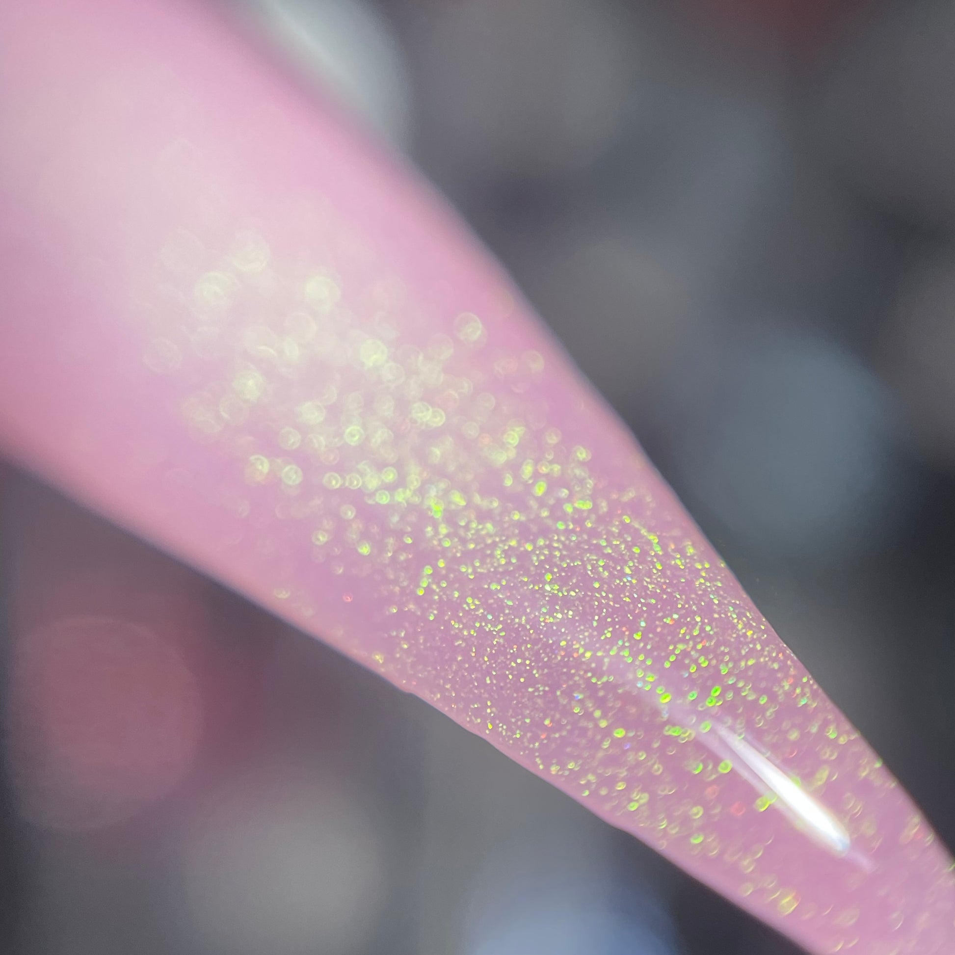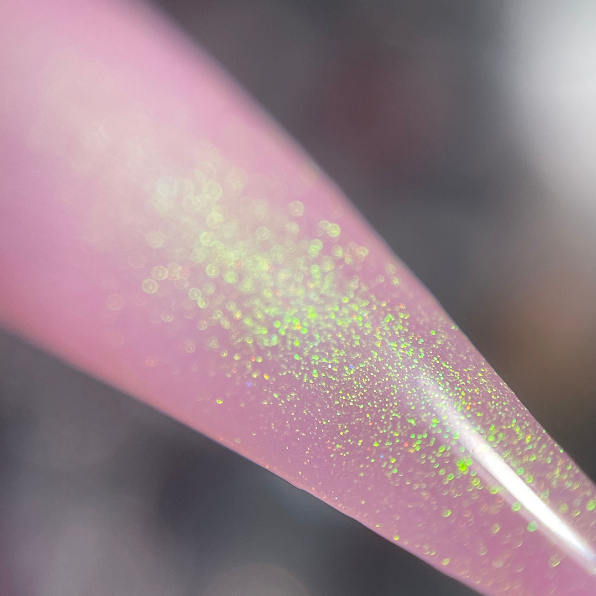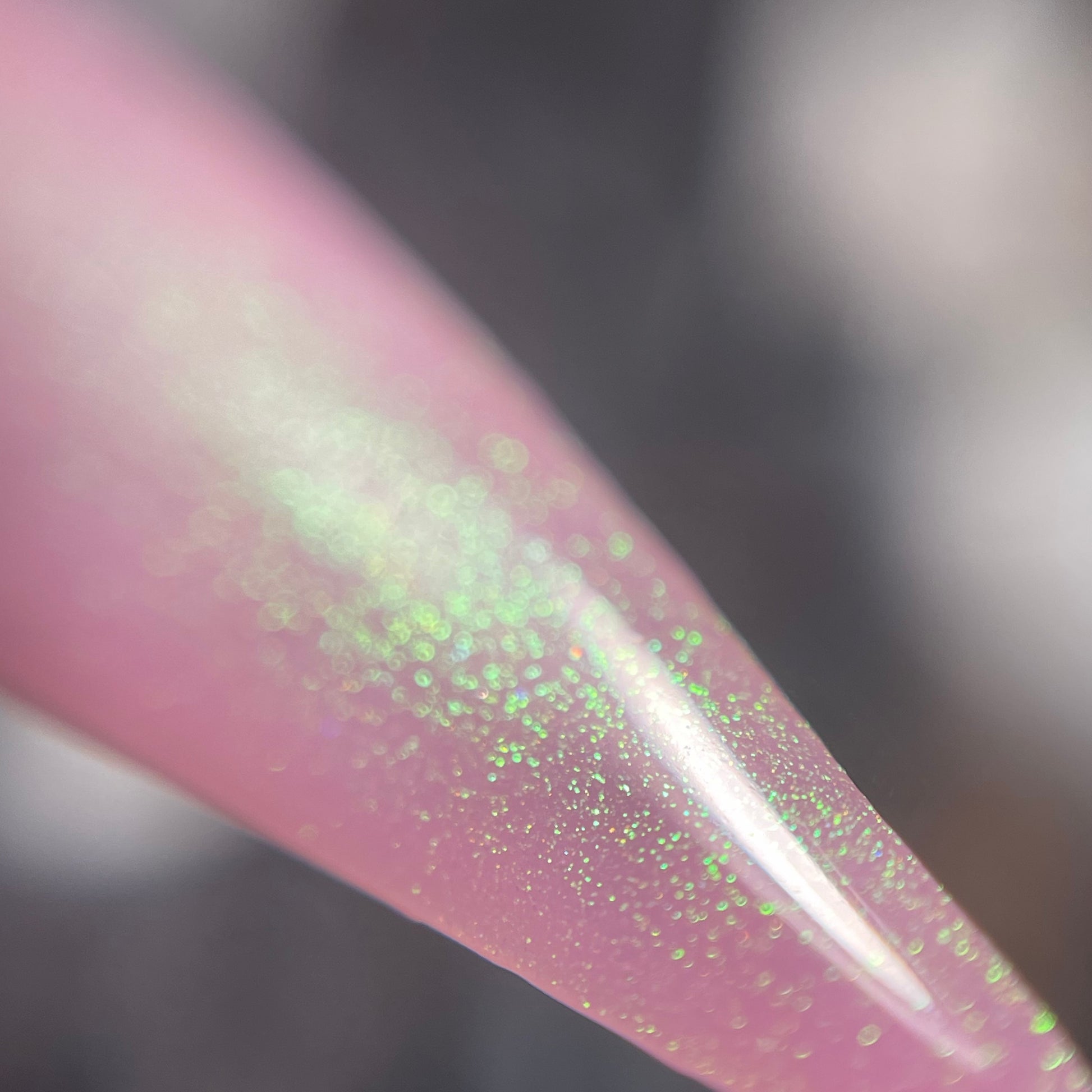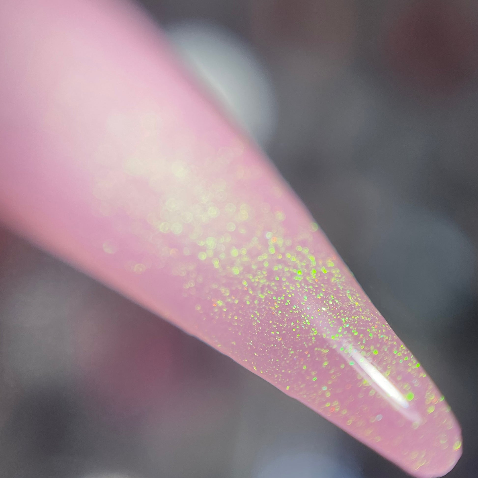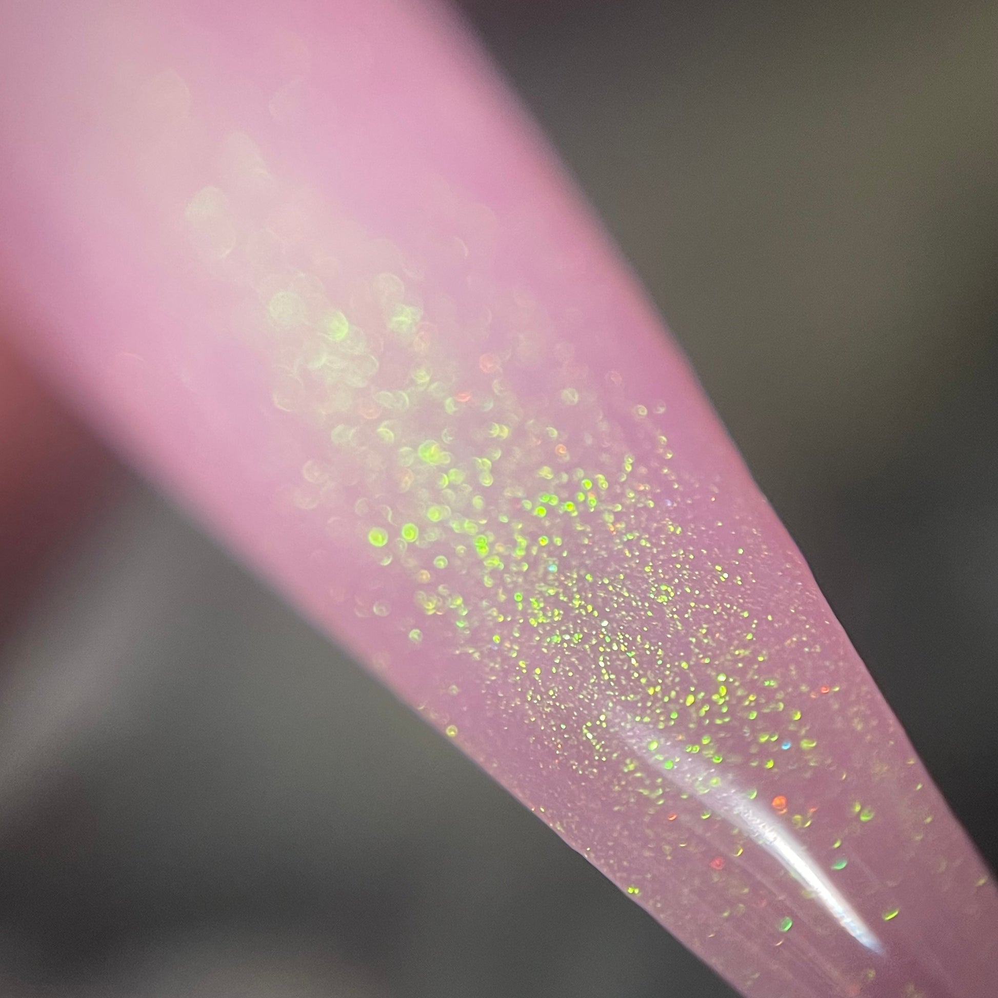 a delicate dusty rose pink shade with green gold unicorn pigment.