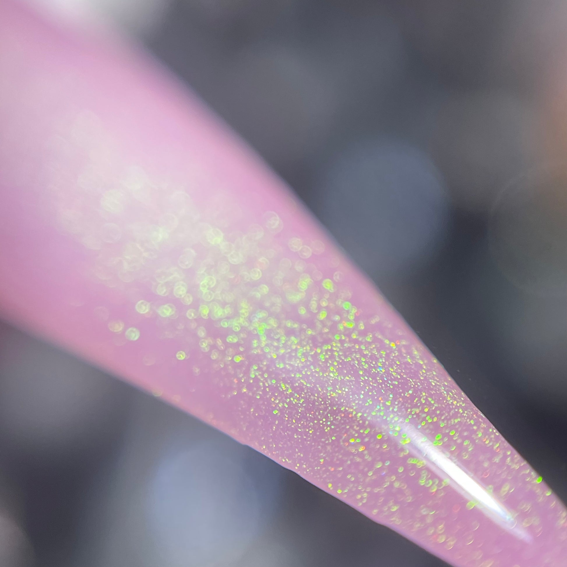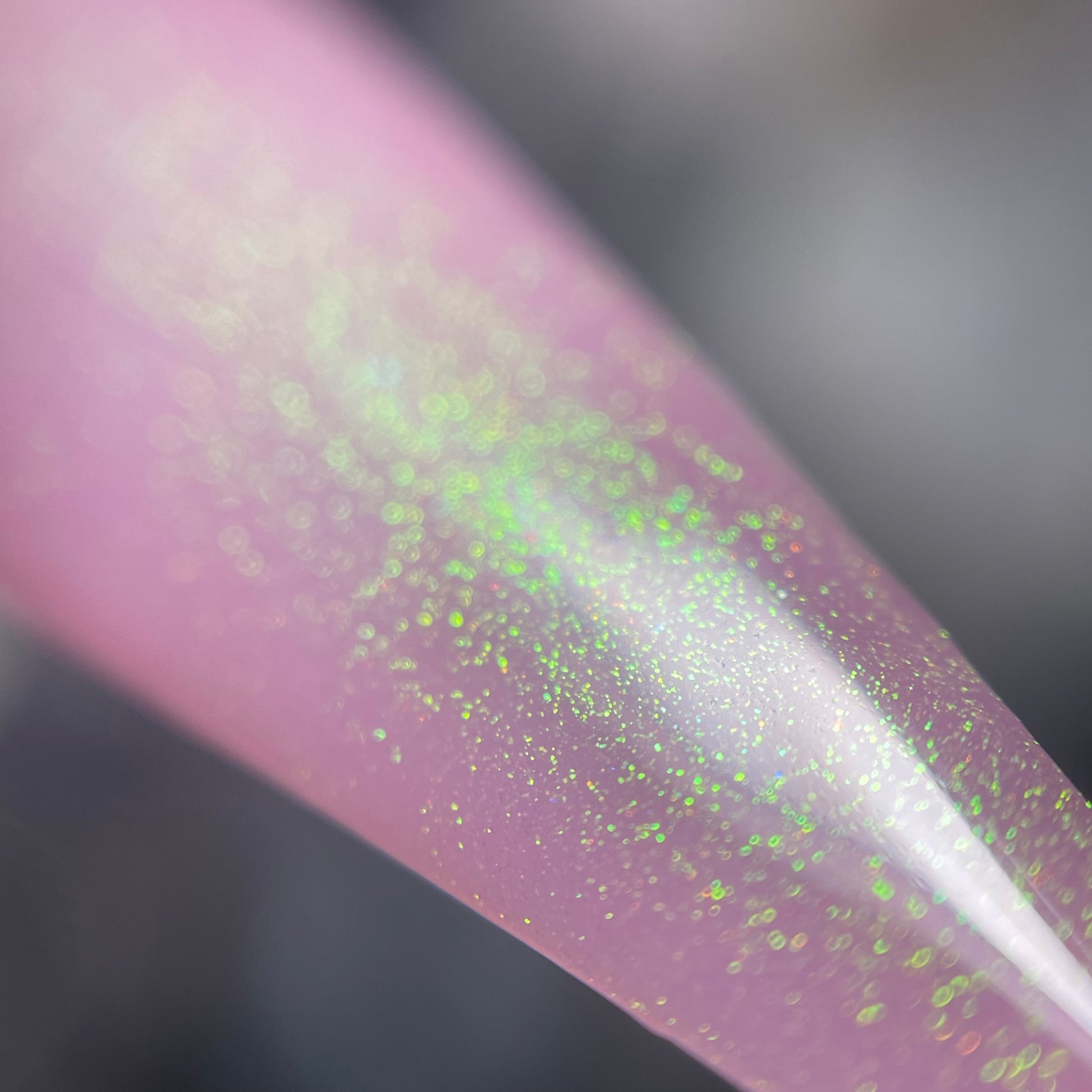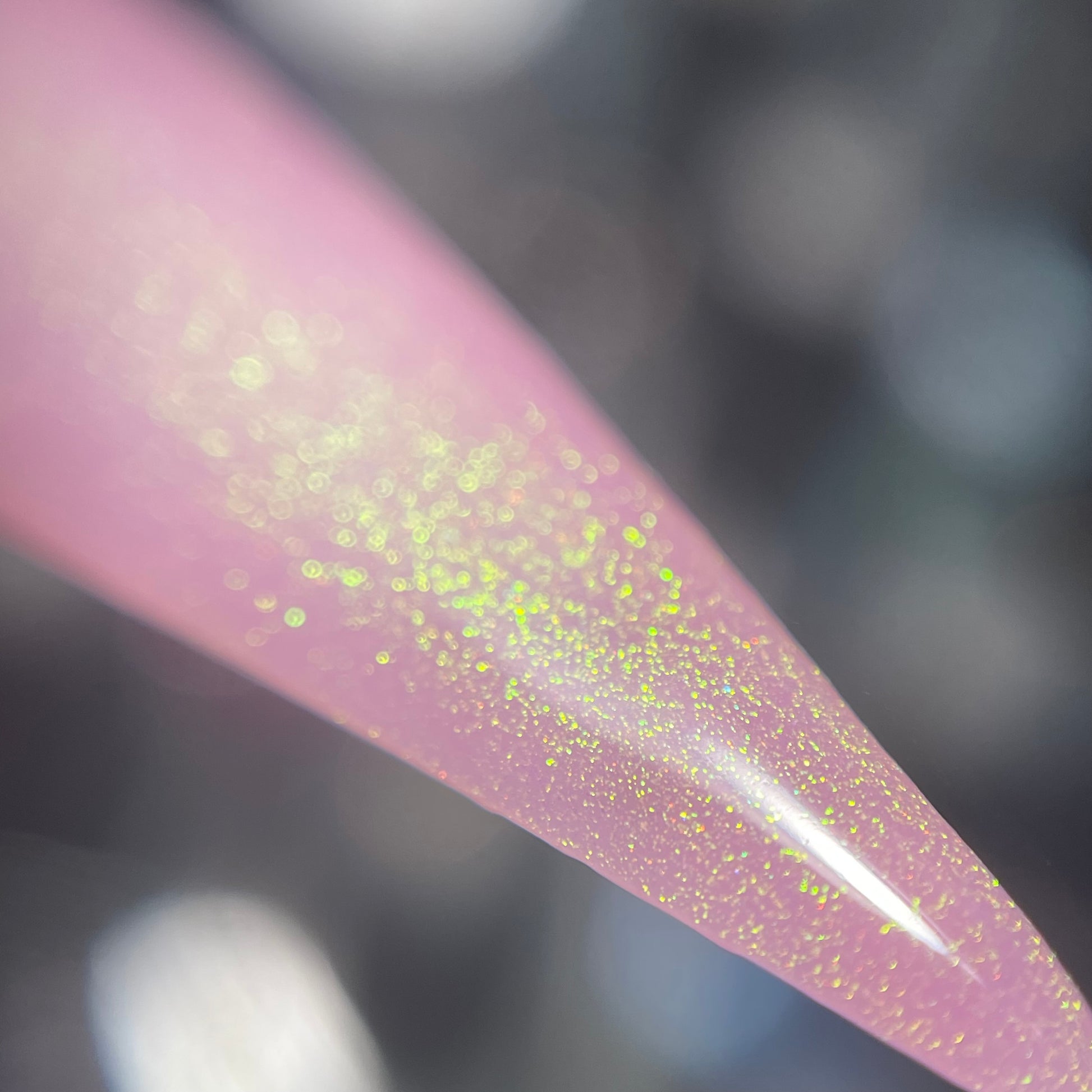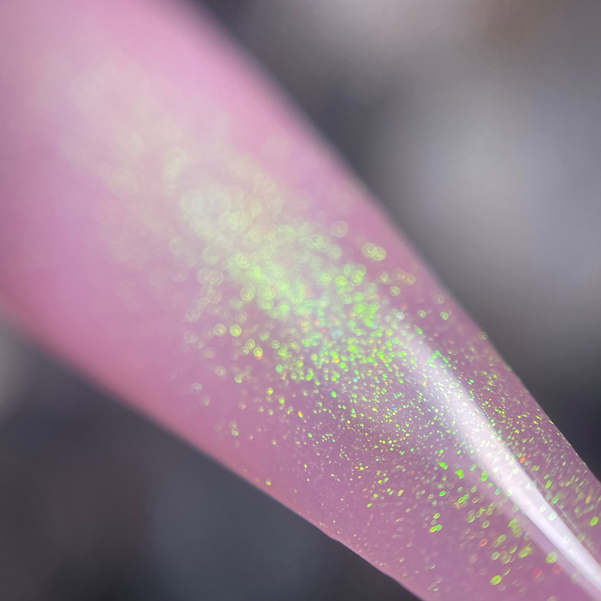 a delicate dusty rose pink shade with green gold unicorn pigment.