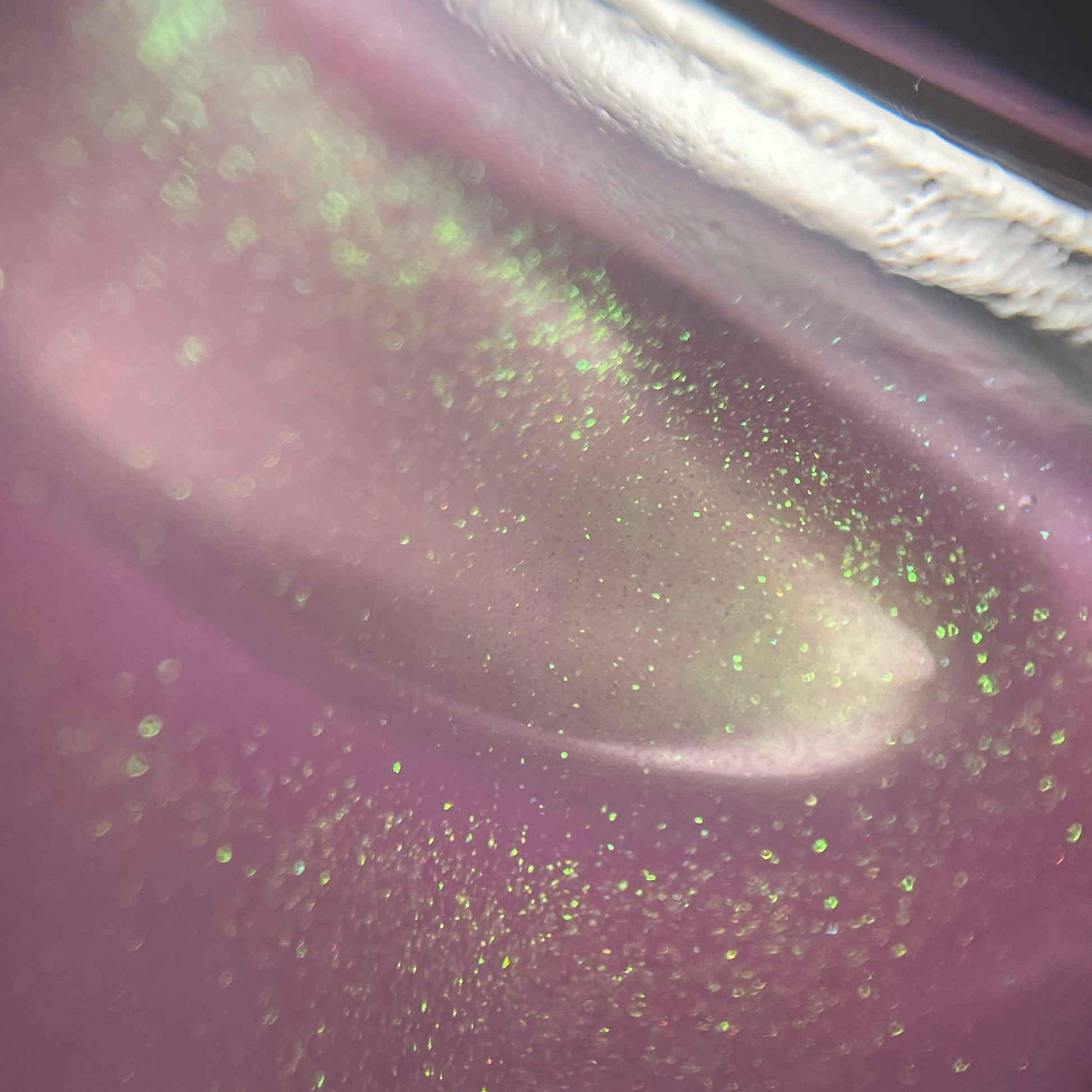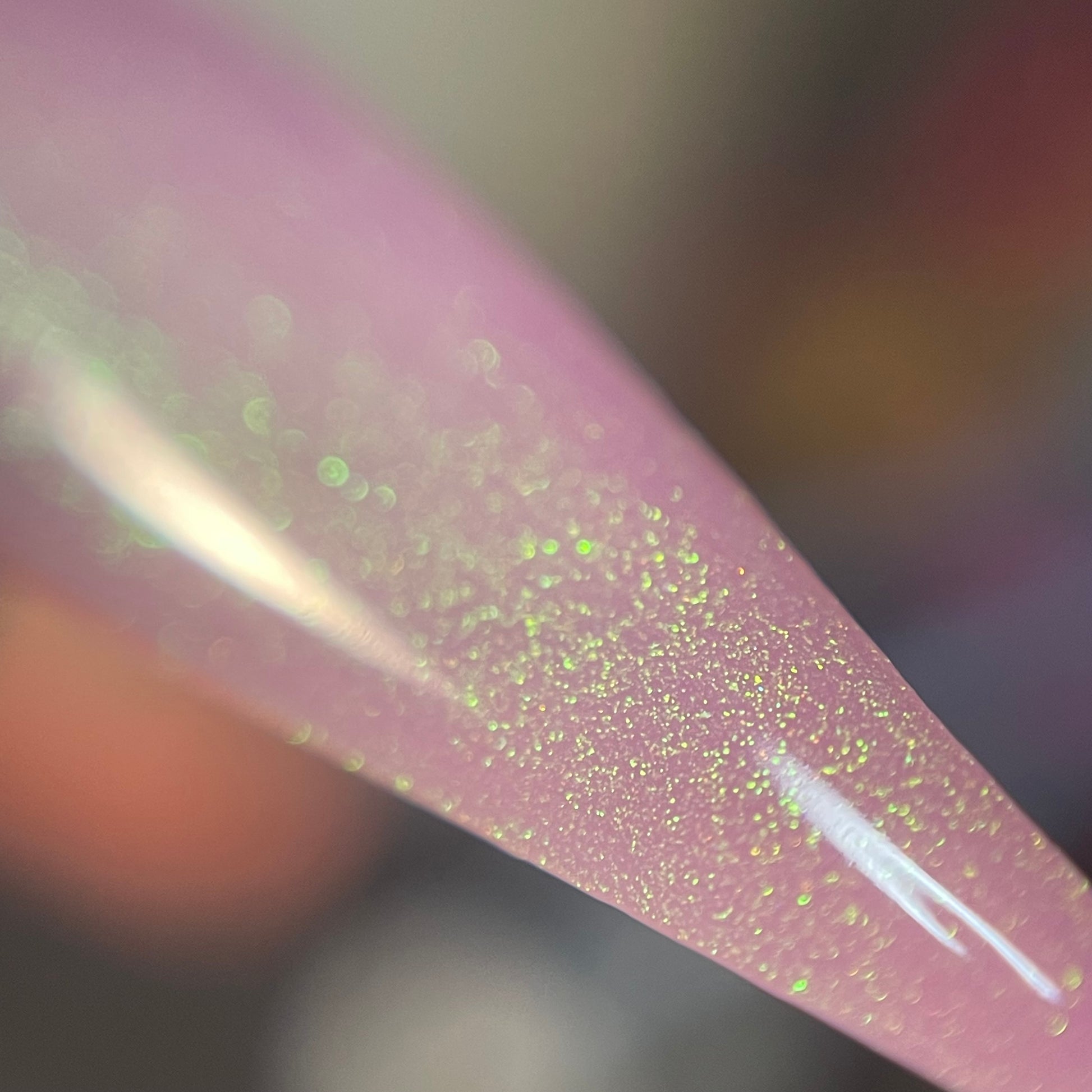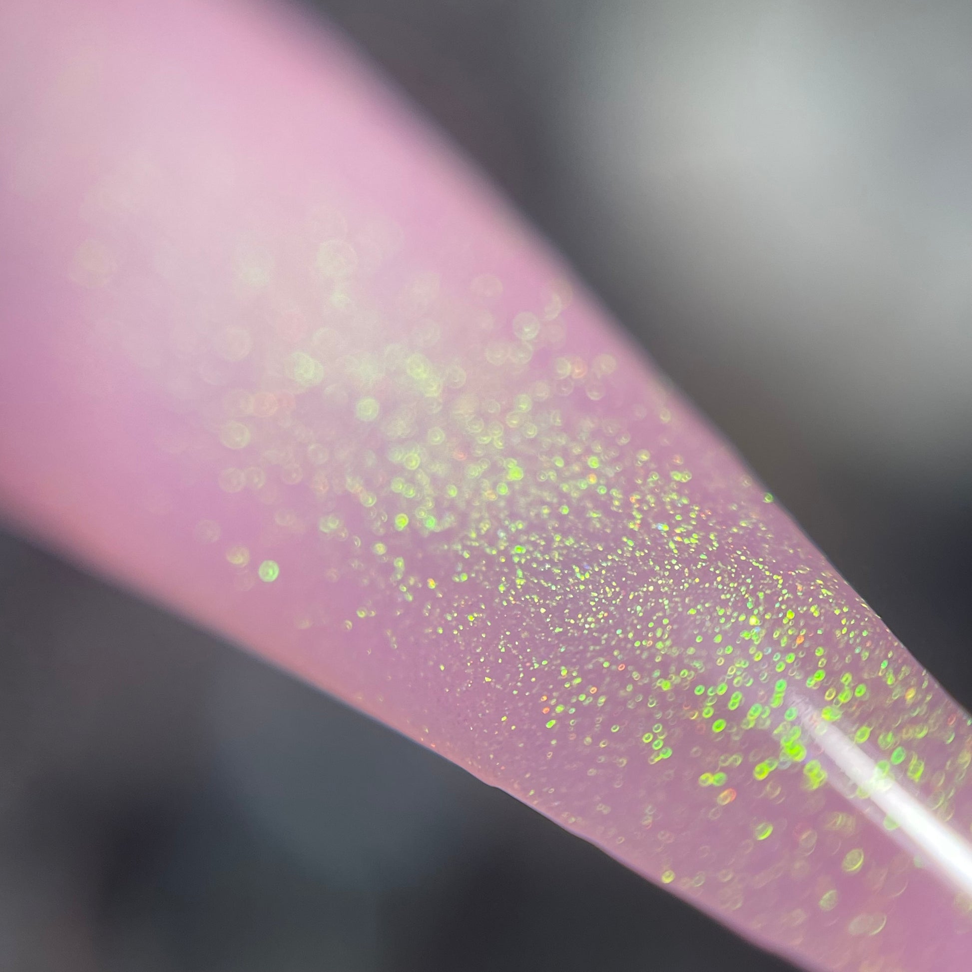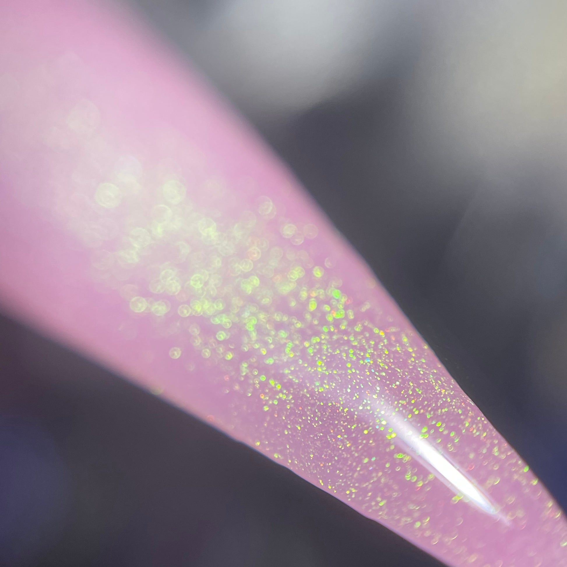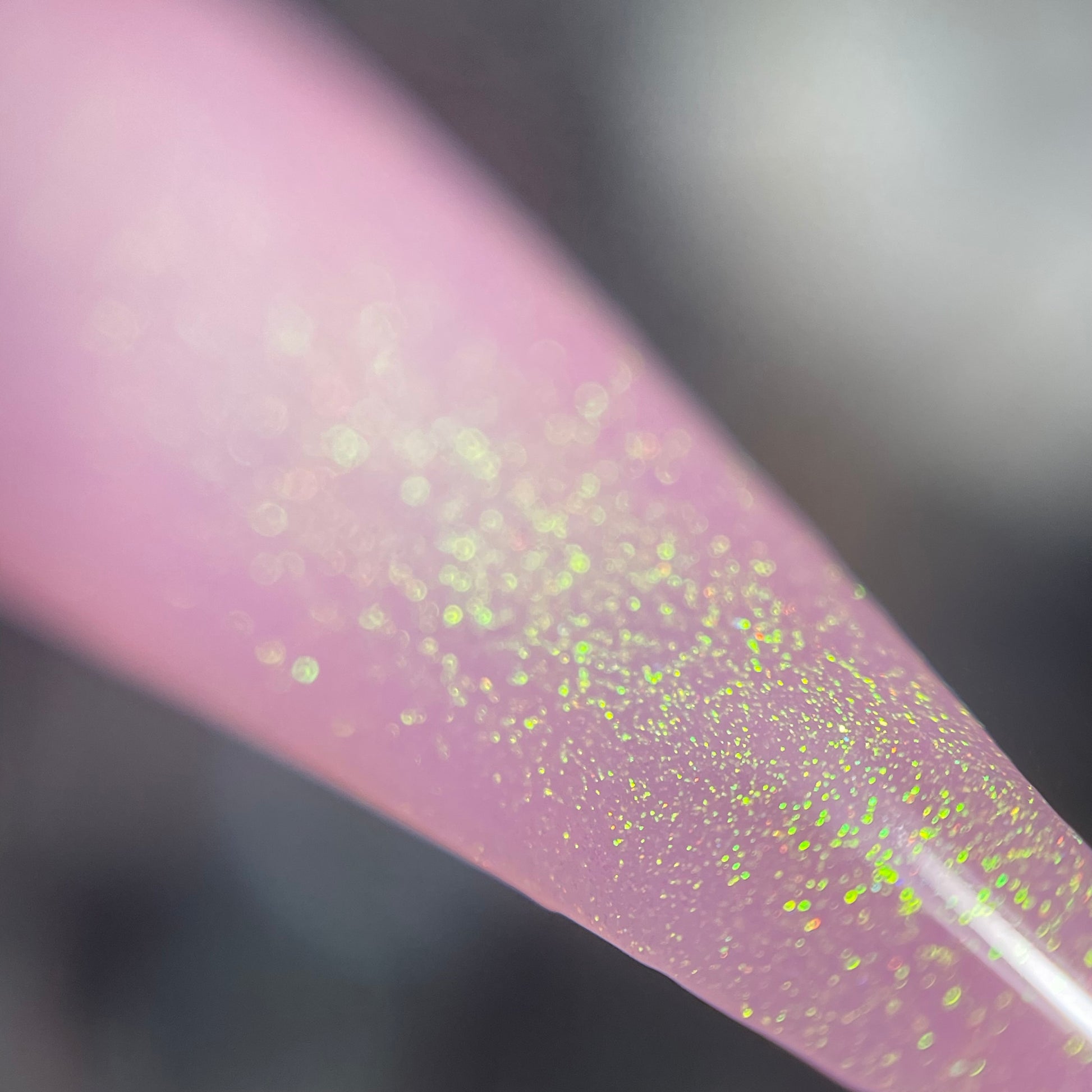 a delicate dusty rose pink shade with green gold unicorn pigment.