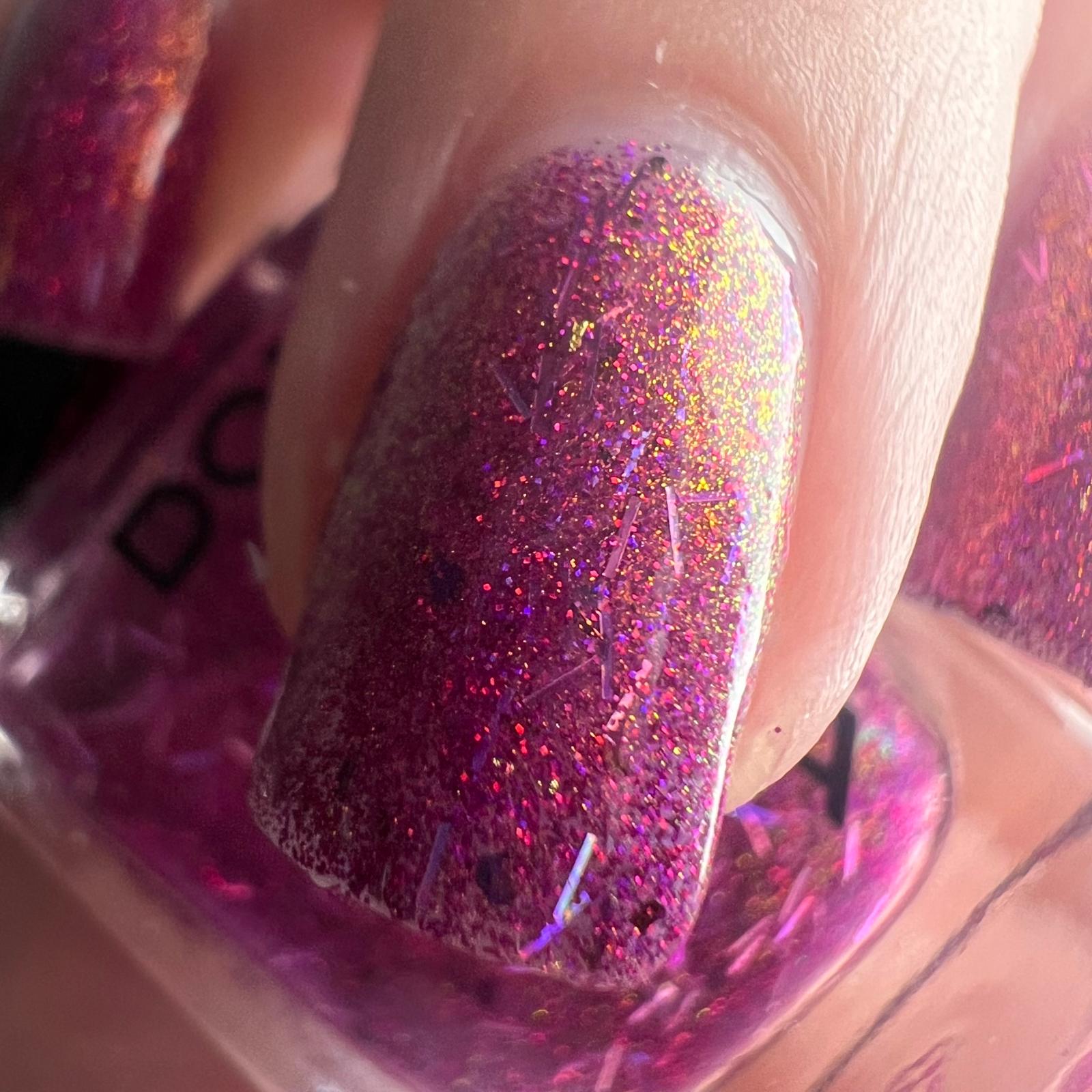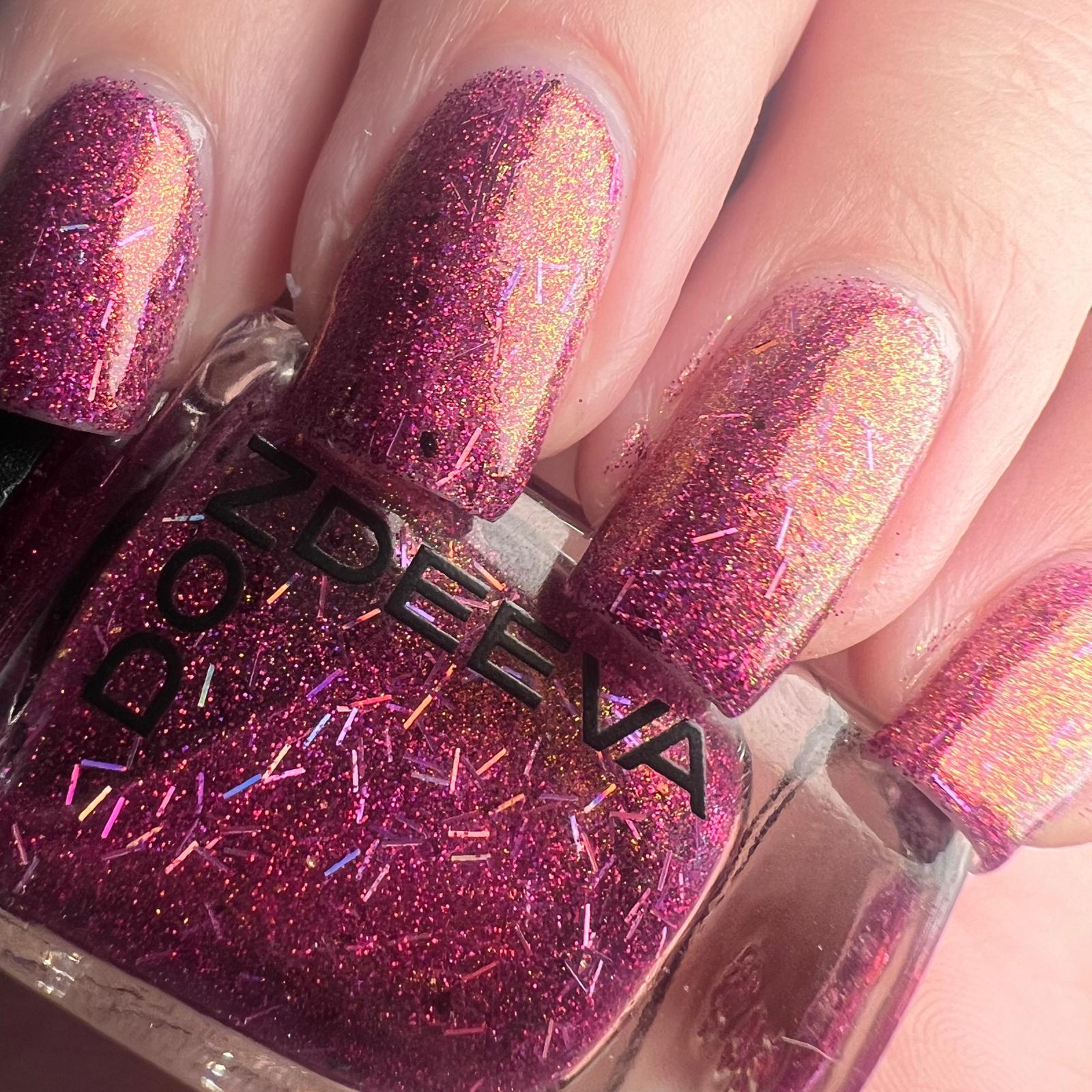 Unleash your daring side with PunchDrunk Pony -OGUP! This striking, red and magenta shade is enhanced with pink, purple, and red-green unicorn pigment for a one-of-a-kind look. Be bold and stand out with its unique blend of colors and shapes. Embrace the adventure and make a statement with this breathtaking shade!