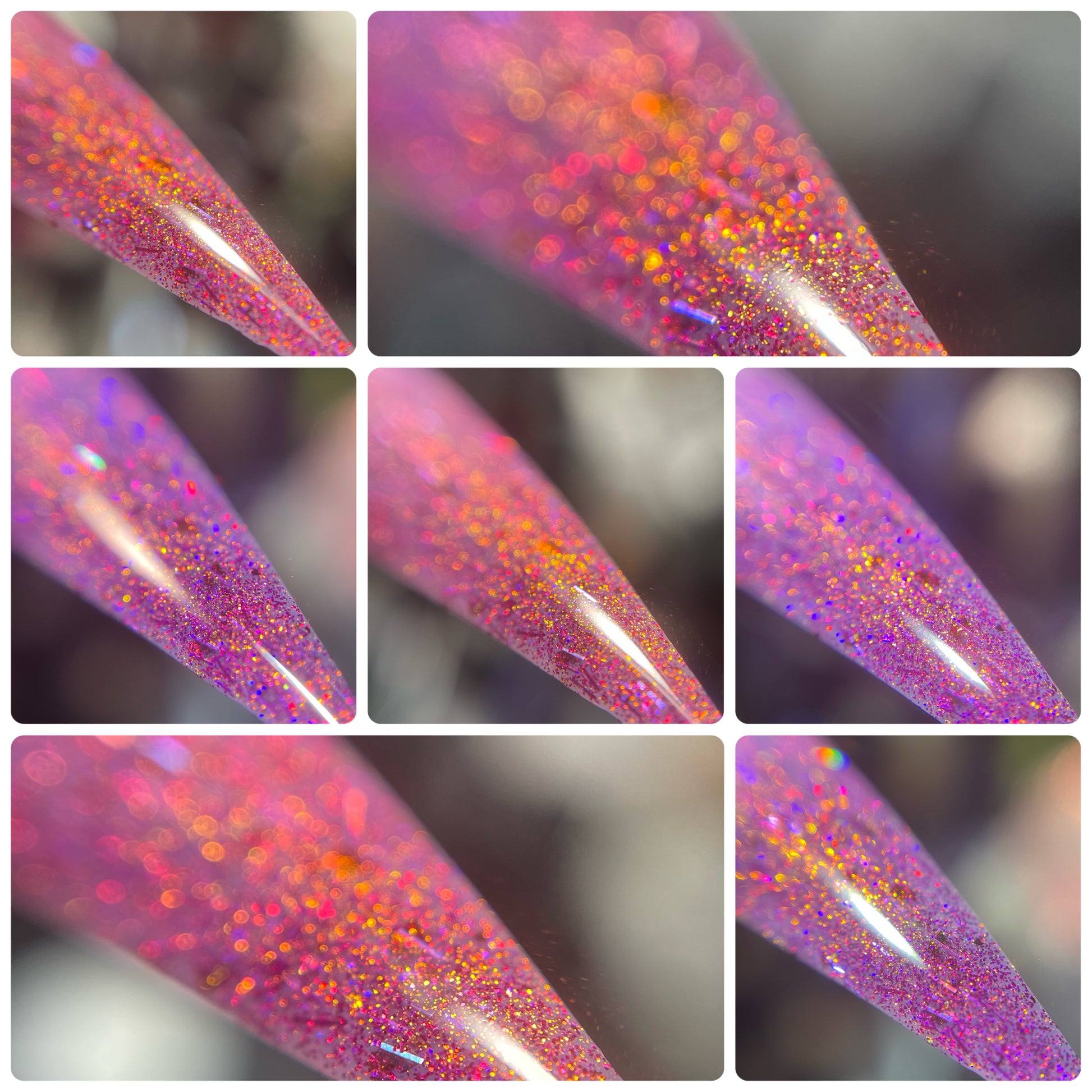 A gorgeous magenta purple with tons of unicorn pee in red to green with other gorgeous elements.