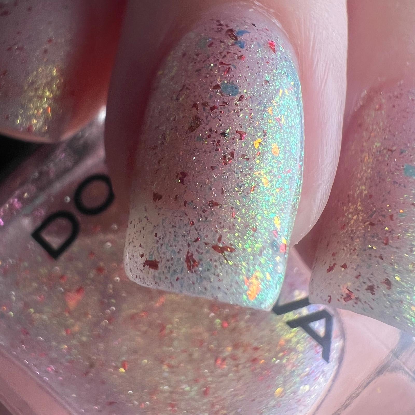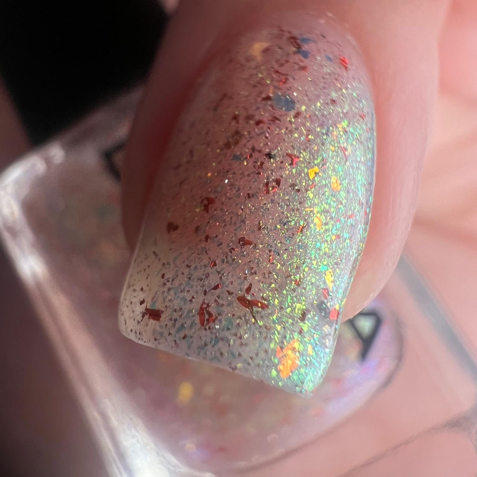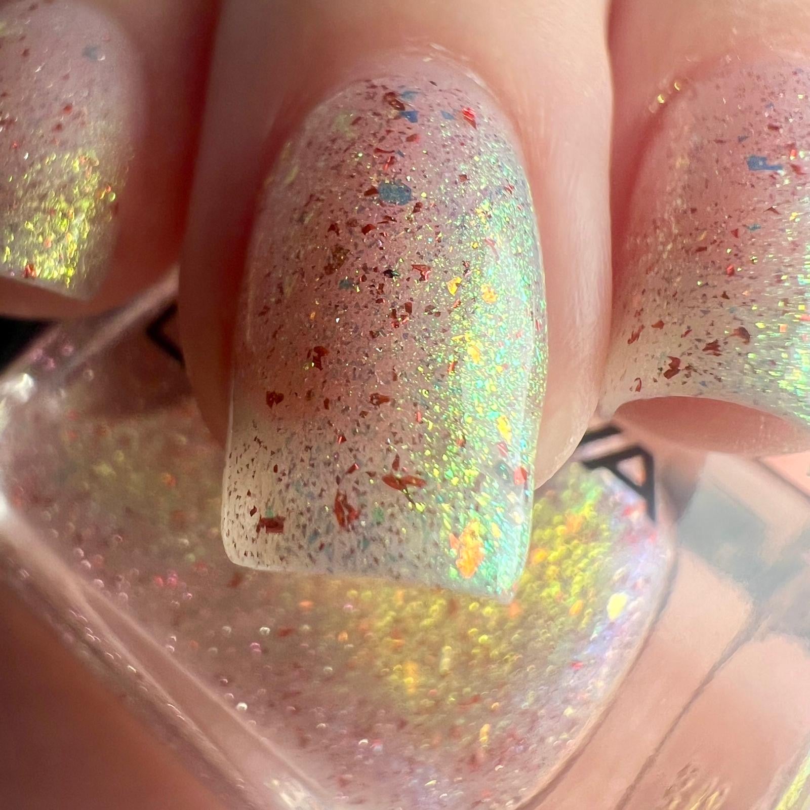 A gorgeous translucent shade full of gorgeous elements and sparkly reflective for added touch with unicorns pigment.