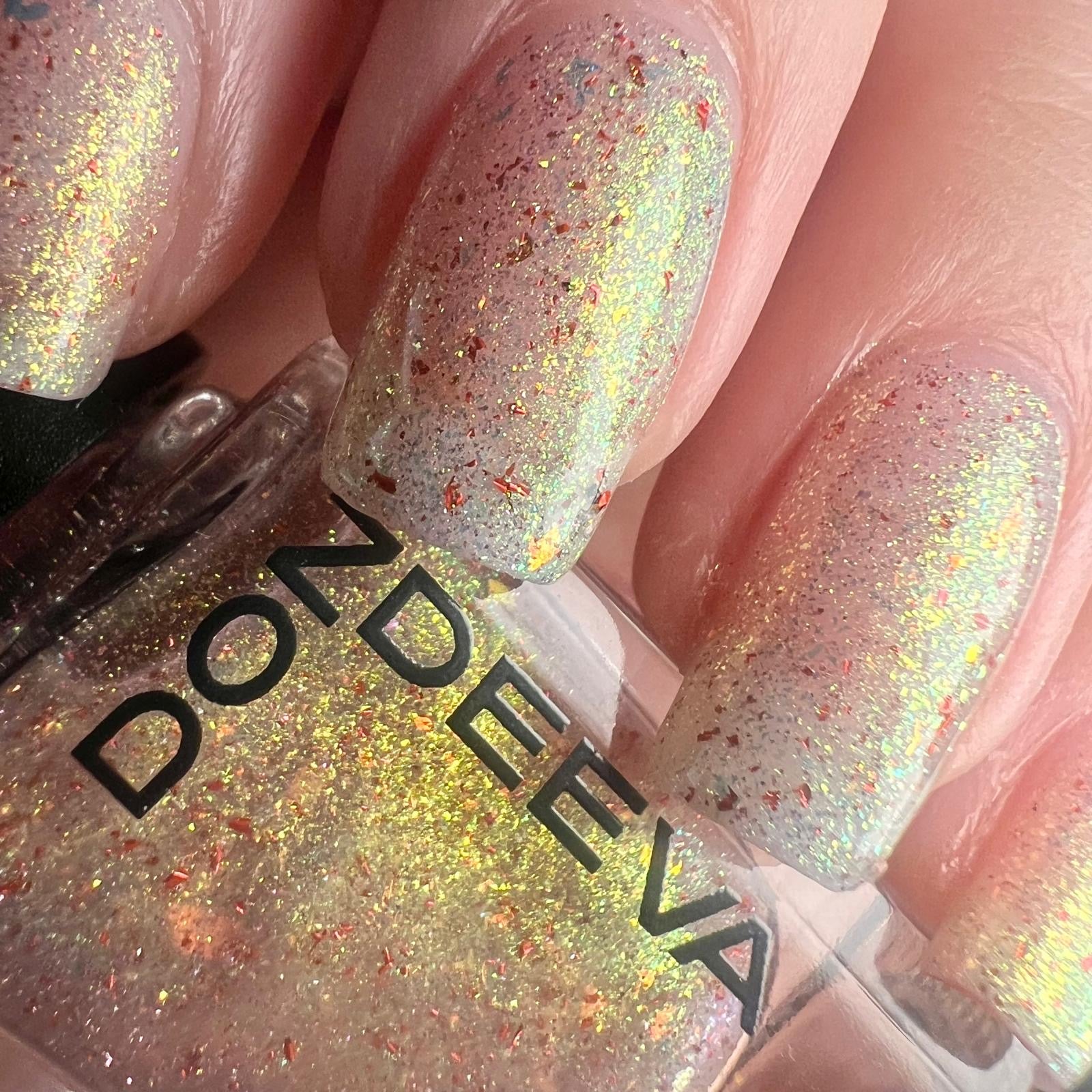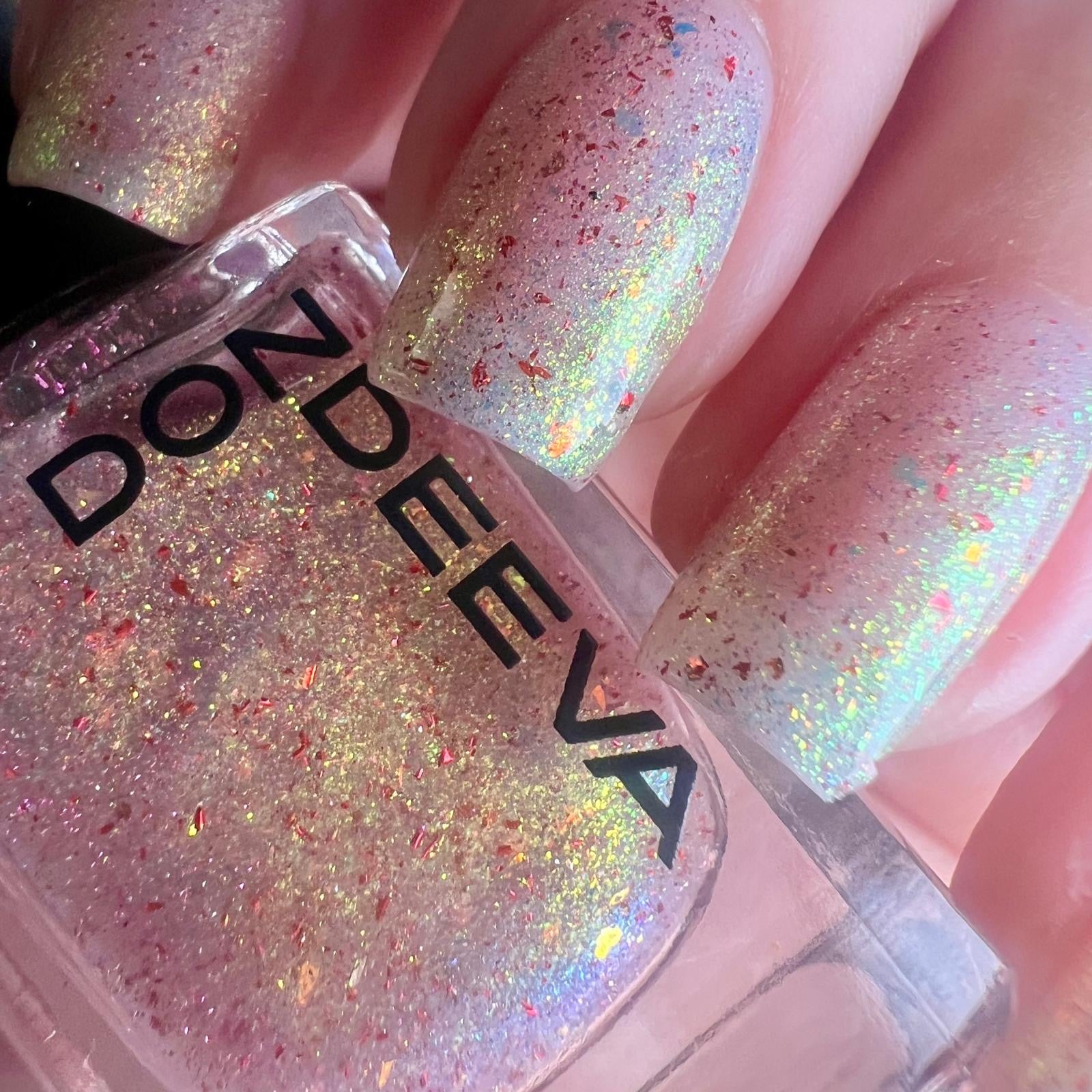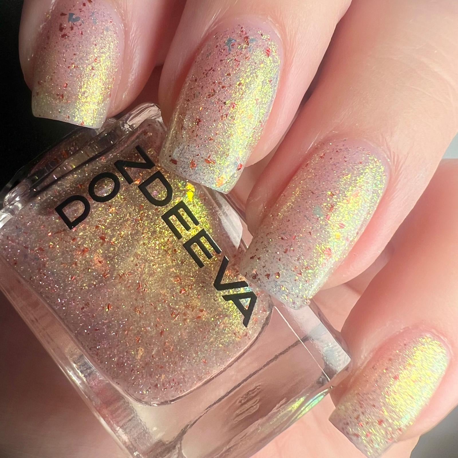 A gorgeous translucent shade full of gorgeous elements and sparkly reflective for added touch with unicorns pigment.