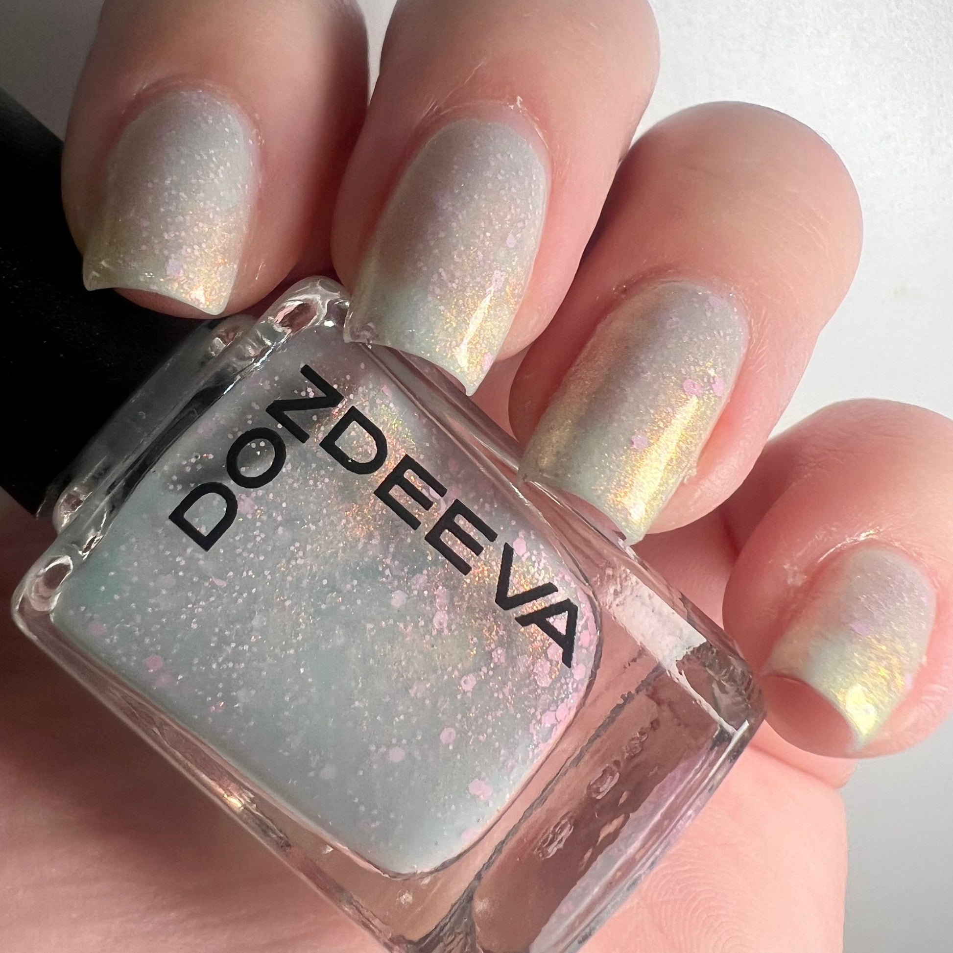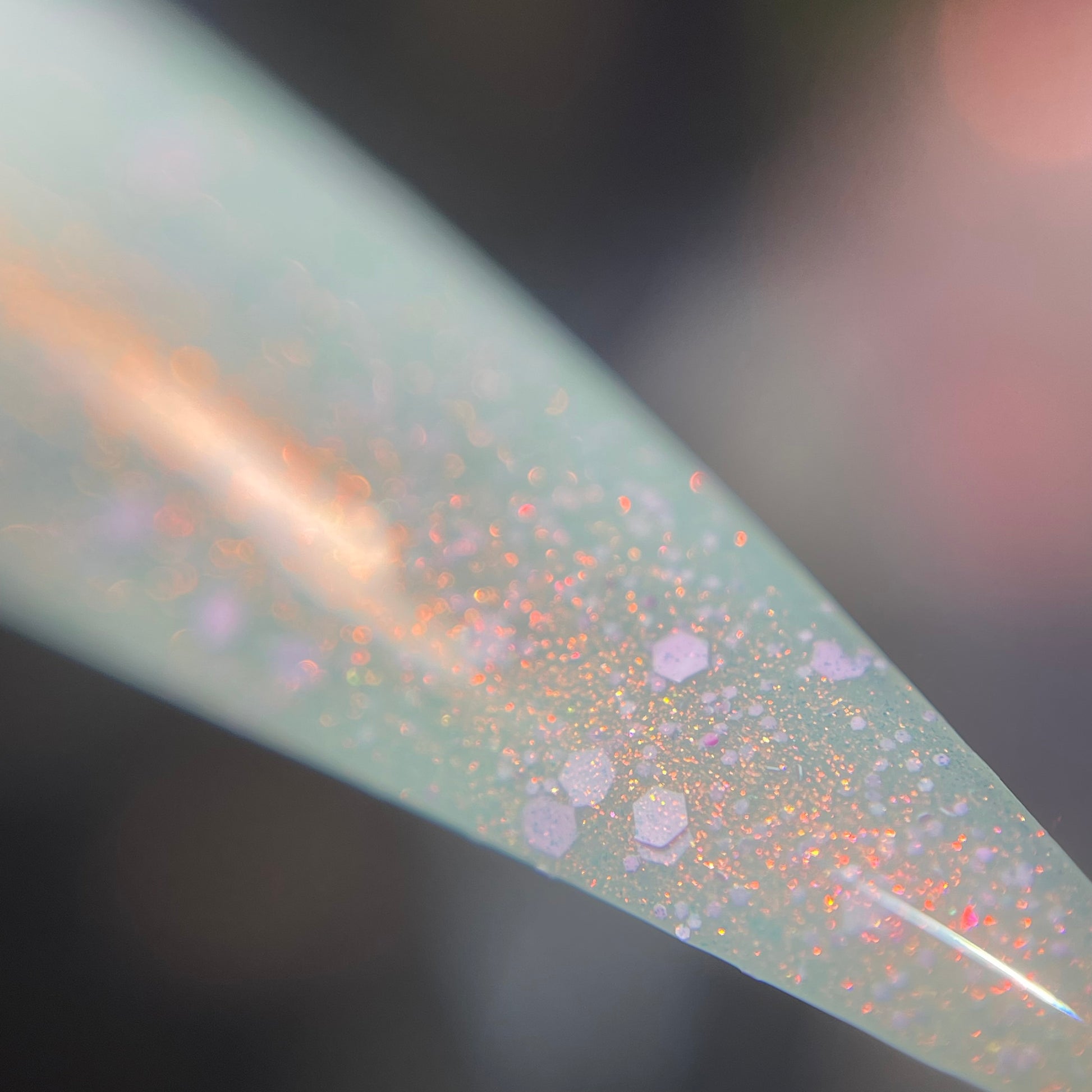 A beautiful delicate Tiffany green/blue with a mixture of pink elements and flowing with unicorn Pigment throughout. OGUP.