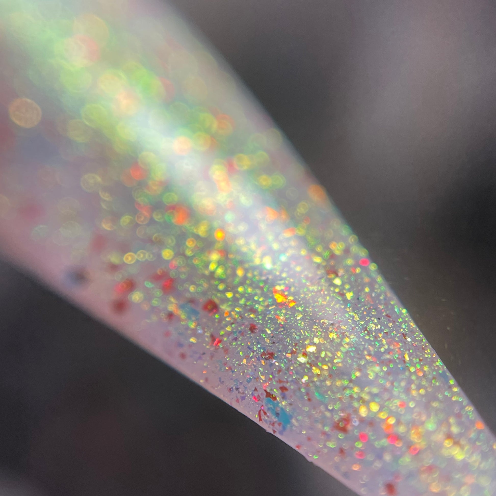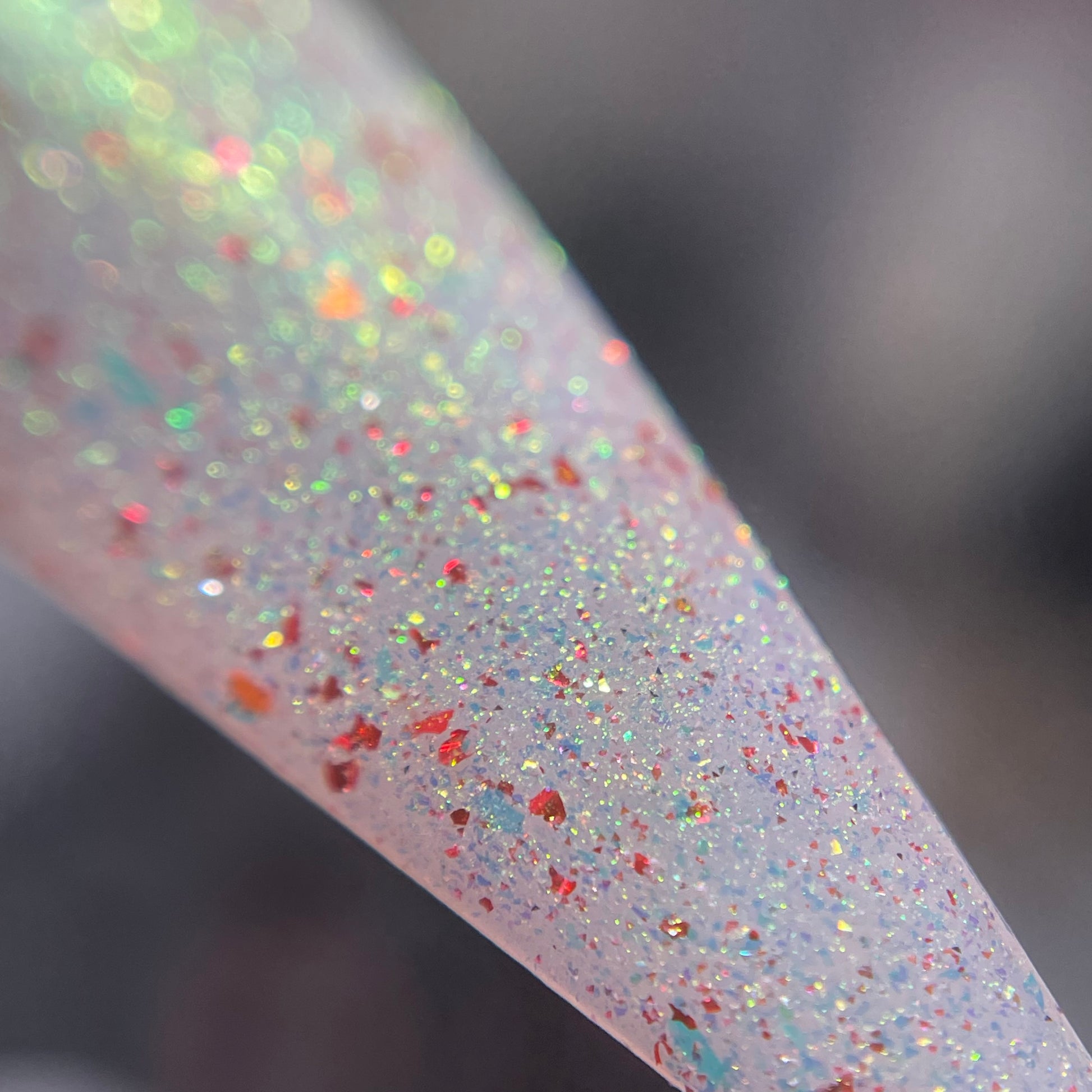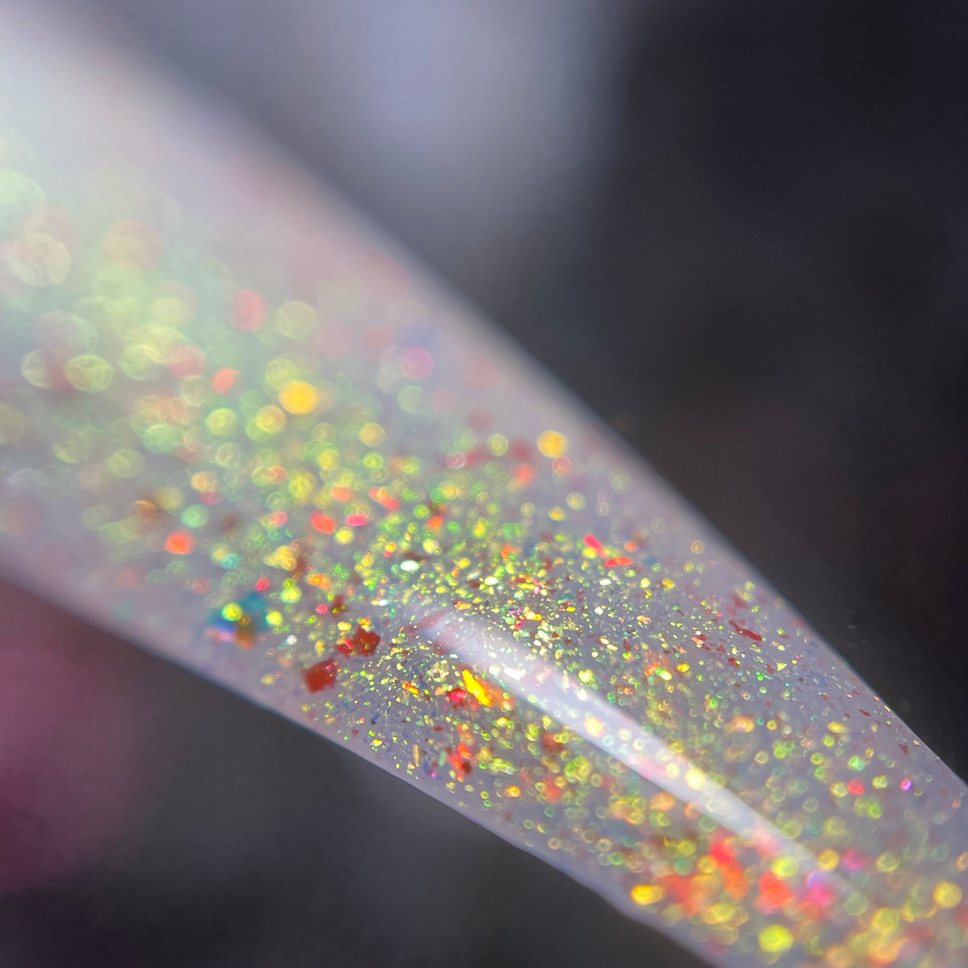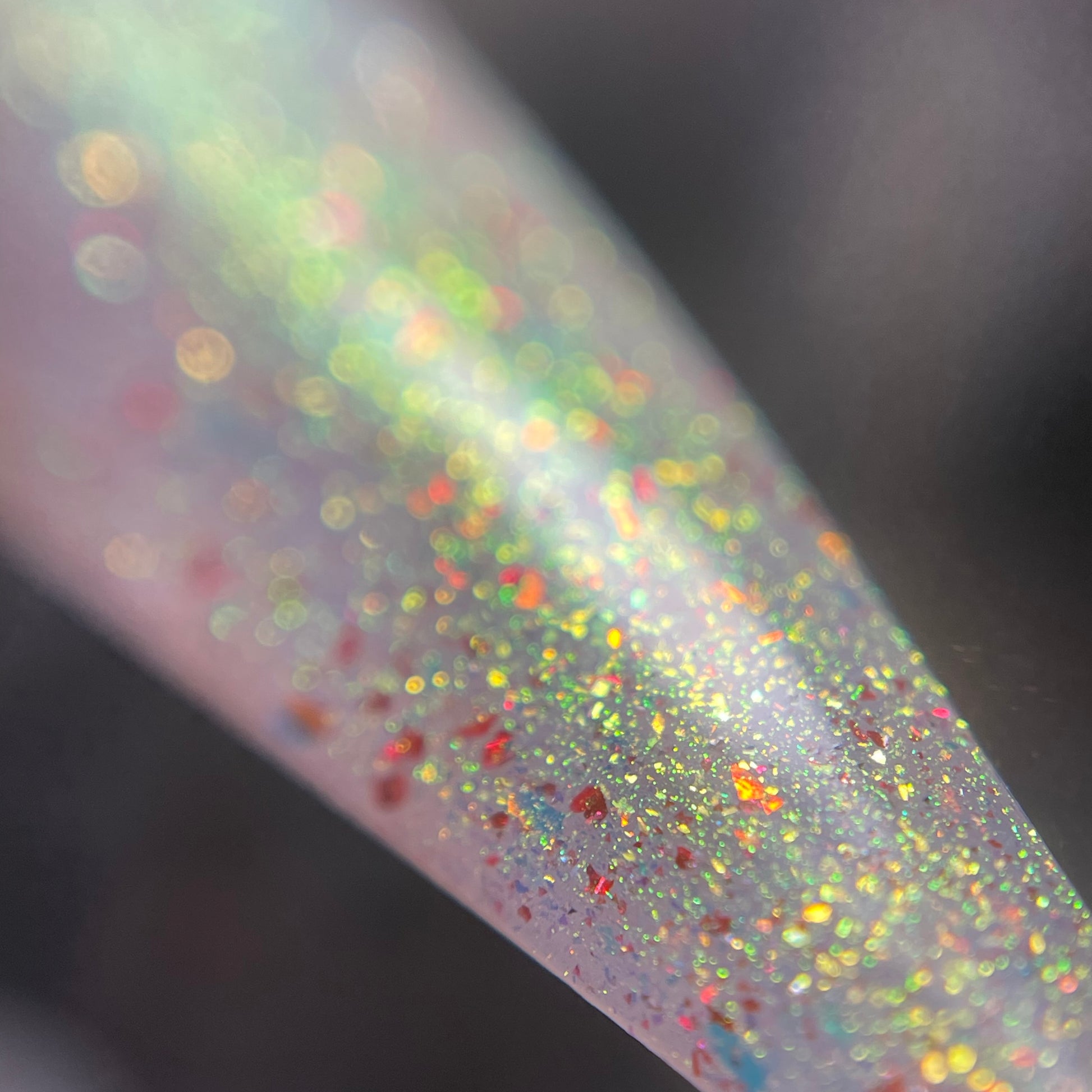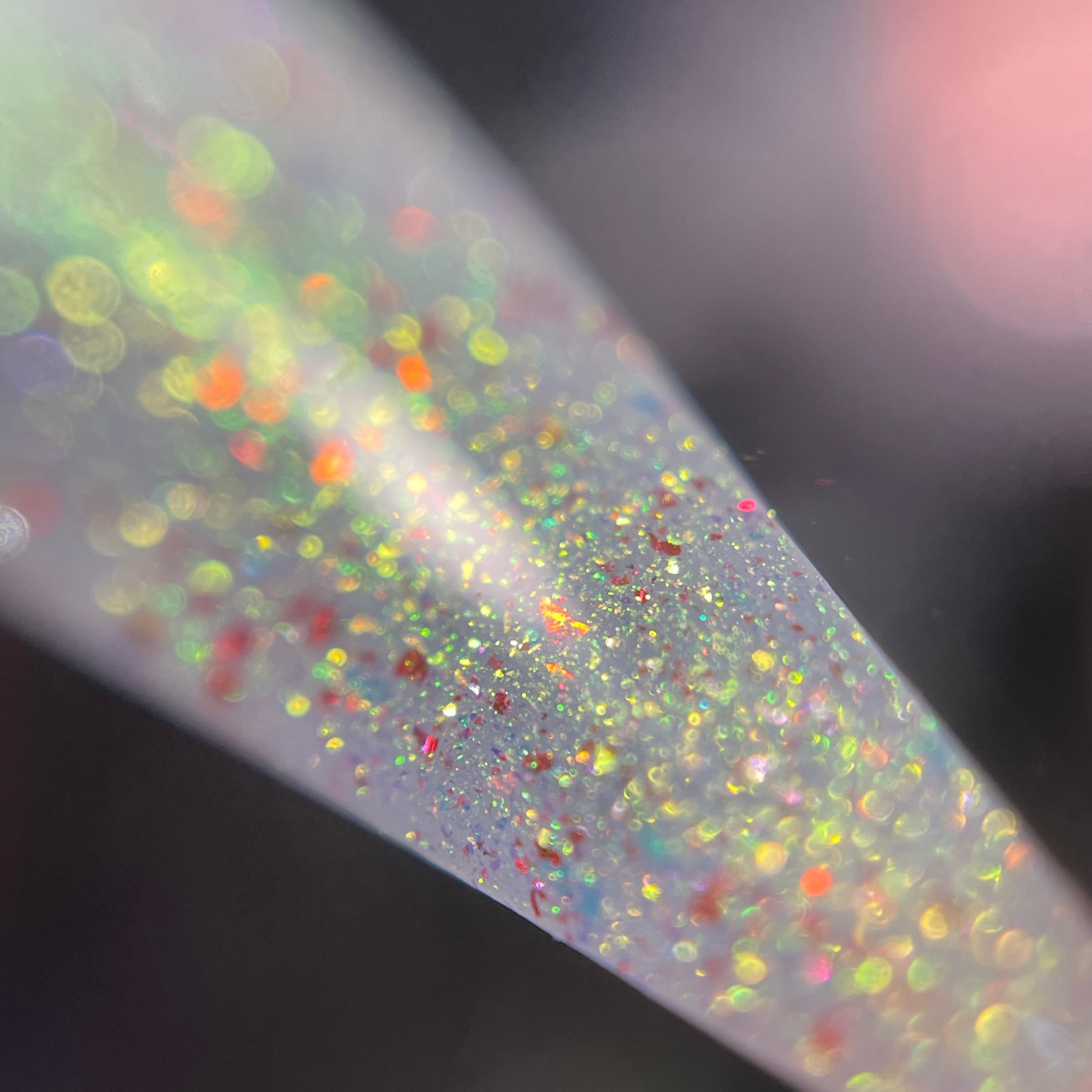 Unleash your bold and adventurous side with Rosebust -OGUP/Roses. This translucent base, infused with finely crushed dried roses, unicorn pigment, and red flecks, creates a stunning natural pinky color and will reflect with just a flash! Just one coat over black and you'll see the red to green unicorn pigment come to life. Dare to believe, try it now!