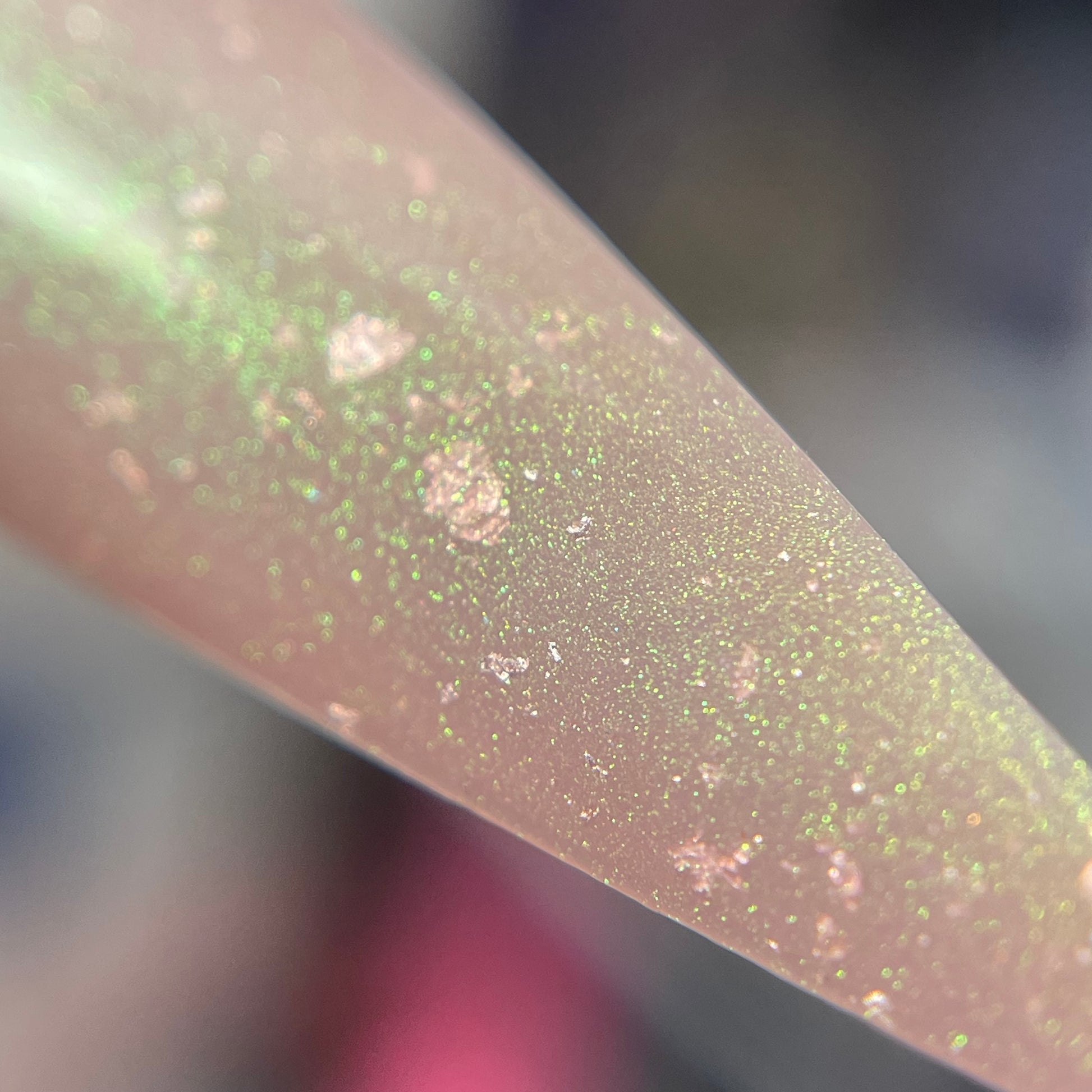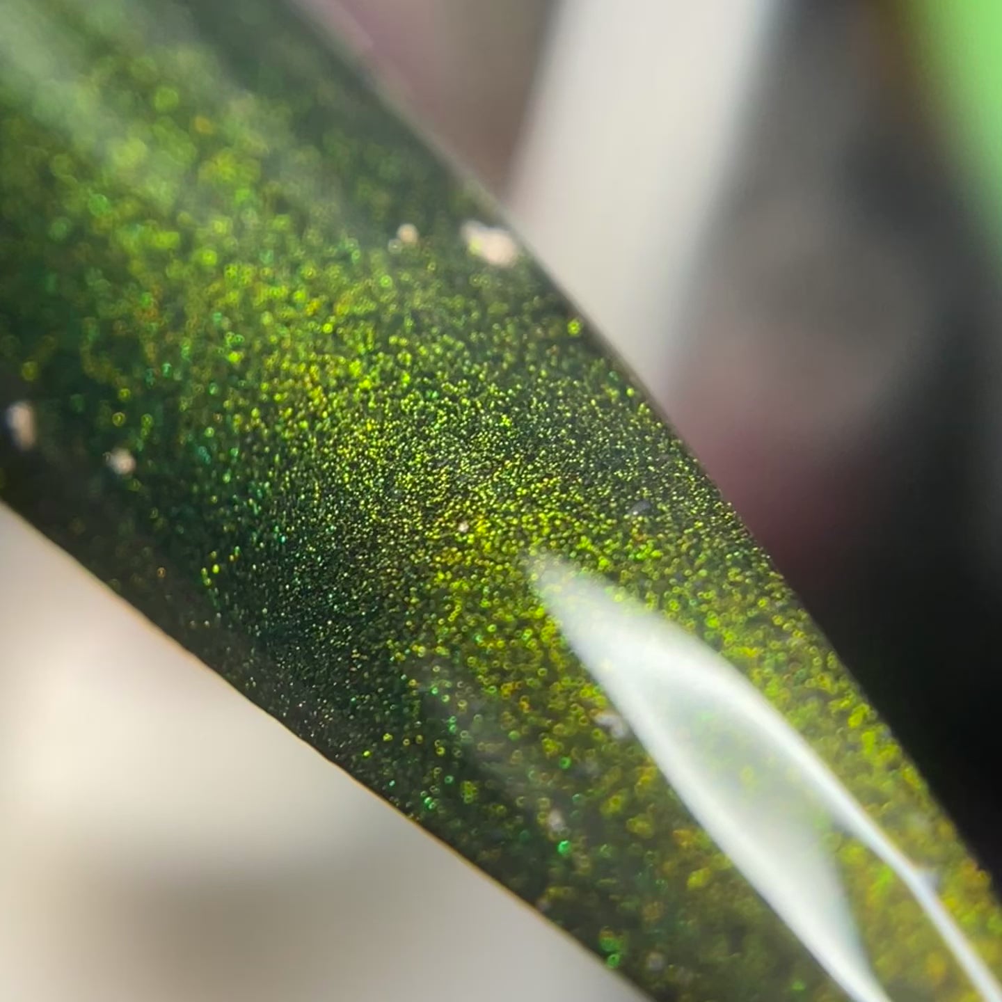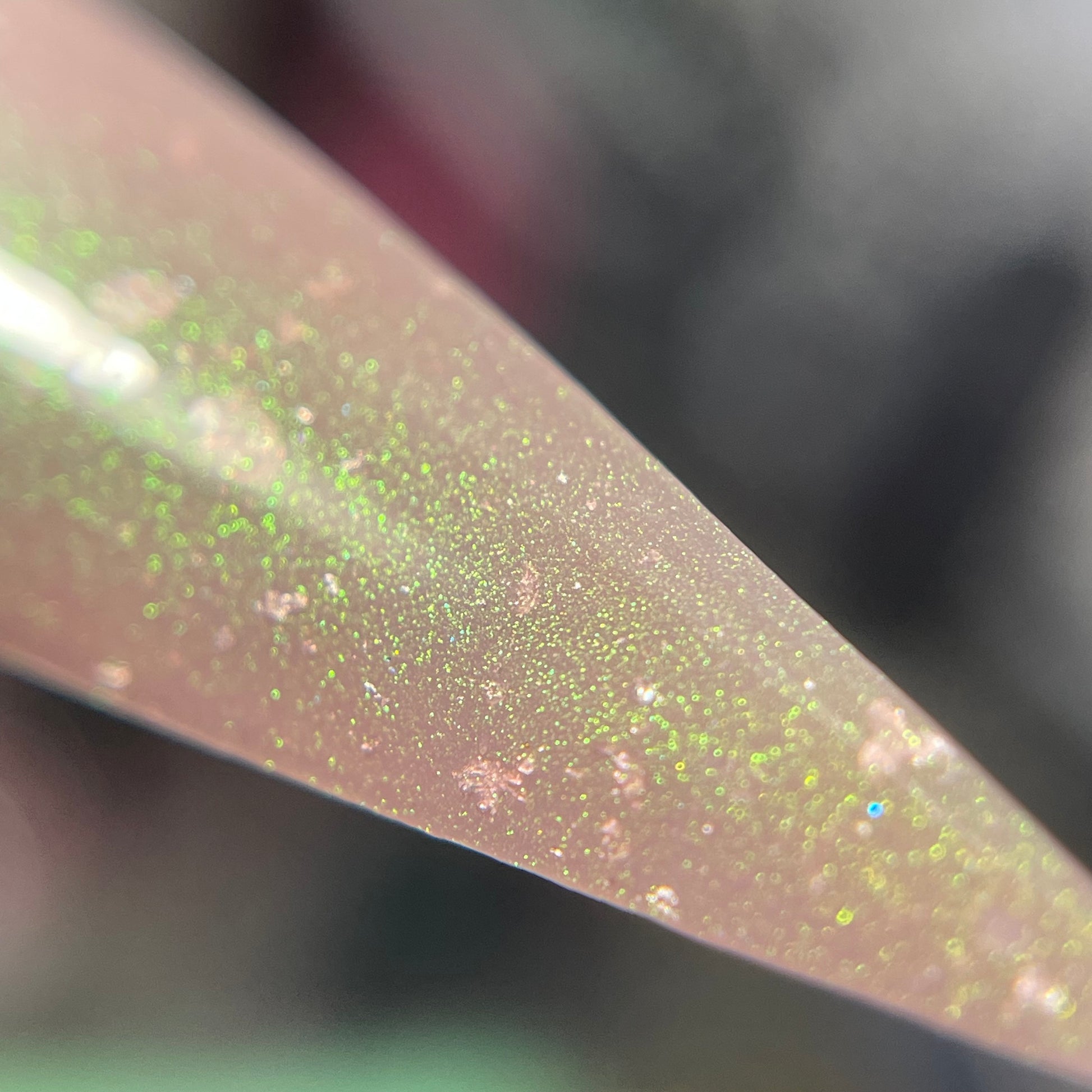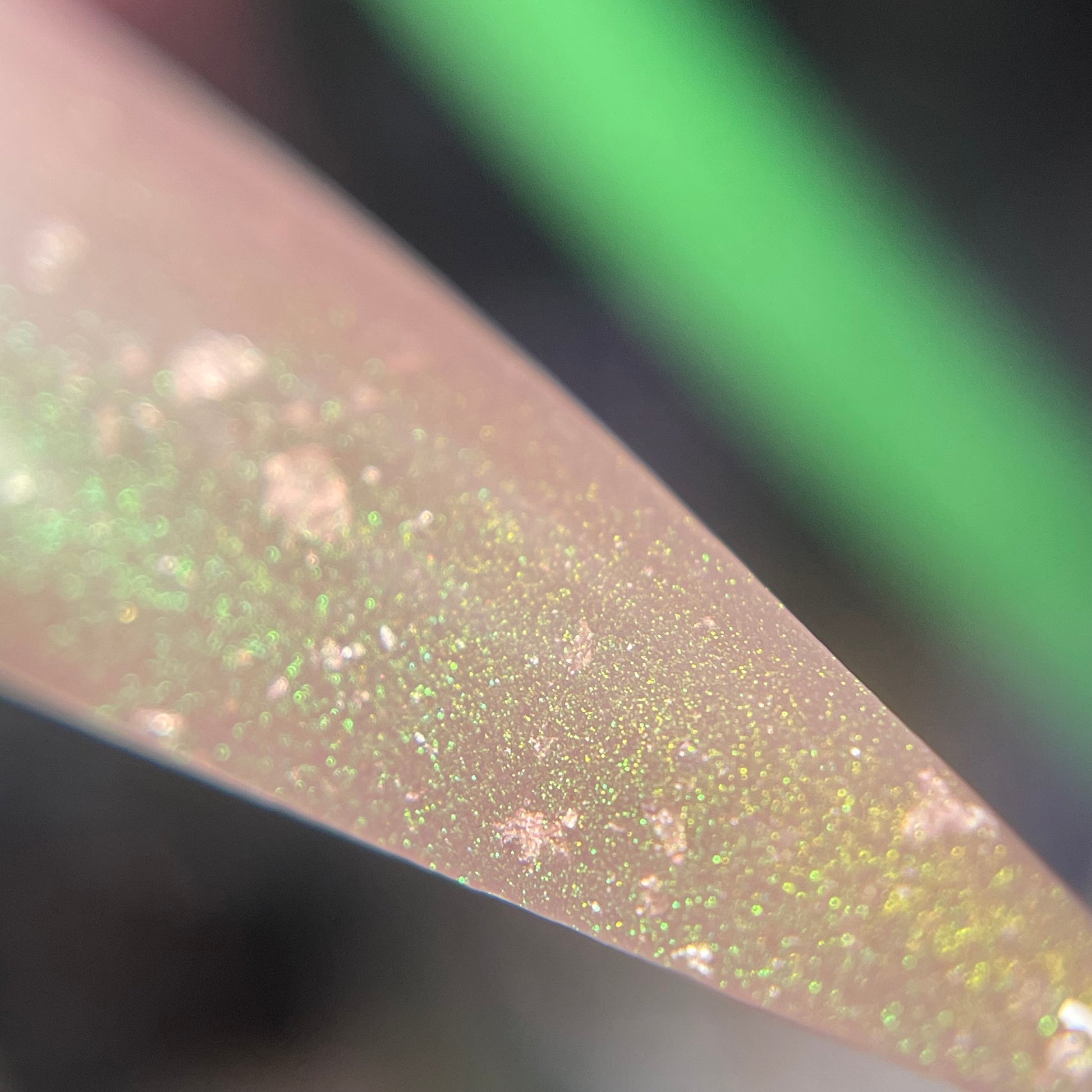 A beautiful Taupe color full of green gold unicorn pigment which is a fascinating morphing pigment that’s no longer made, that’s why the price for those polishes are higher.