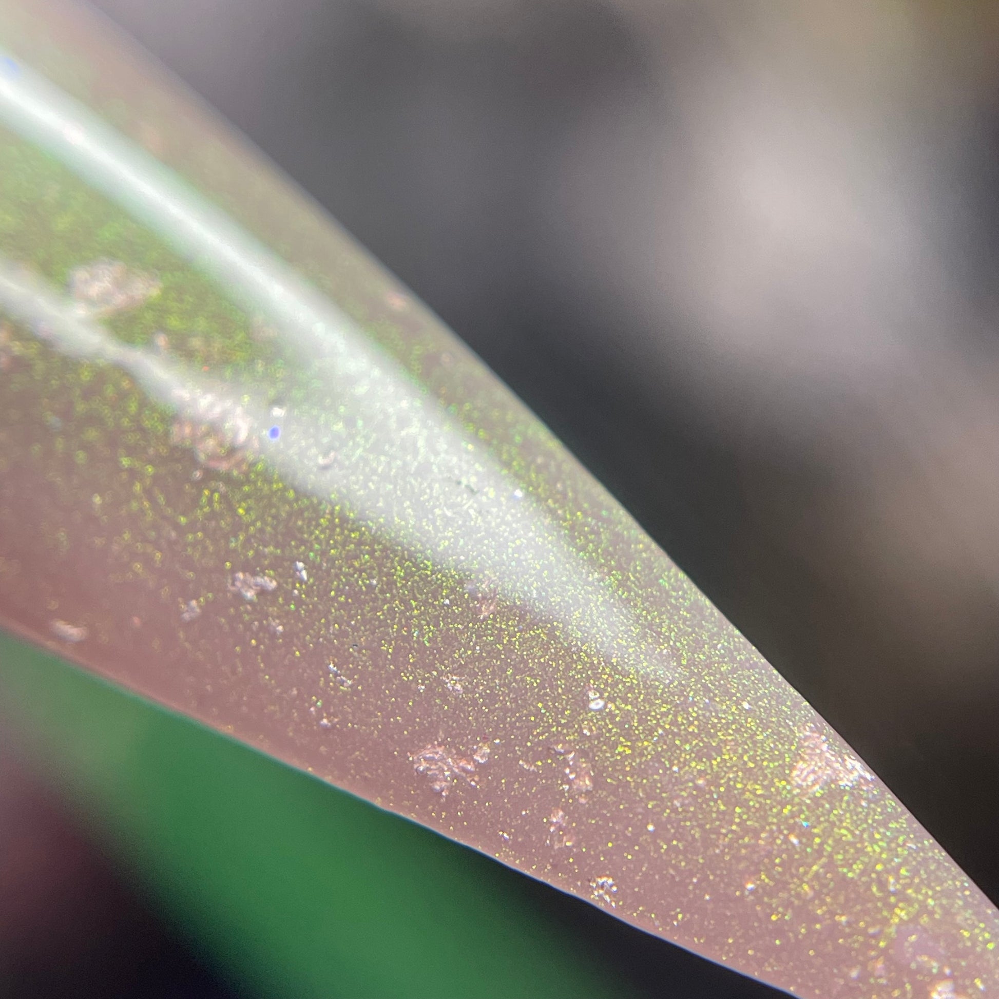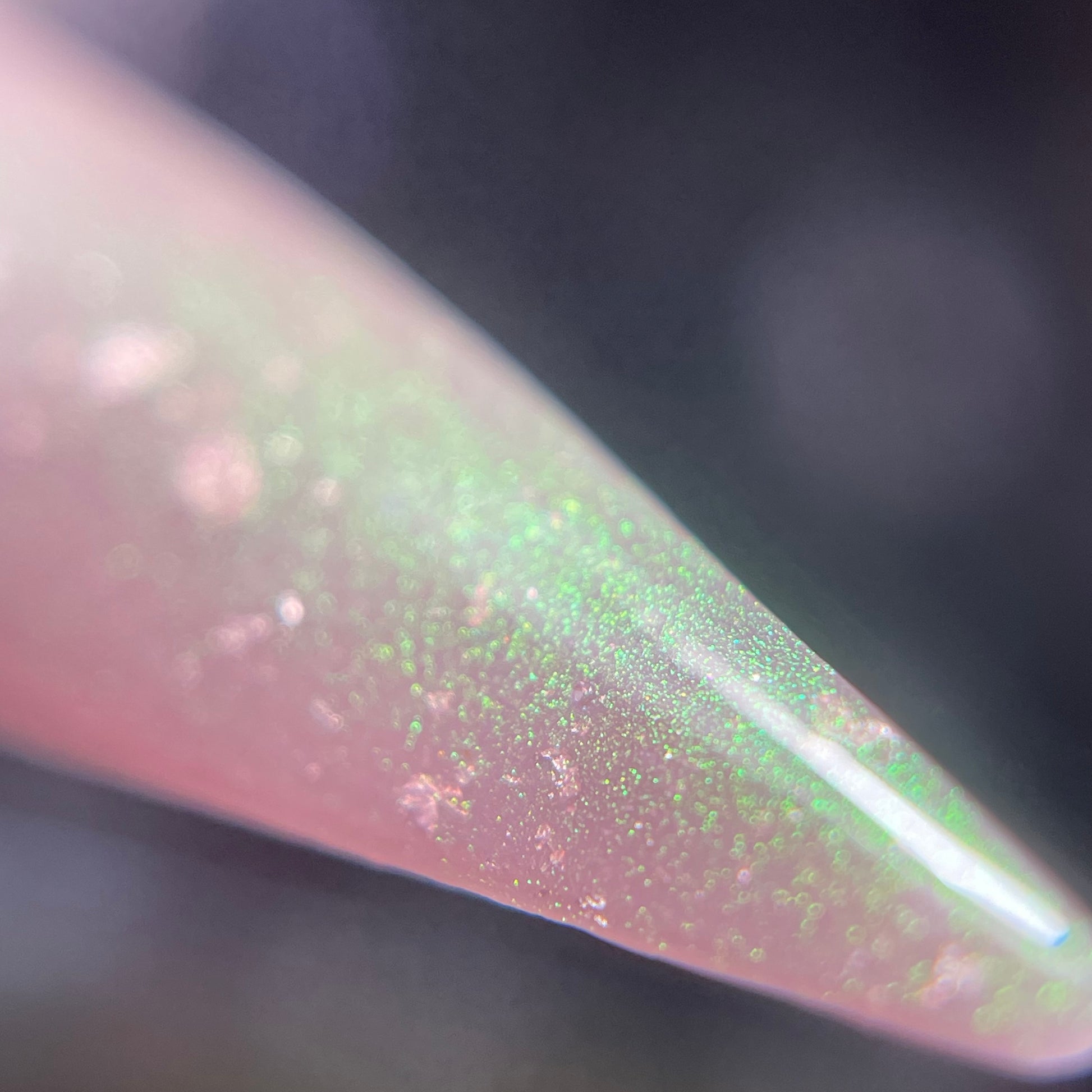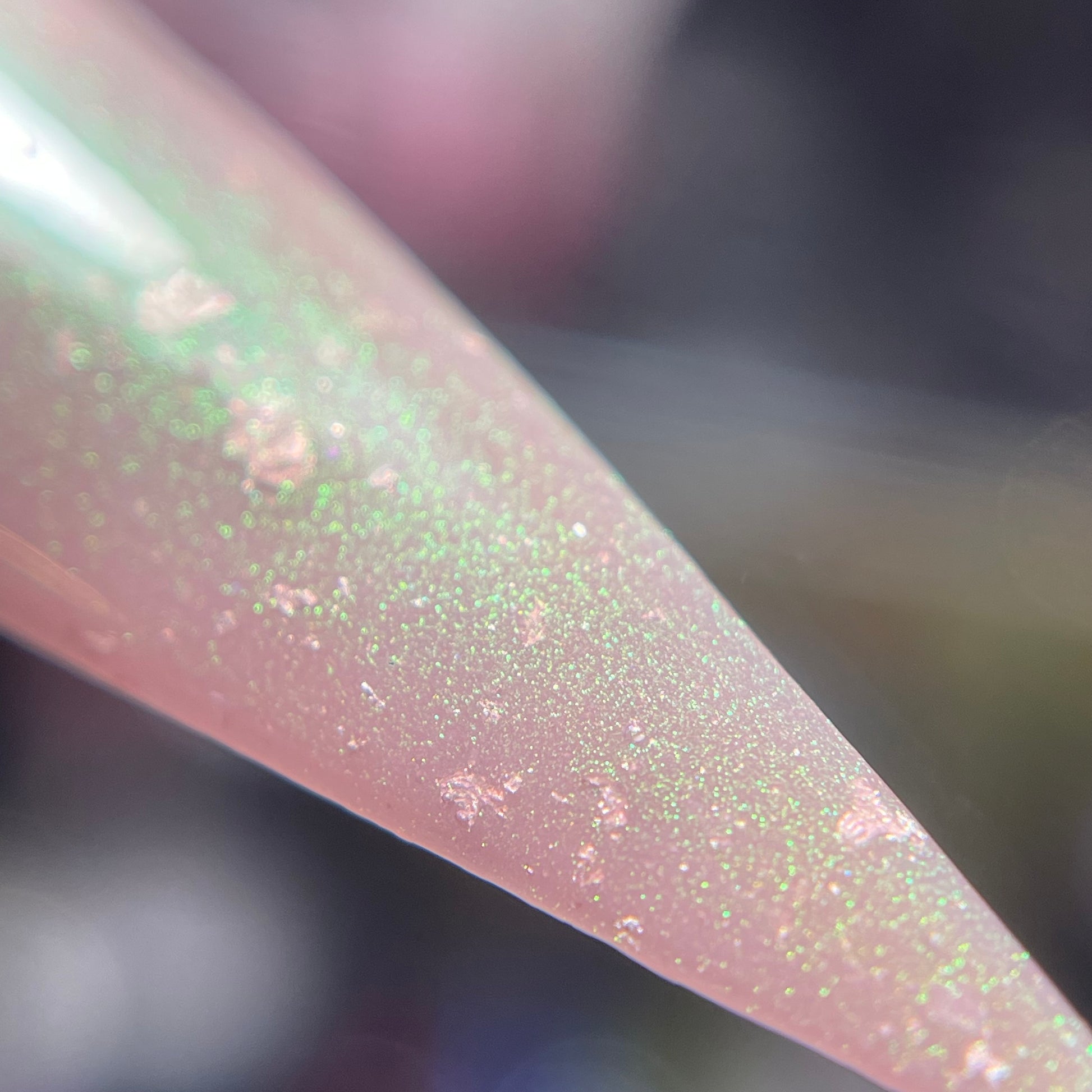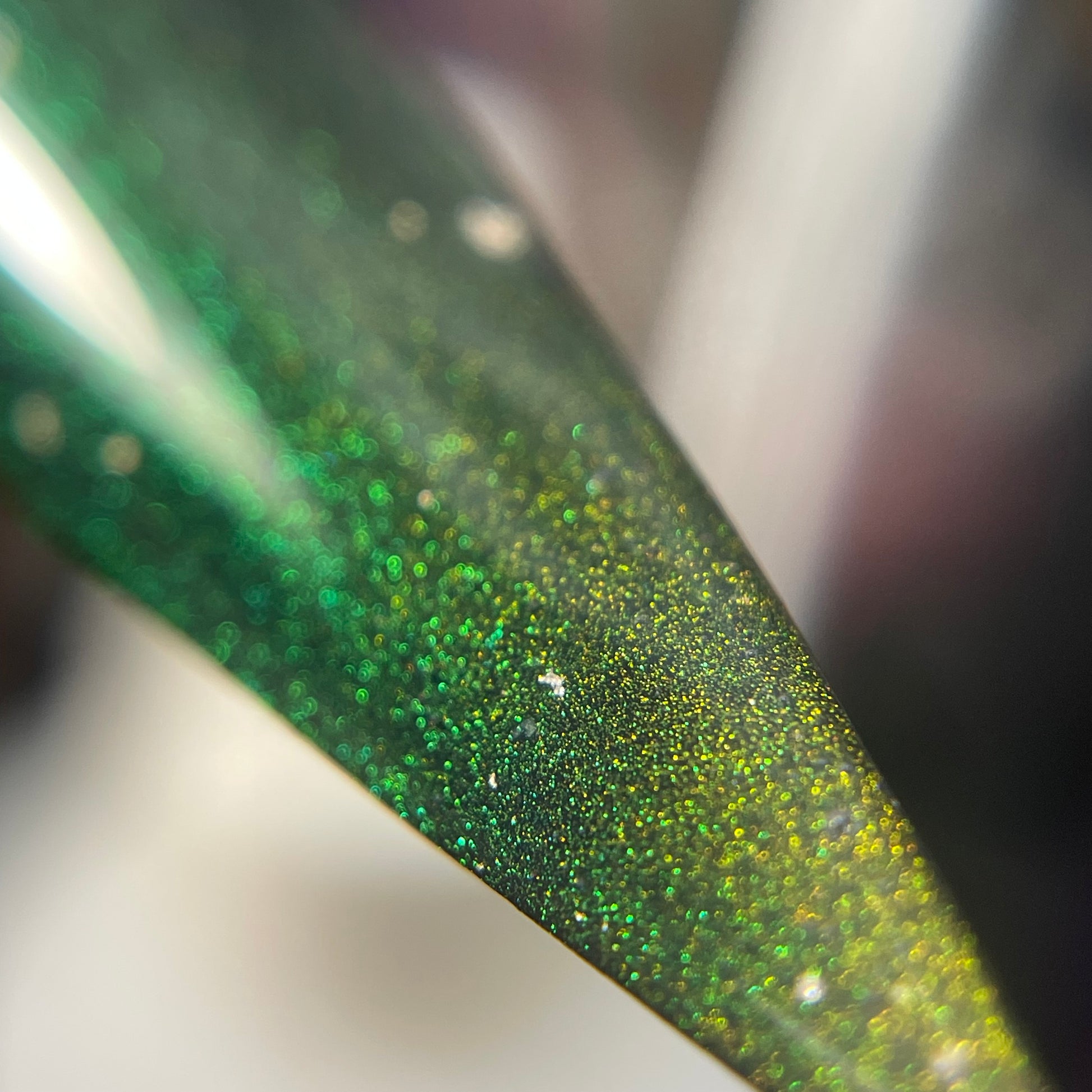 A beautiful Taupe color full of green gold unicorn pigment which is a fascinating morphing pigment that’s no longer made, that’s why the price for those polishes are higher.